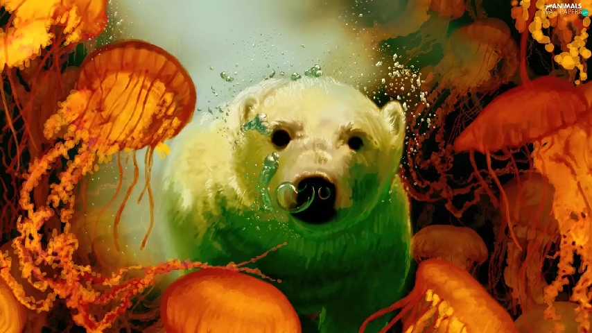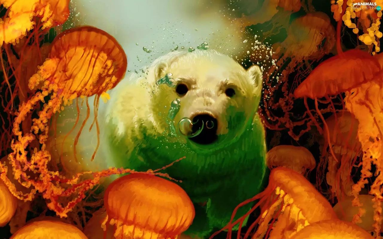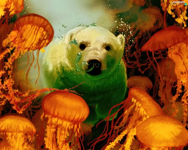 White, teddy bear, jellyfish, polar