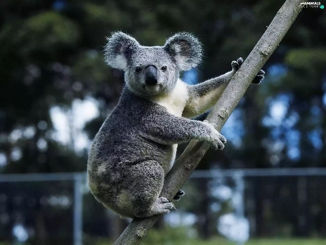 Gray, Koala, branch, teddybear