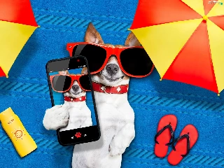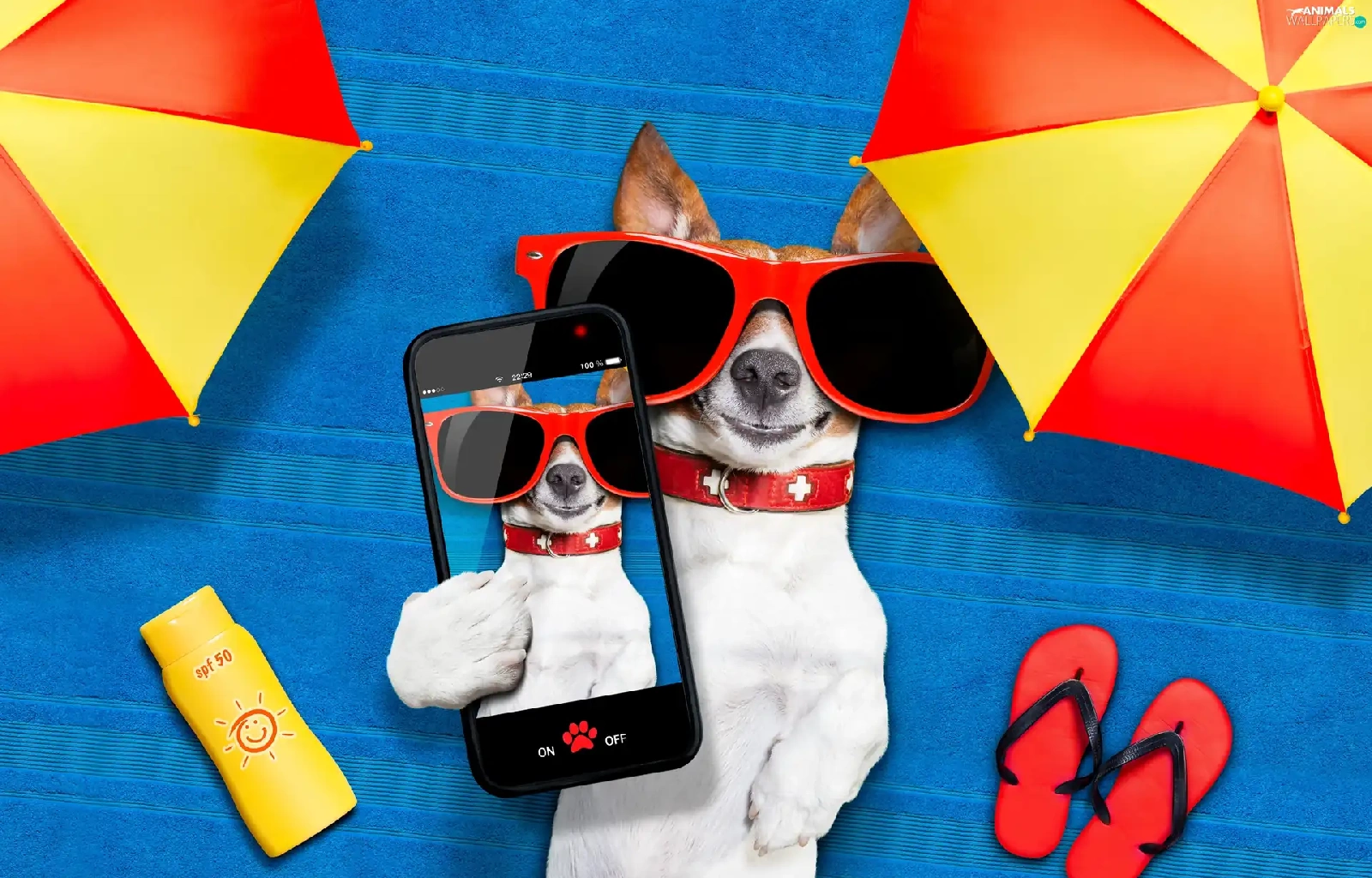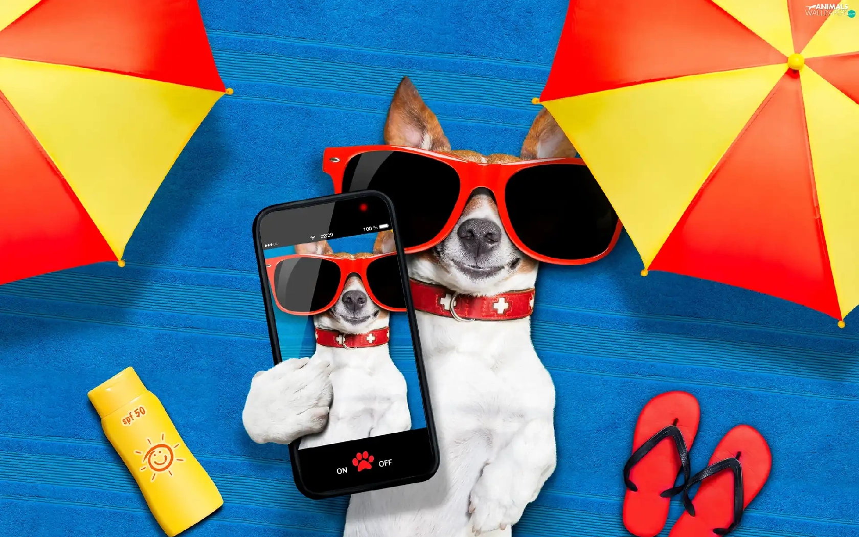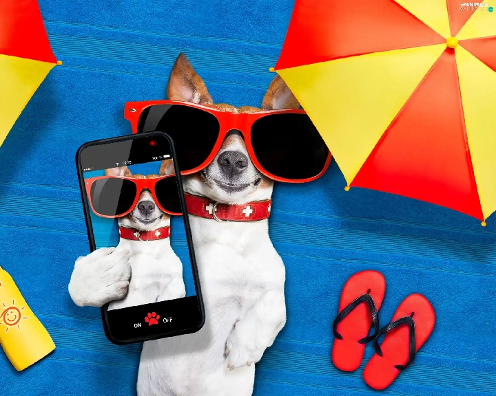 Telephone, Jack Russell Terrier, Funny, holiday, Sunshade, Glasses