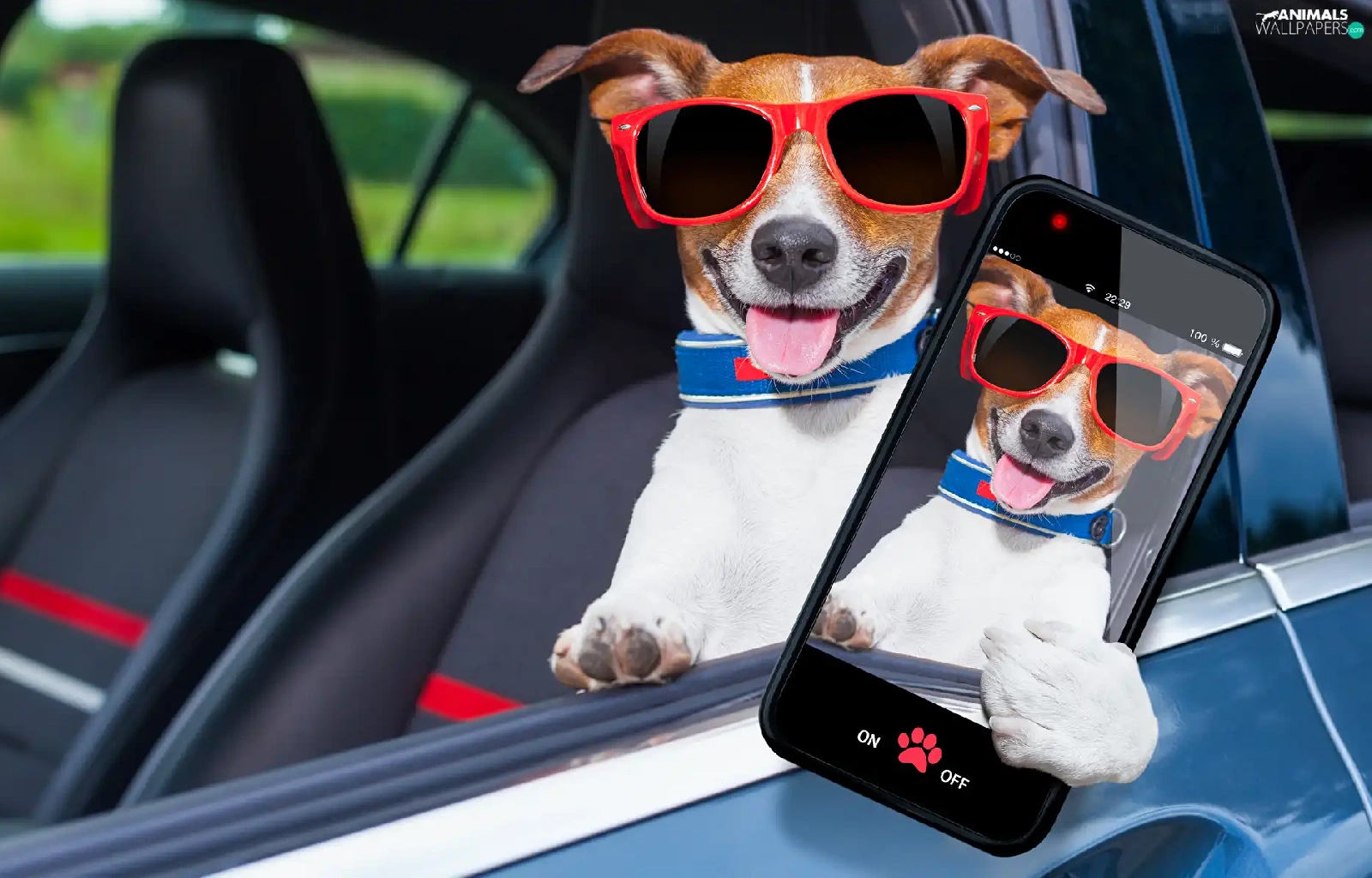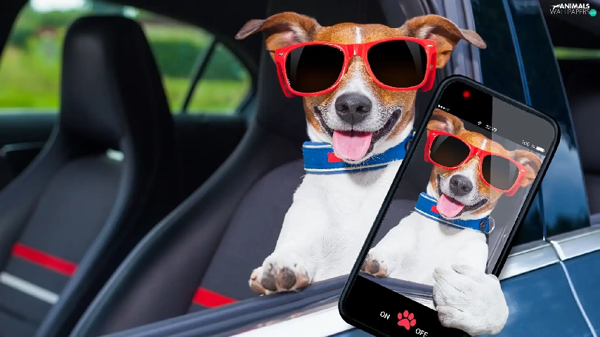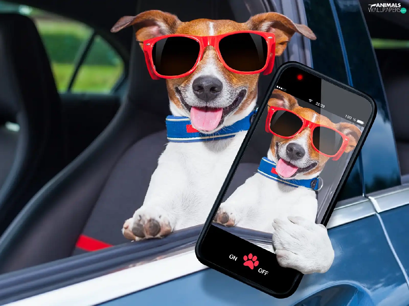 Glasses, dog, Tounge, Funny, Smartphone, Jack Russell Terrier