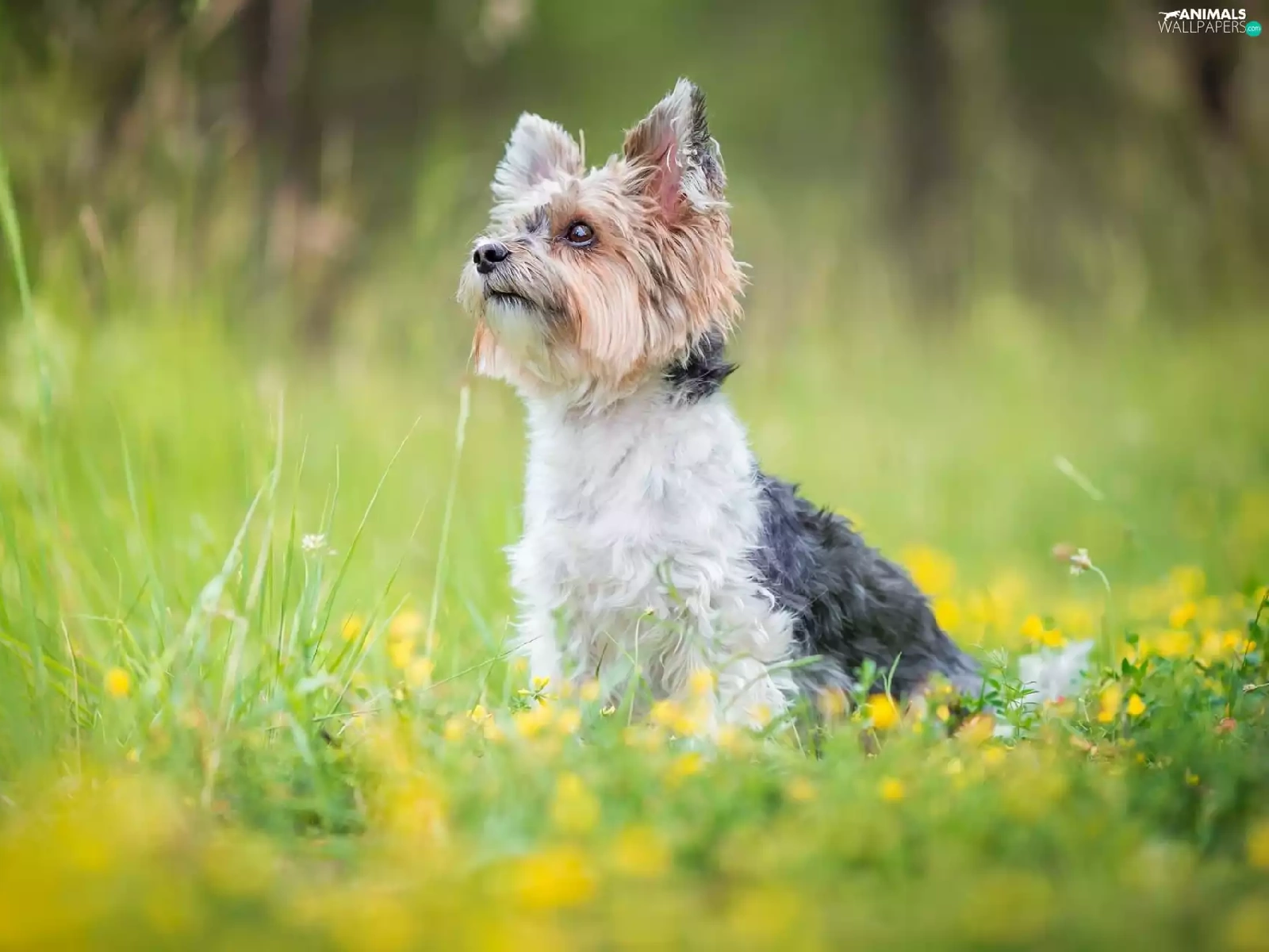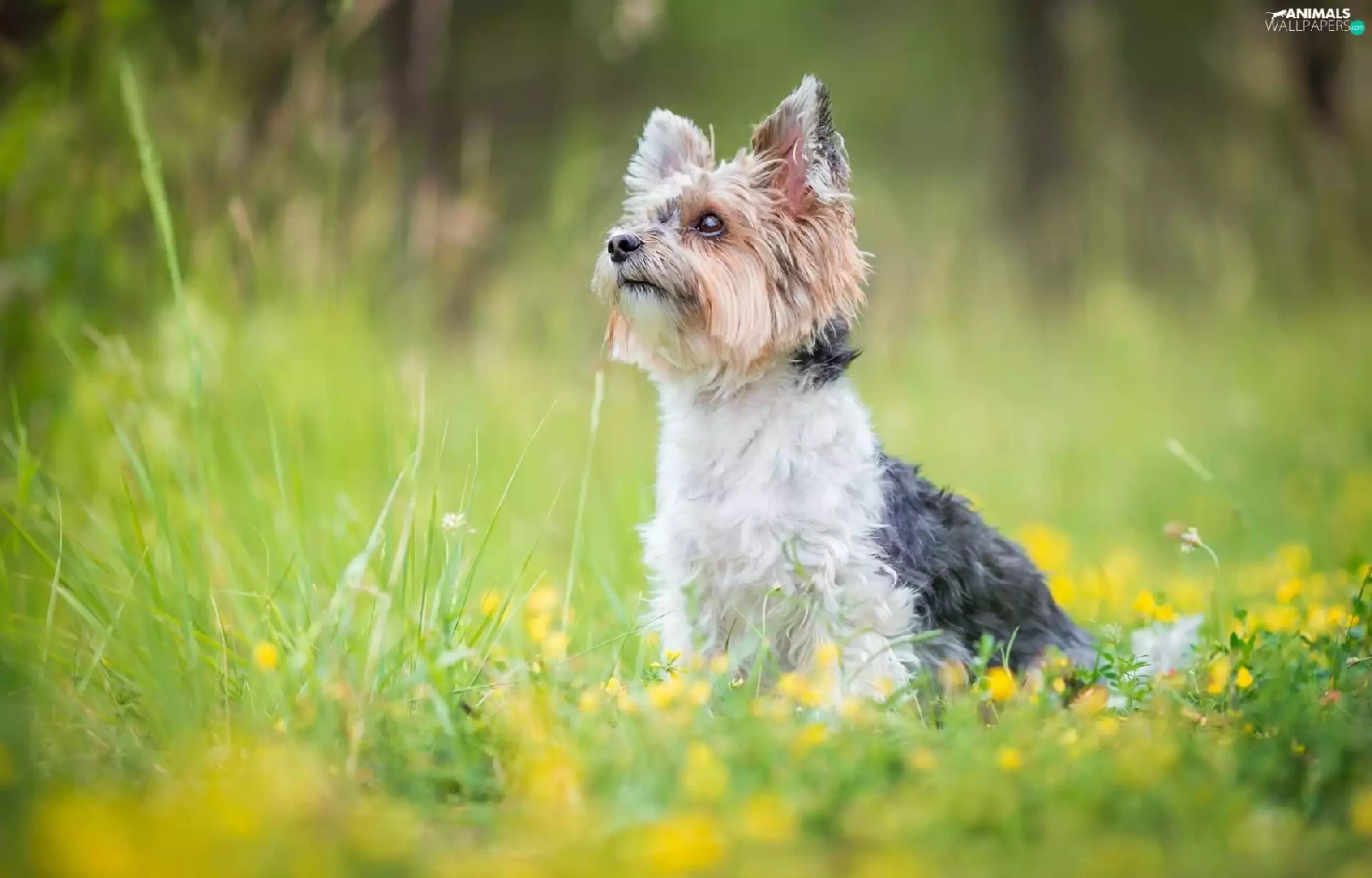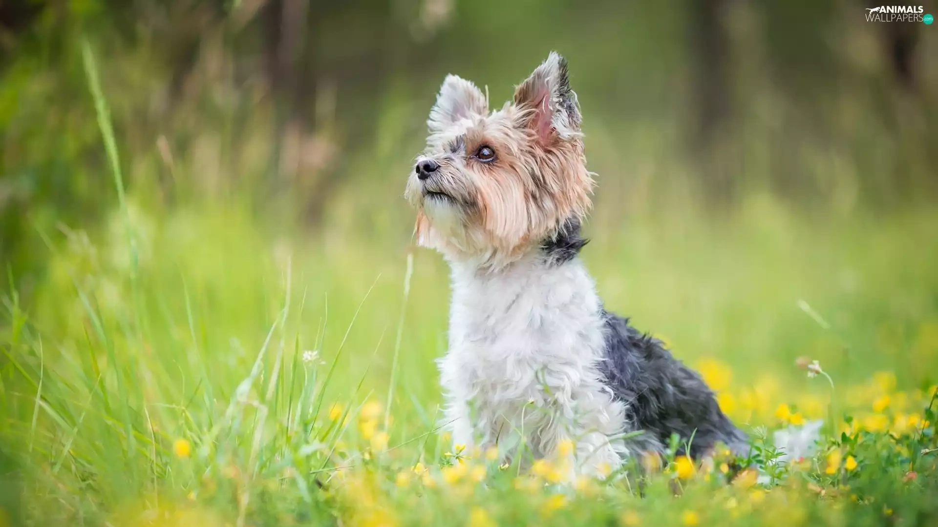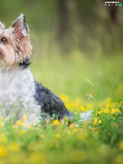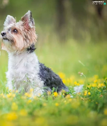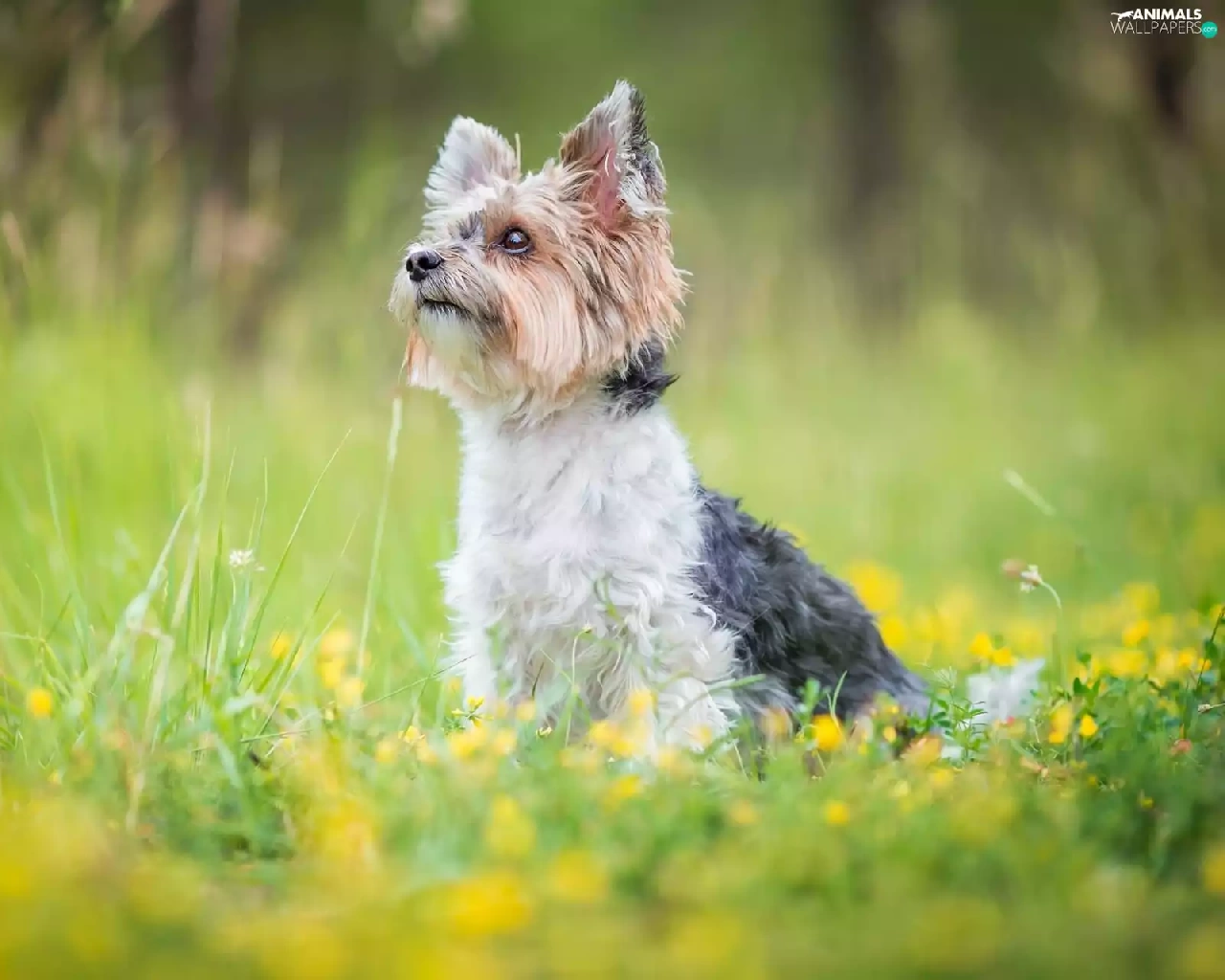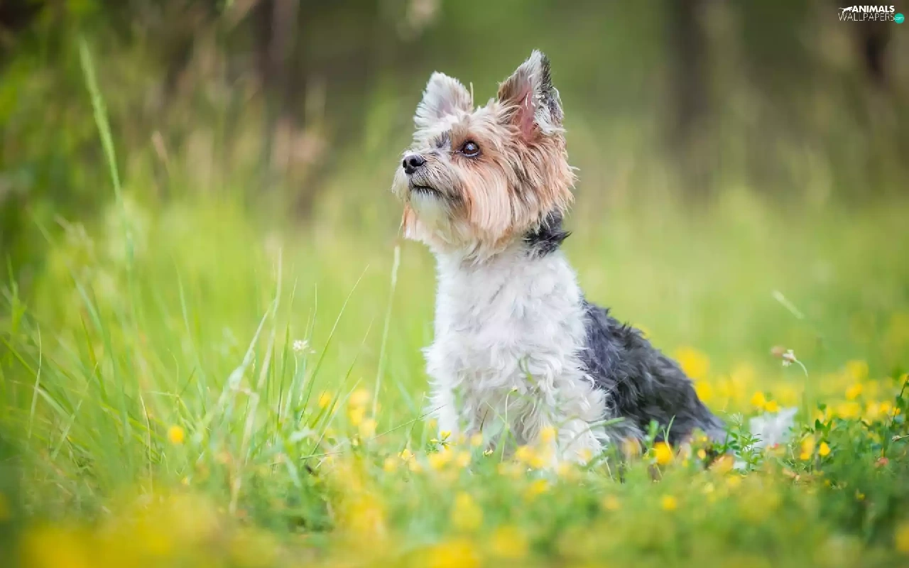 Flowers, grass, Yorkshire Terrier, Meadow, dog