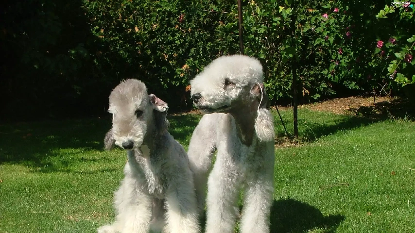 Two cars, Bedlington Terriery