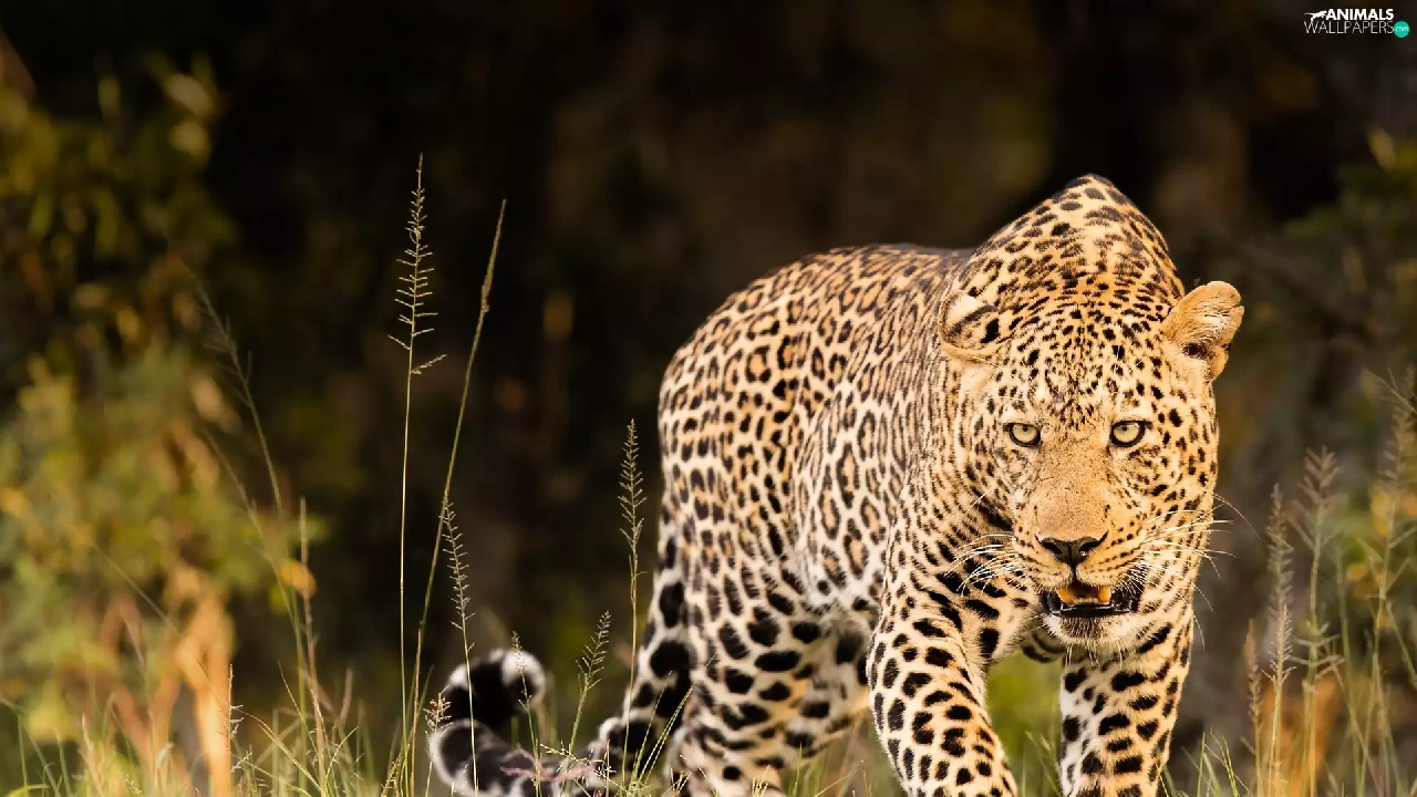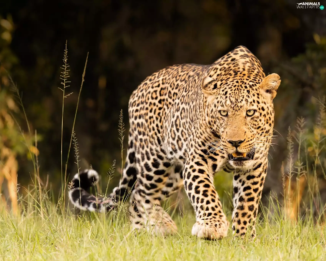 blur, Dark Background, The look, grass, Leopards
