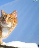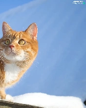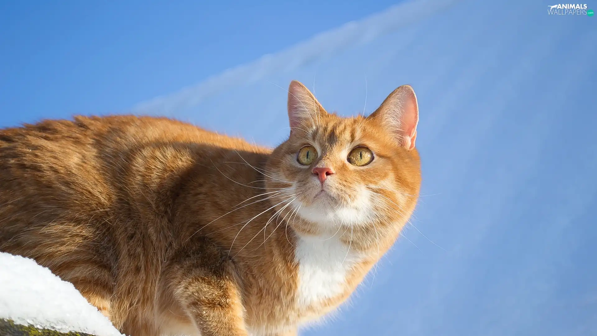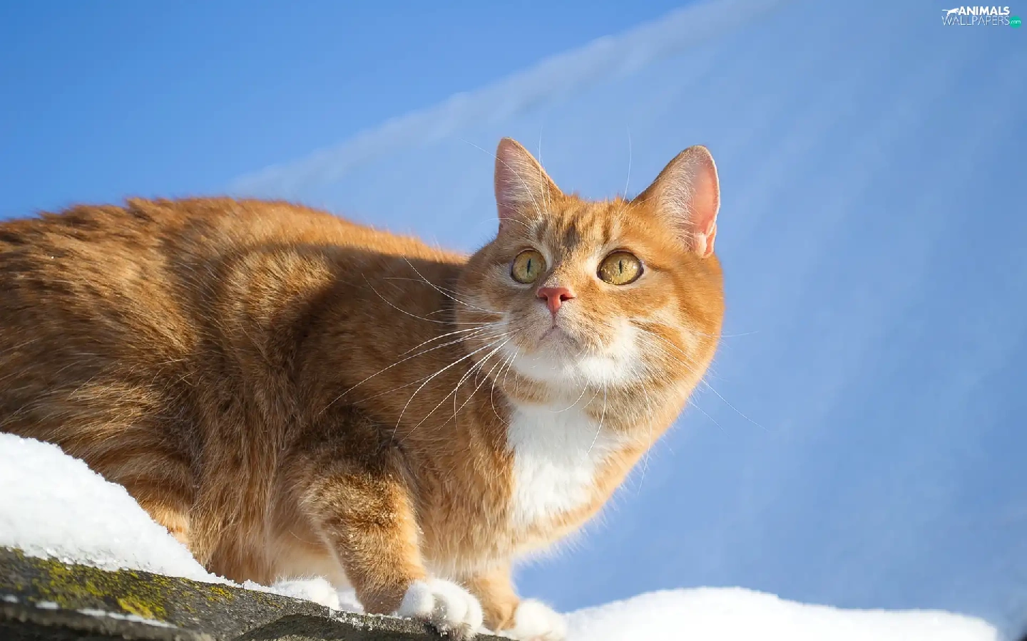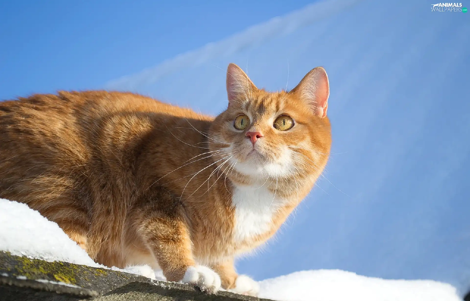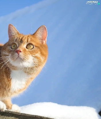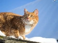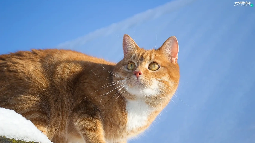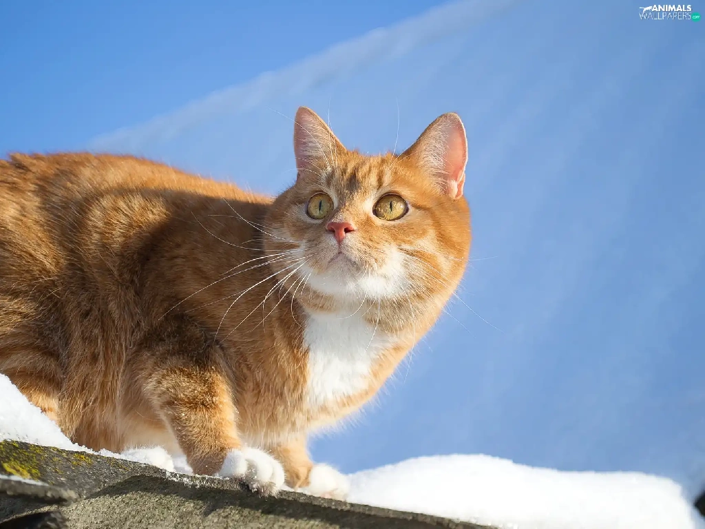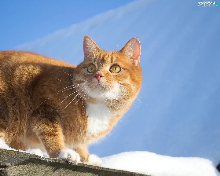 snow, Sky, cat, the roof, ginger