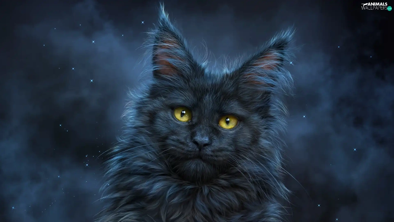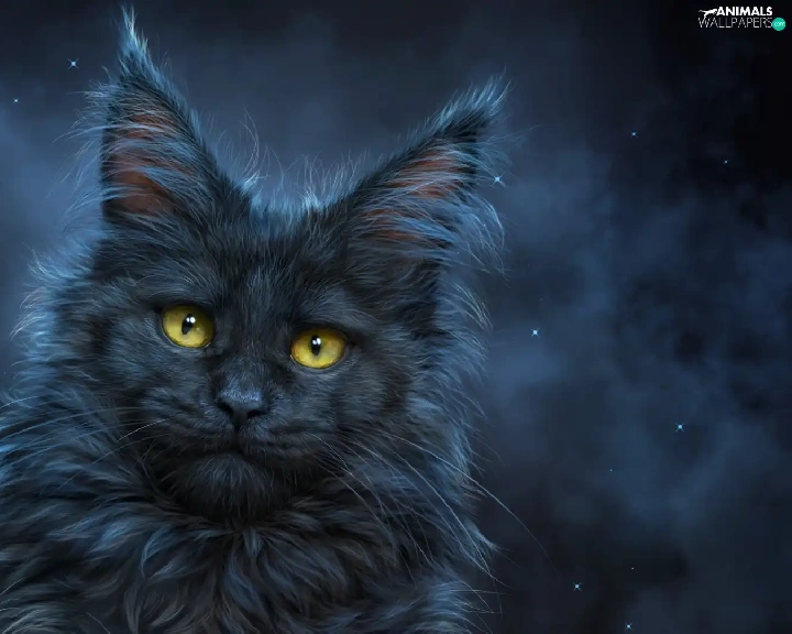 Yellow, Eyes, cat, The look, Longhaired