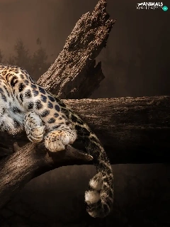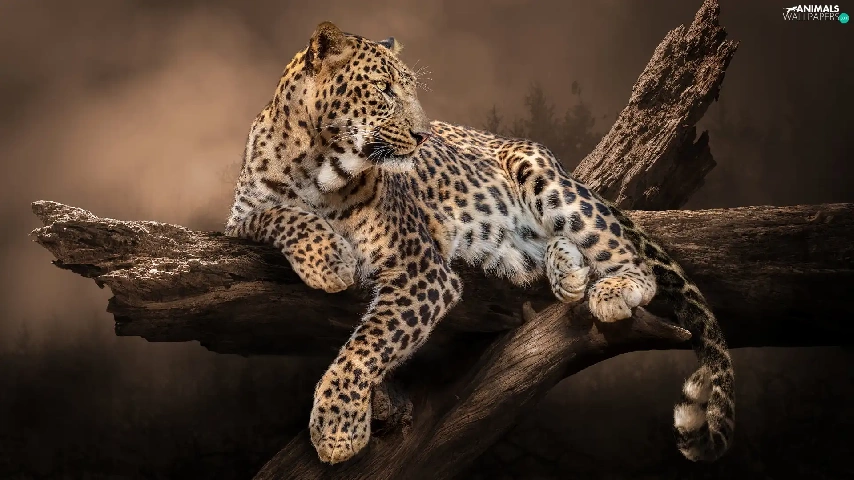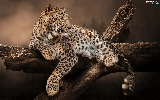 Leopards, Lod on the beach, lying