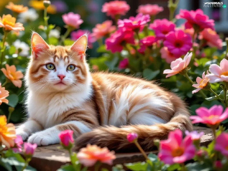 white and red, The look, Flowers, cat