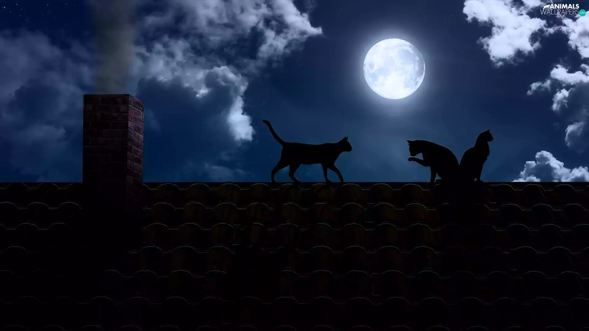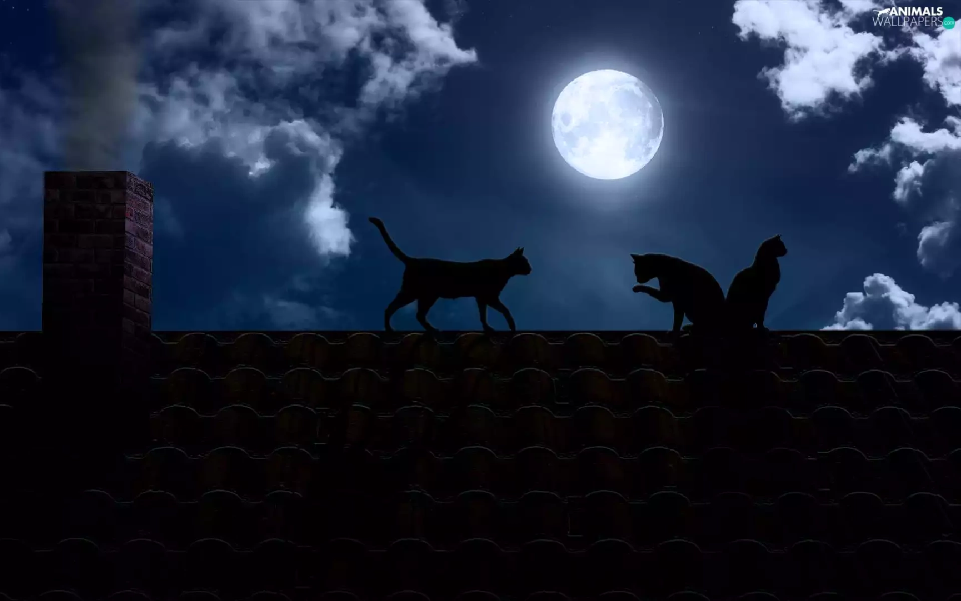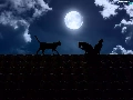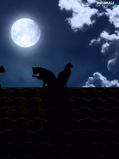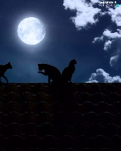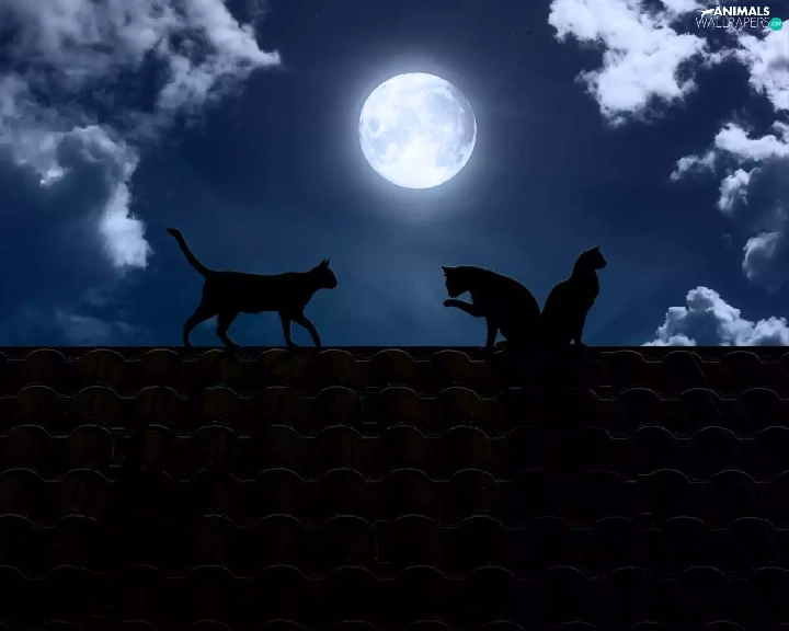 cats, the roof, moon, Night