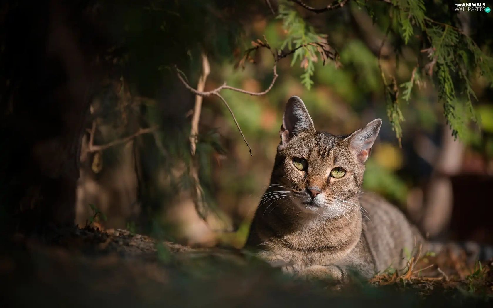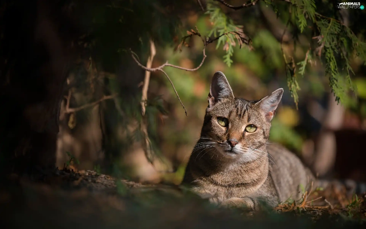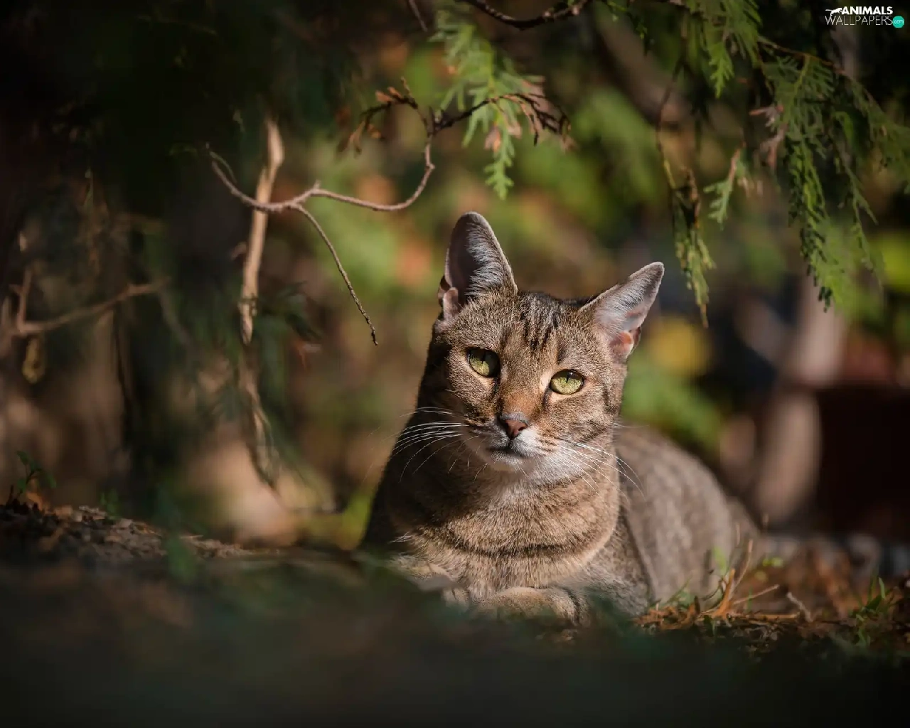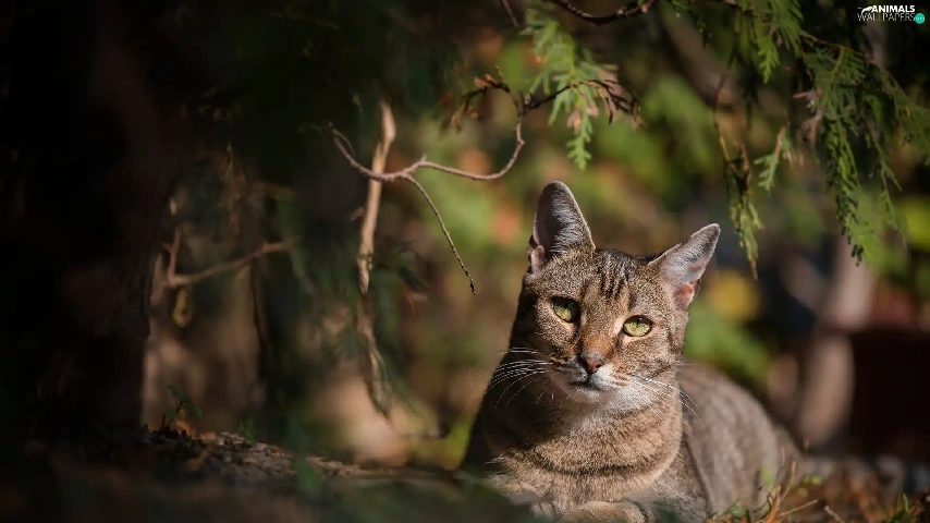 shadow, branch pics, cat, The look, Gray