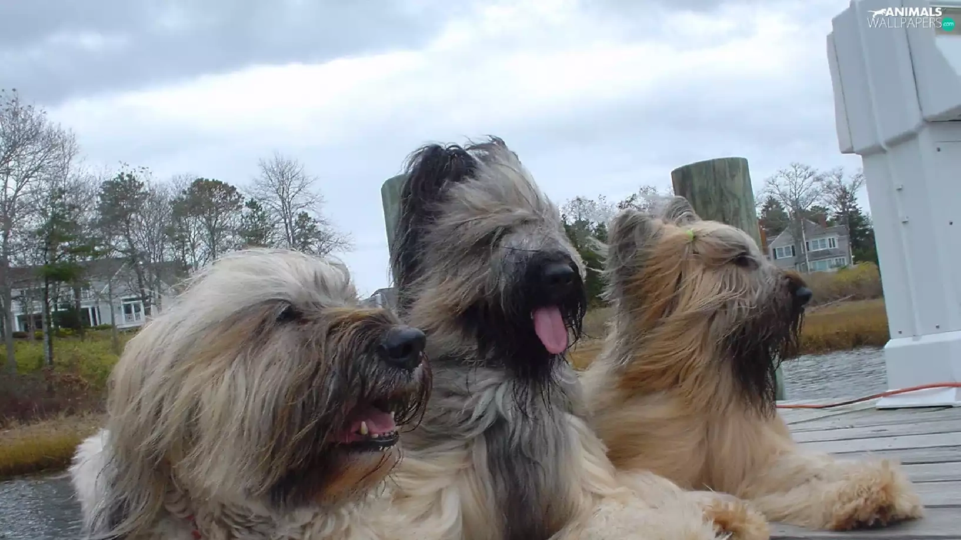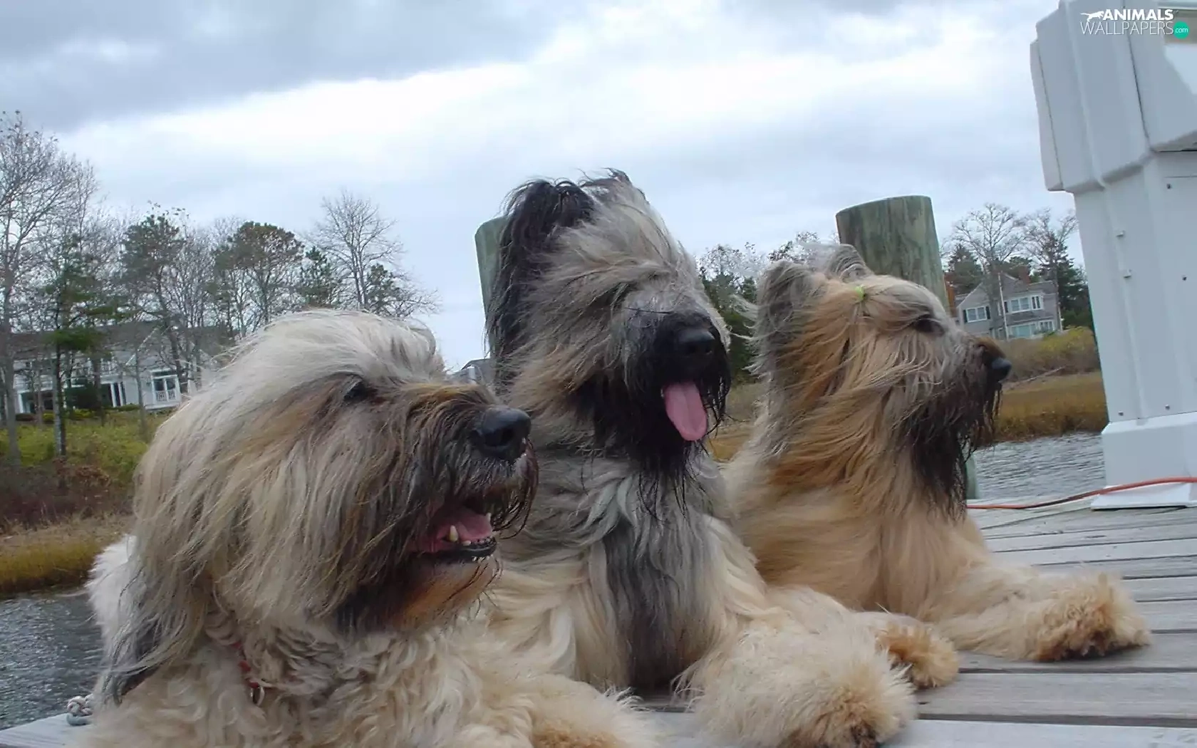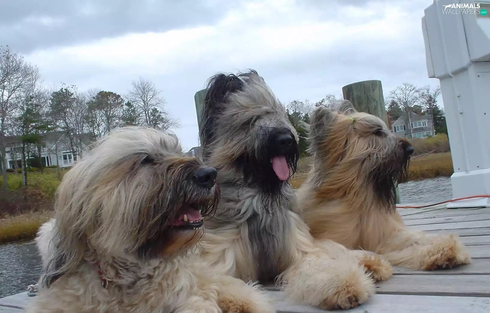 pier, Three, French Sheepdogs briards