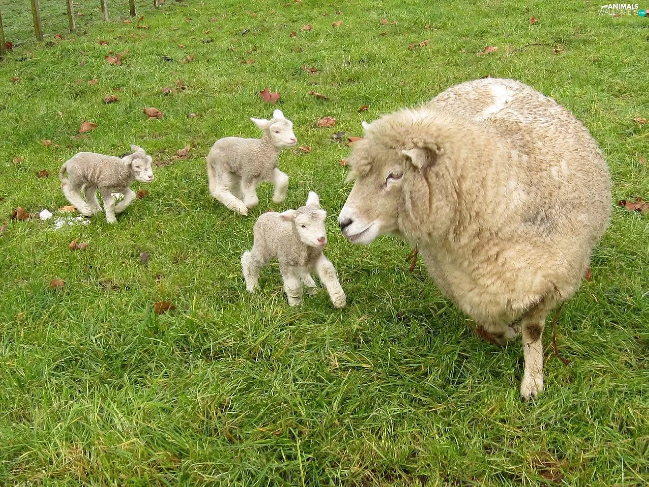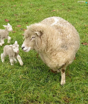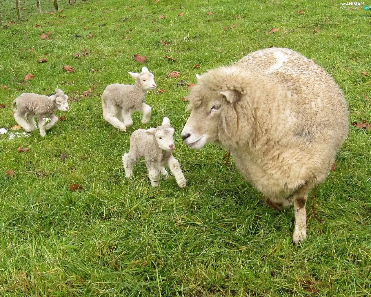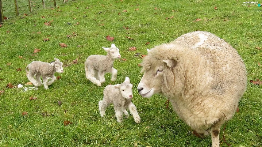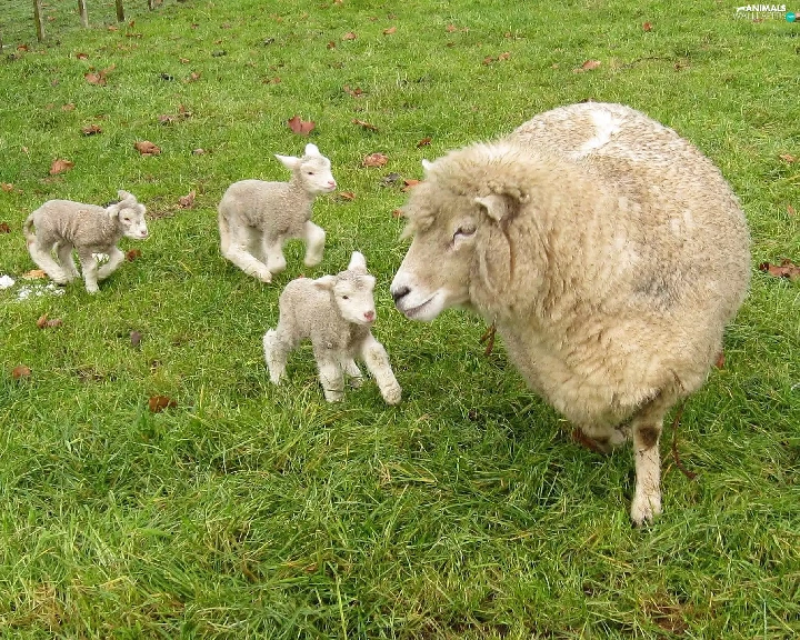 sheep, young, grass, Three