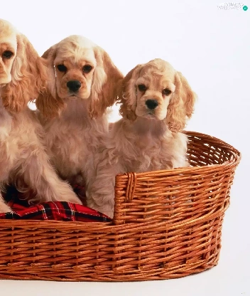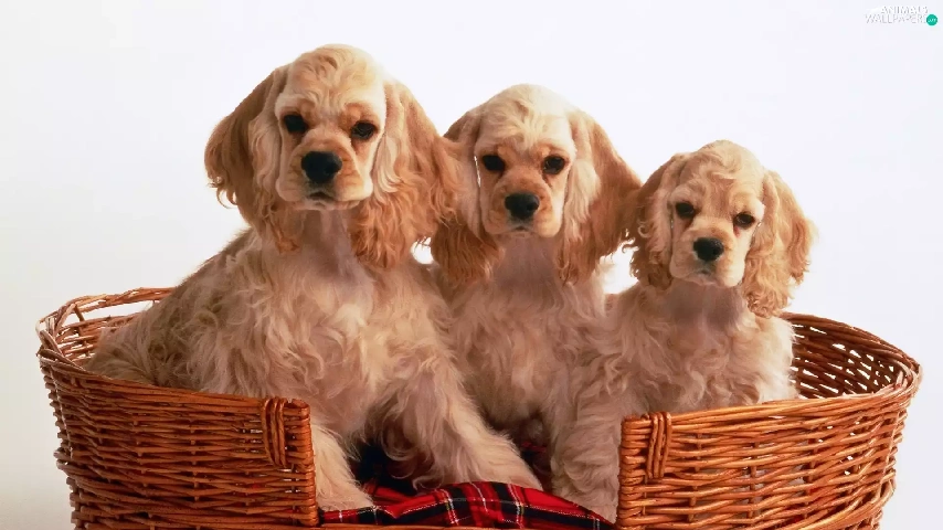 basket, Three, Spaniels, Red-Haired