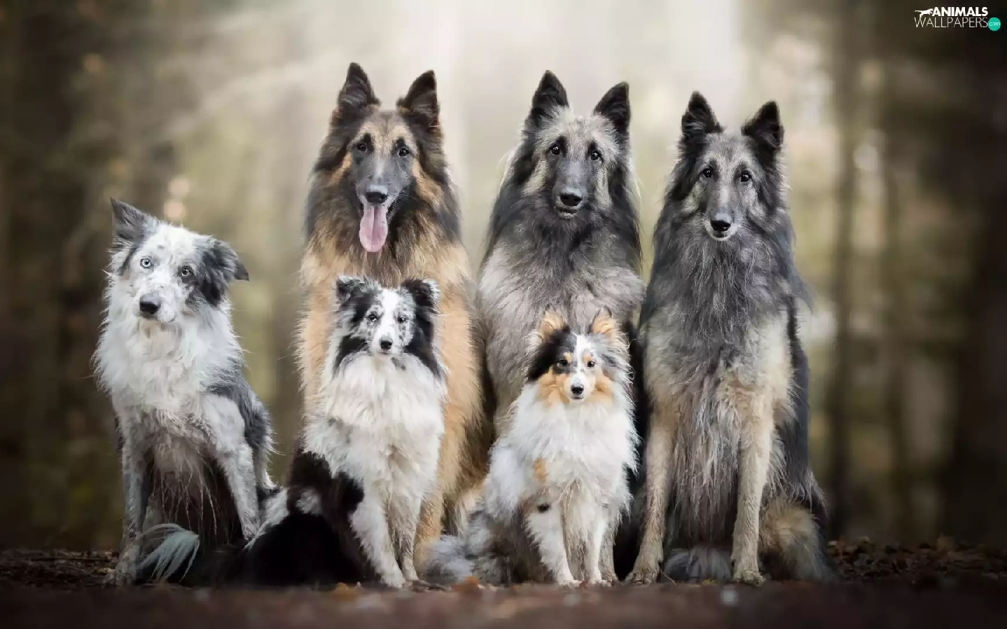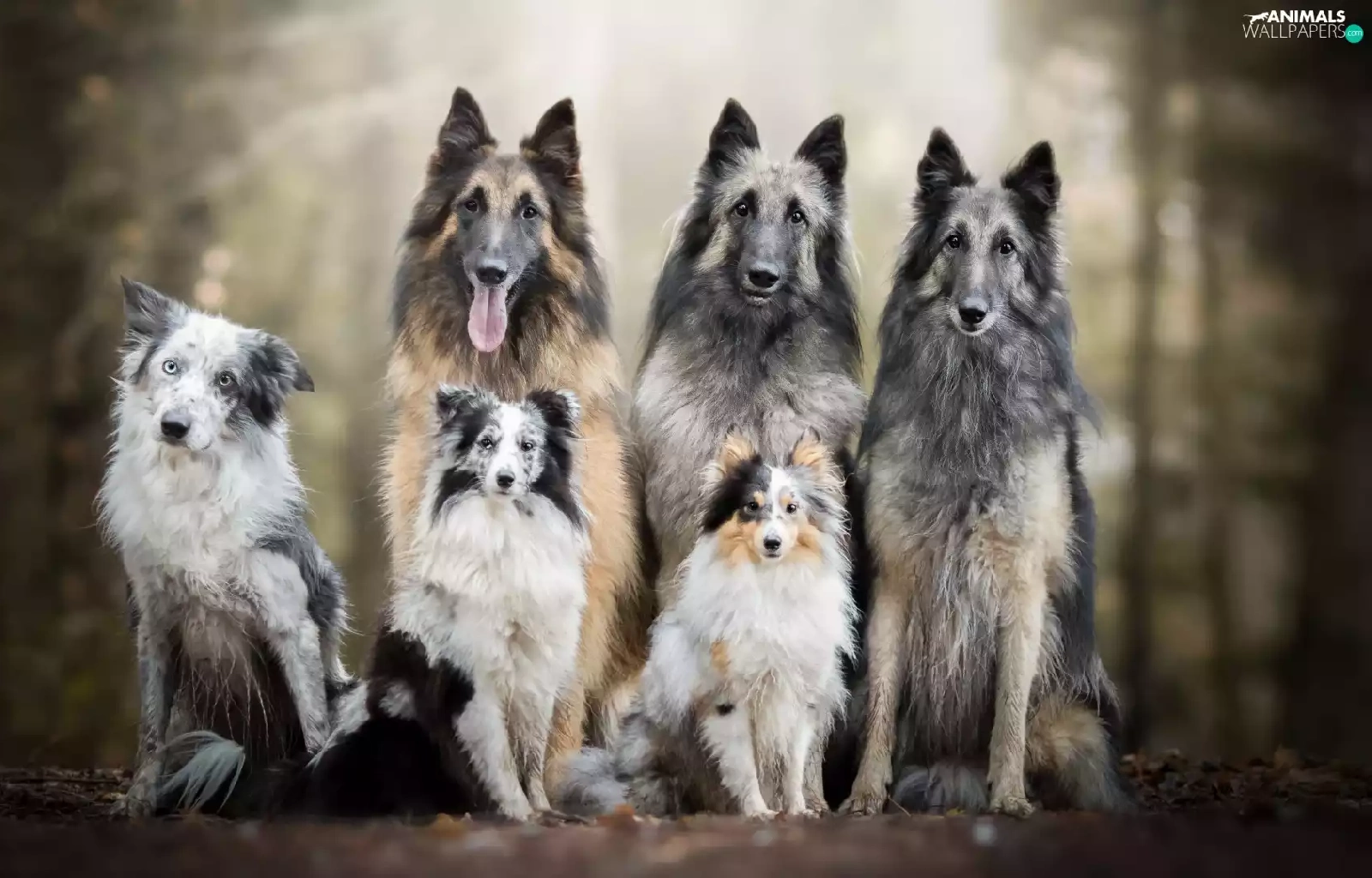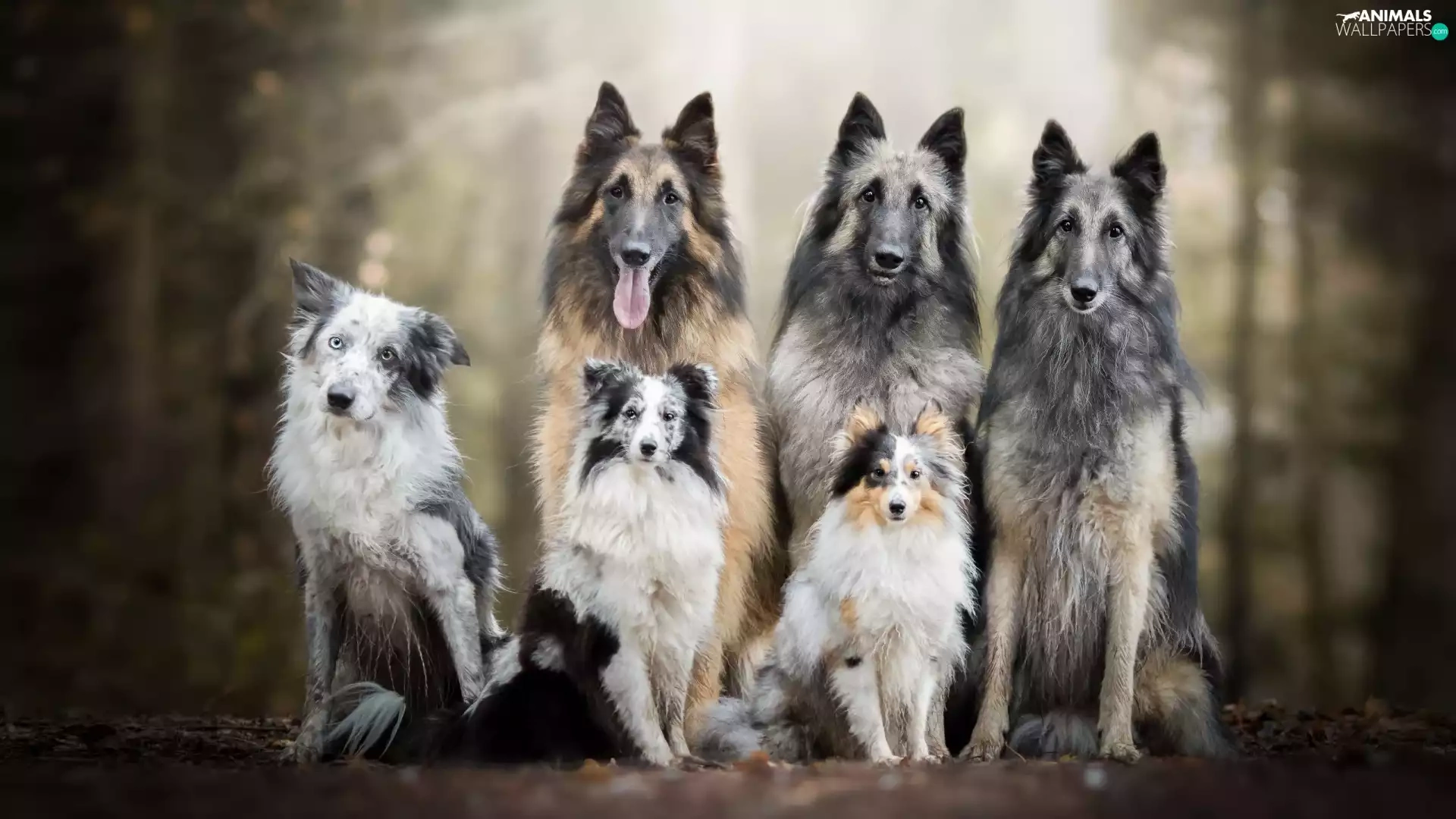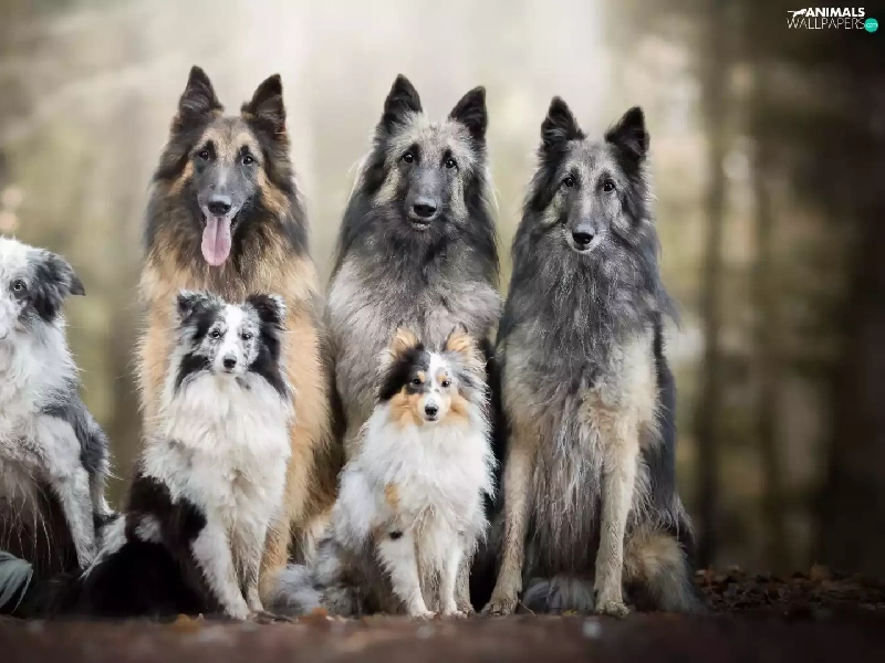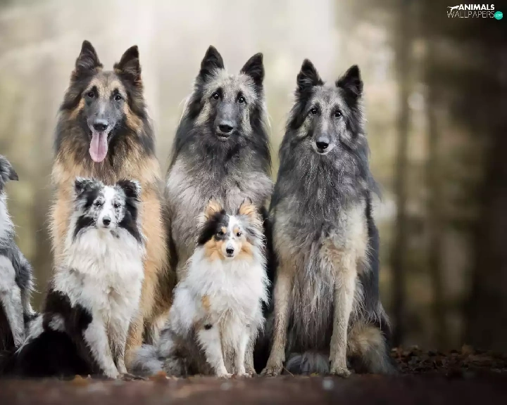 Three, six, Border Collie, shetland Sheepdog, Belgian Shepherd Tervuren, dogs