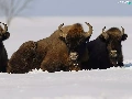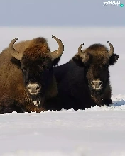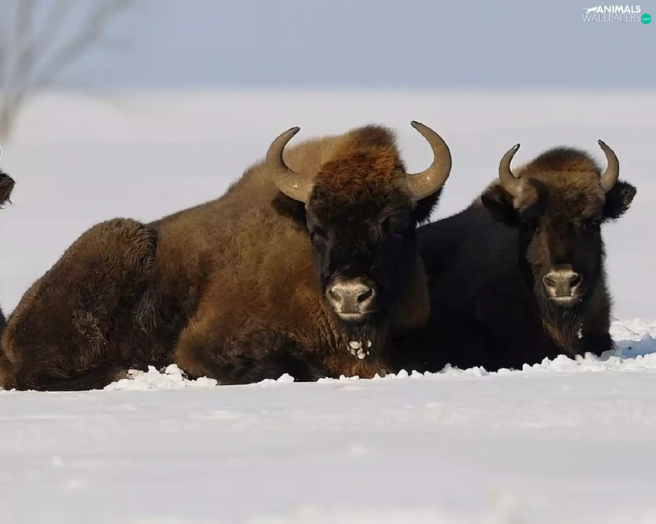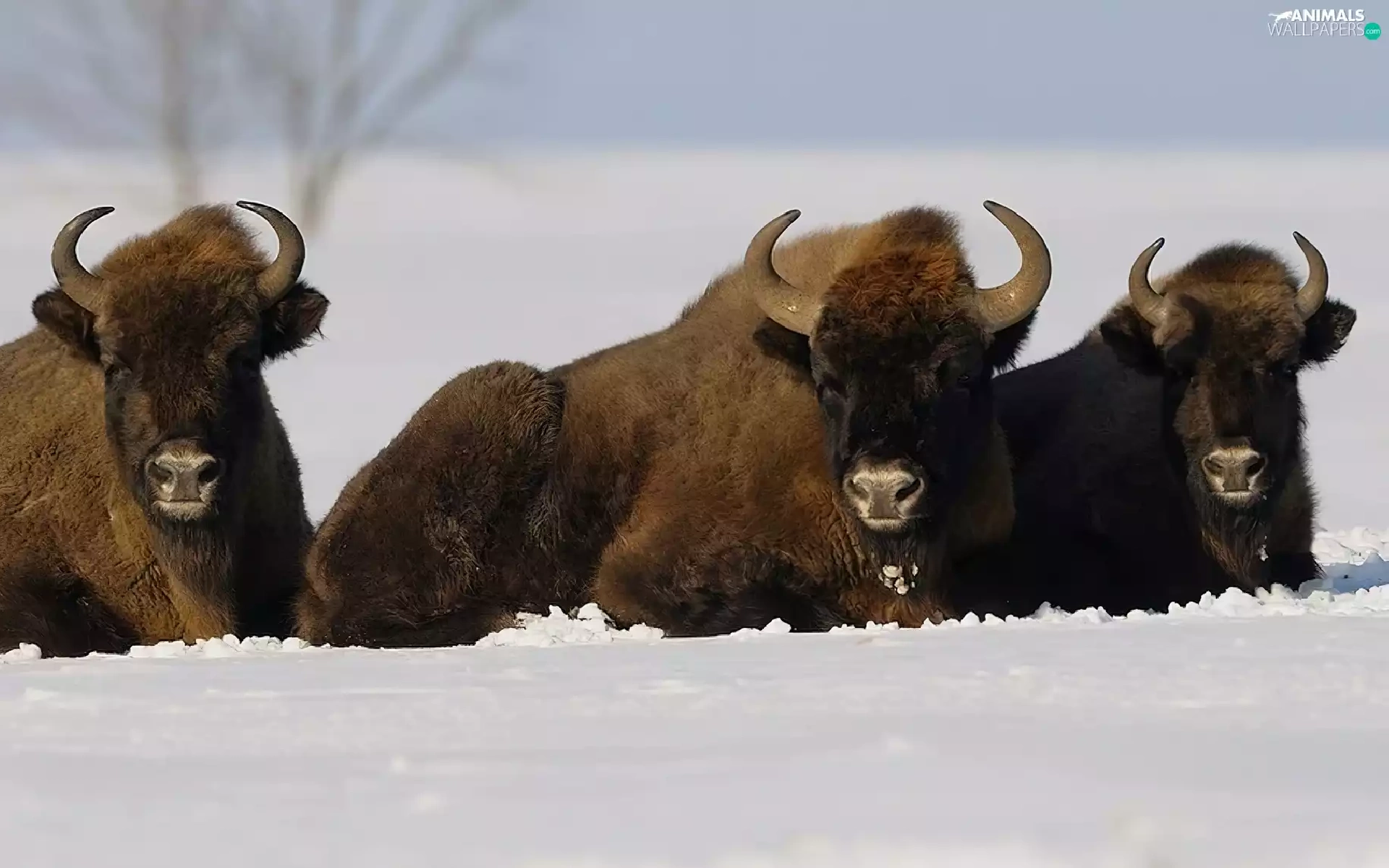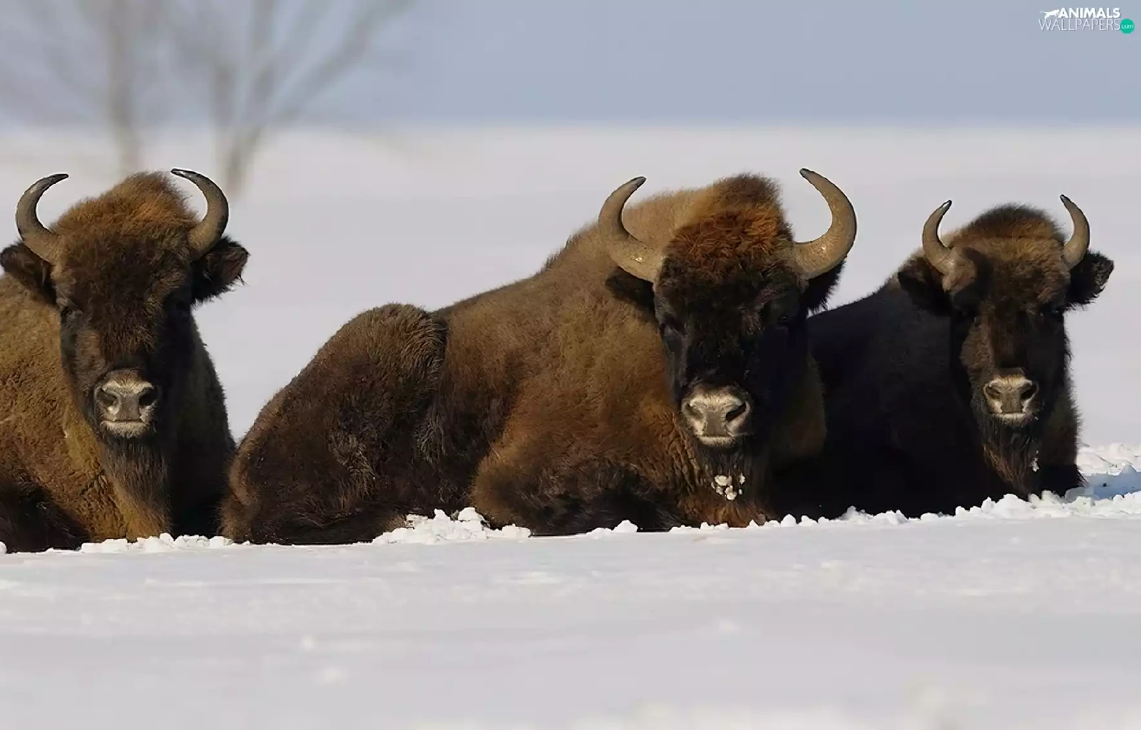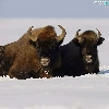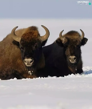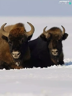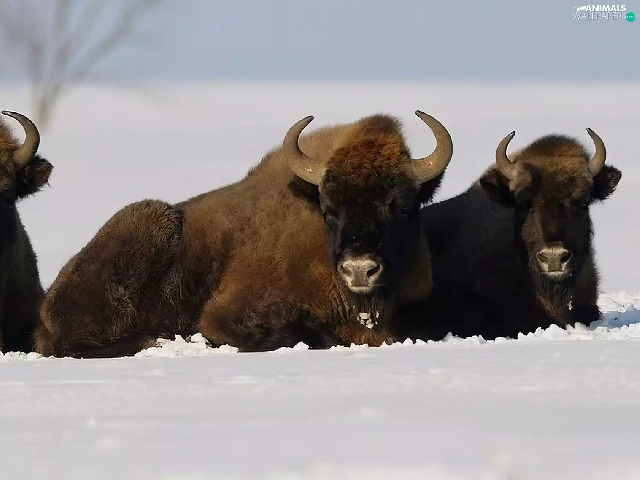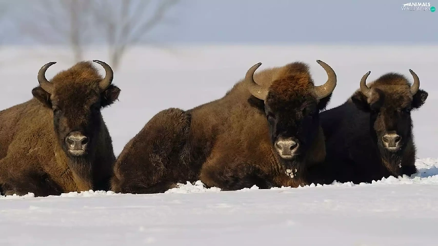 winter, Bisons, snow, Three
