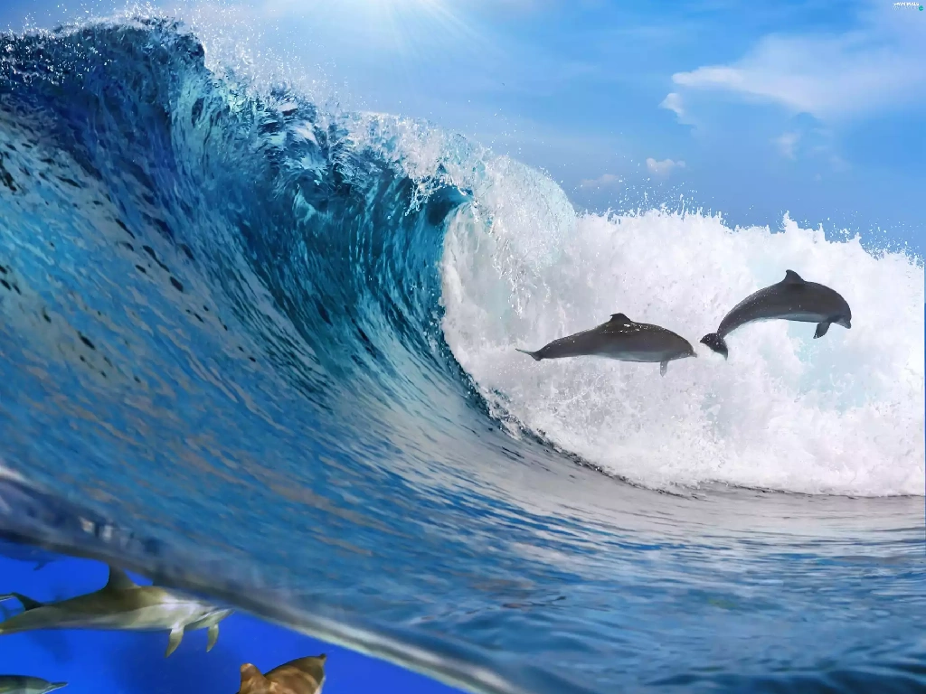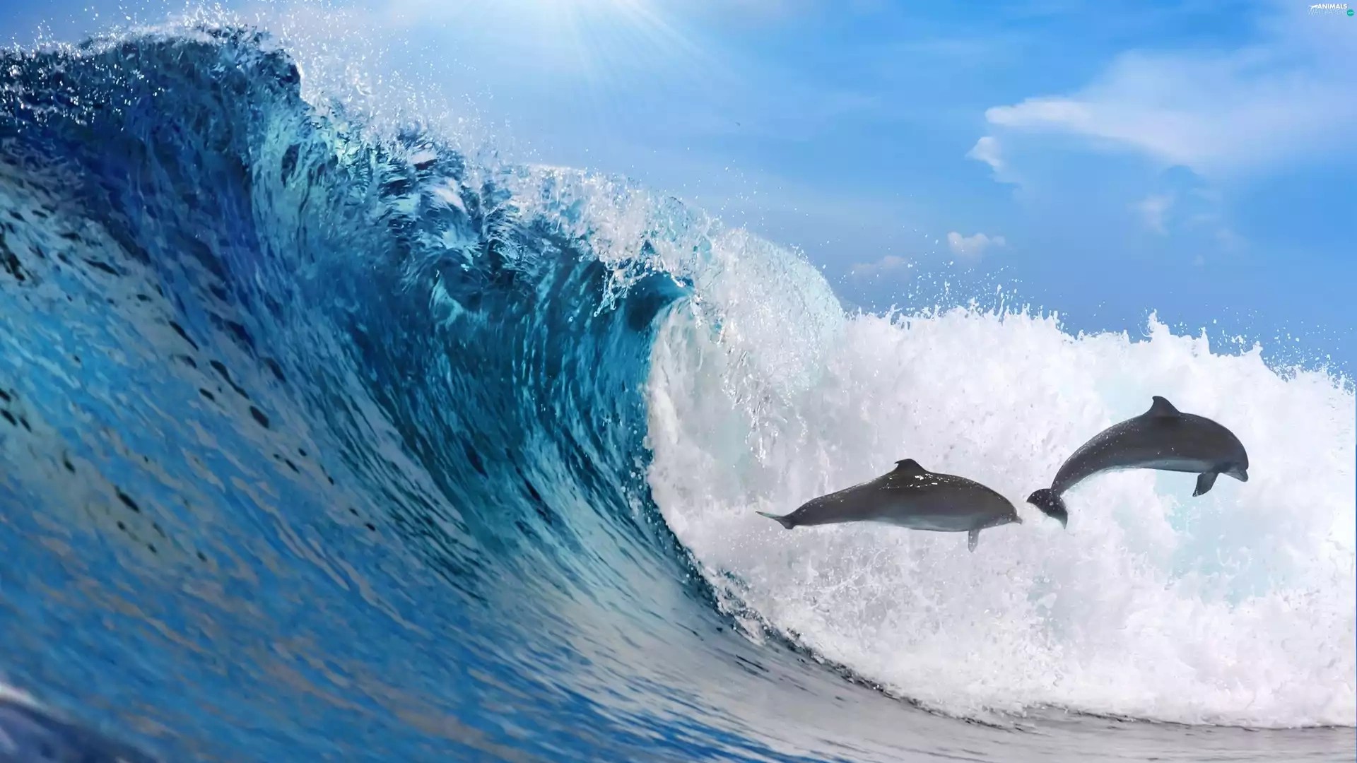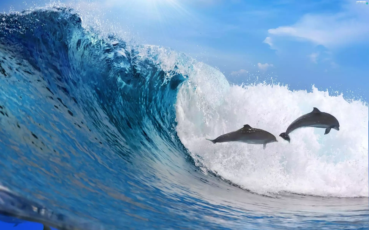 Tides, sea, dolphins