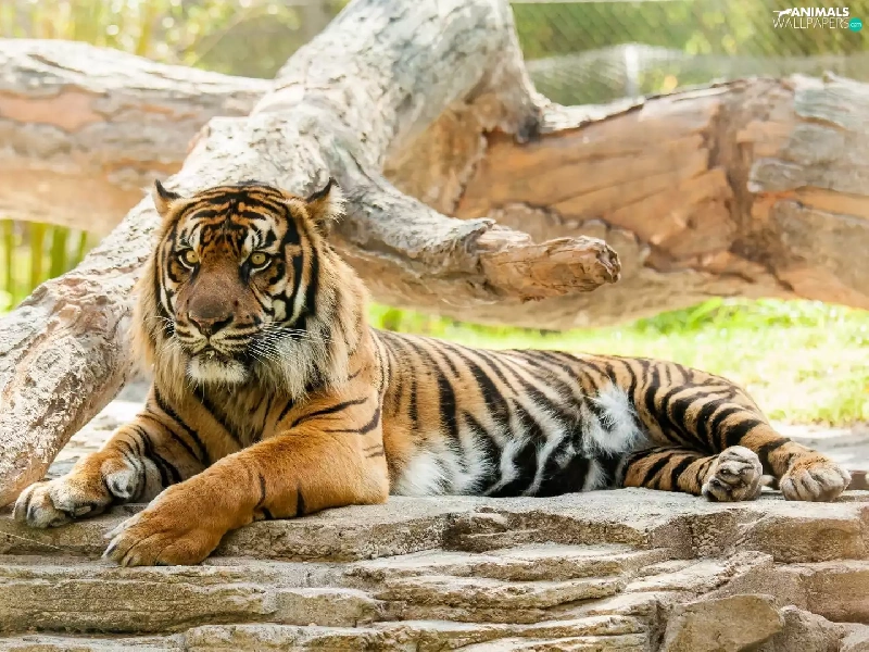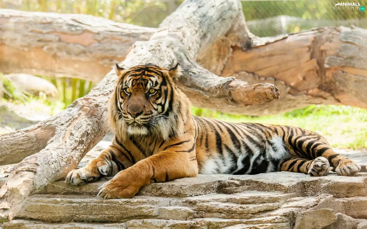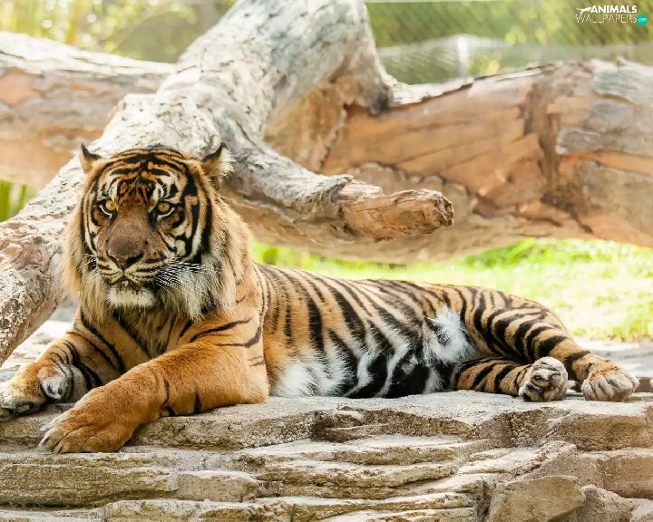 tiger, trees, animals