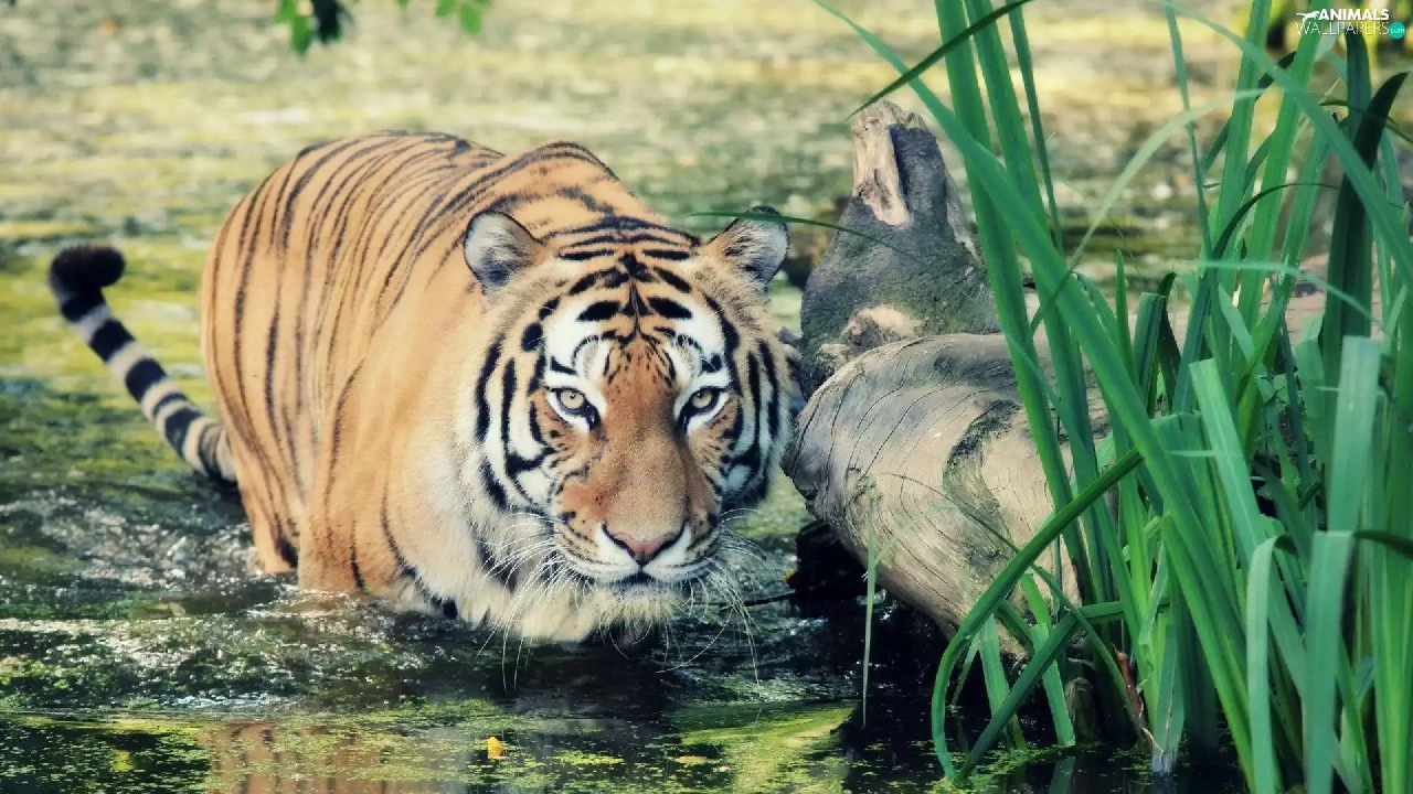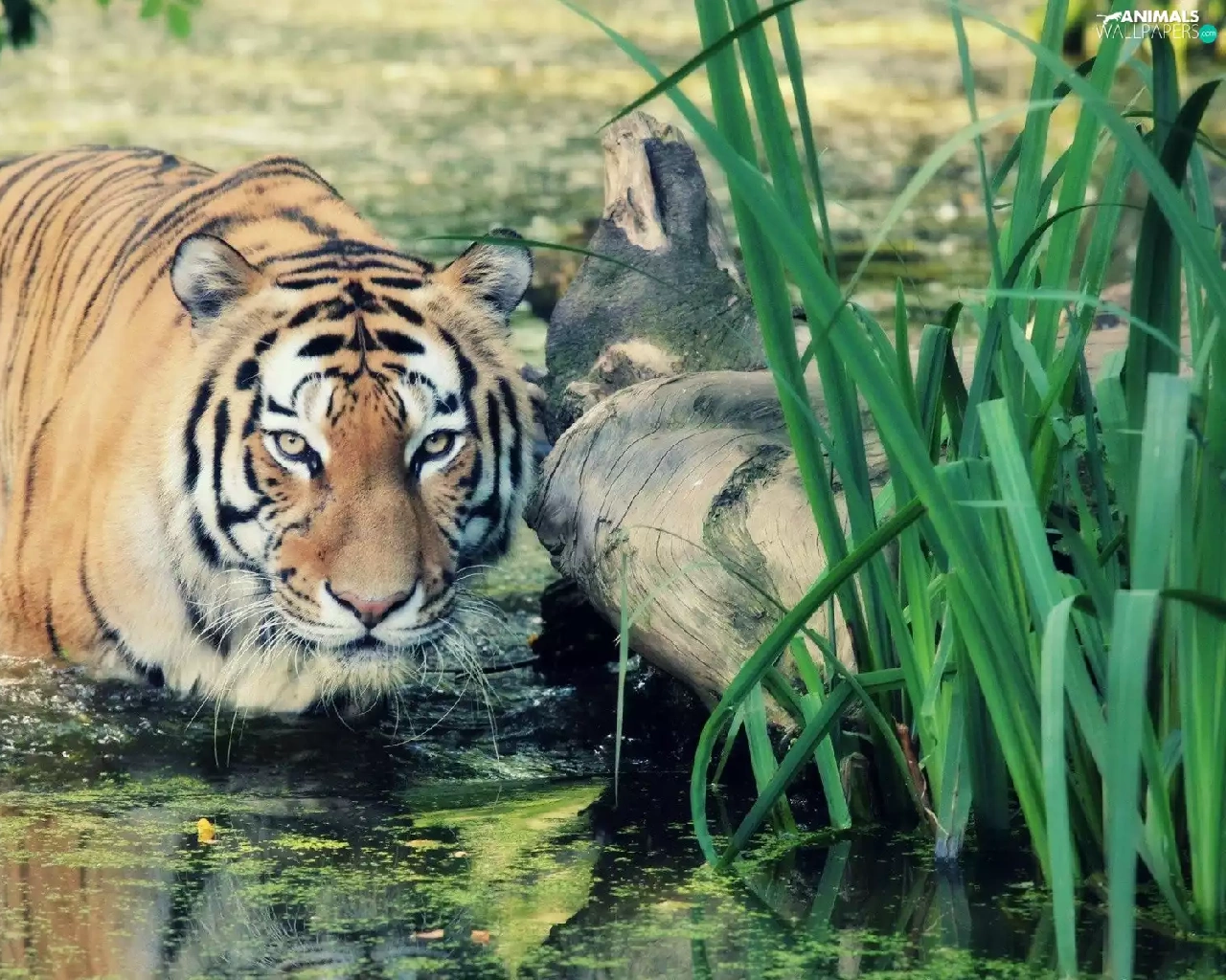 Chatter, water, Plants, tiger