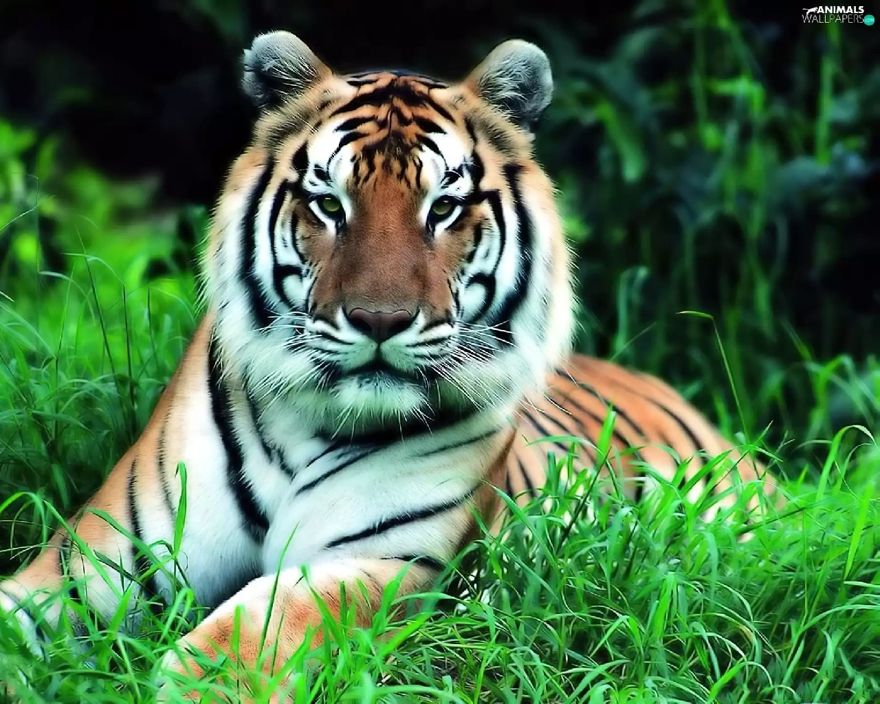 tiger, grass