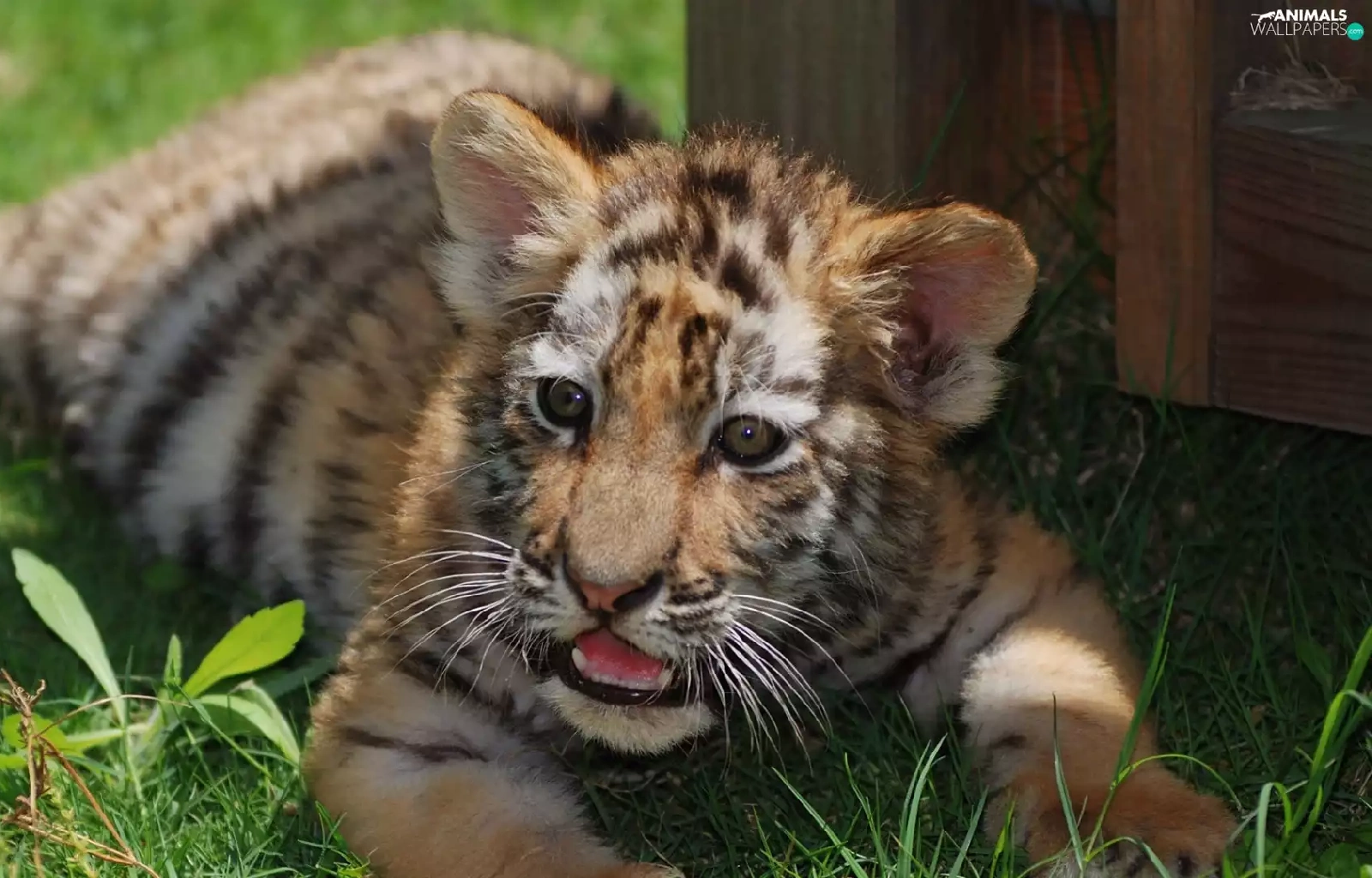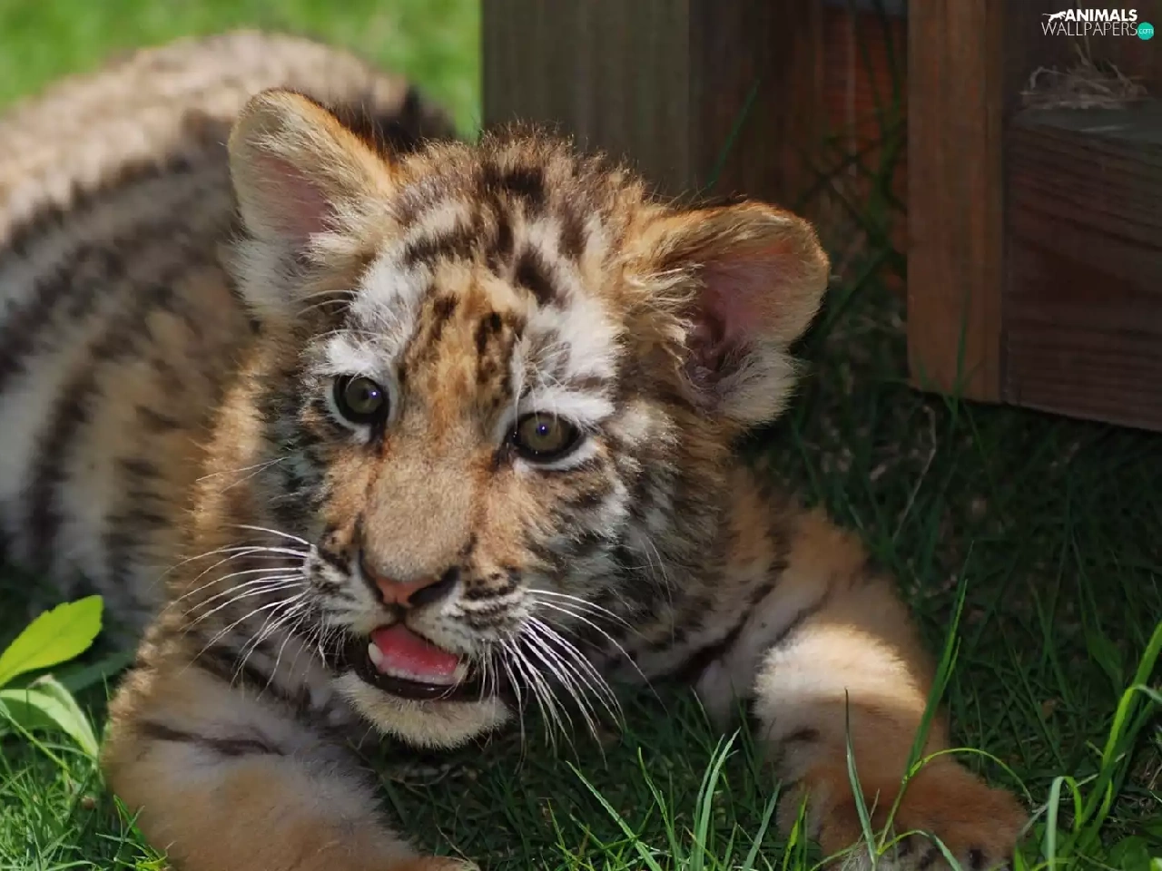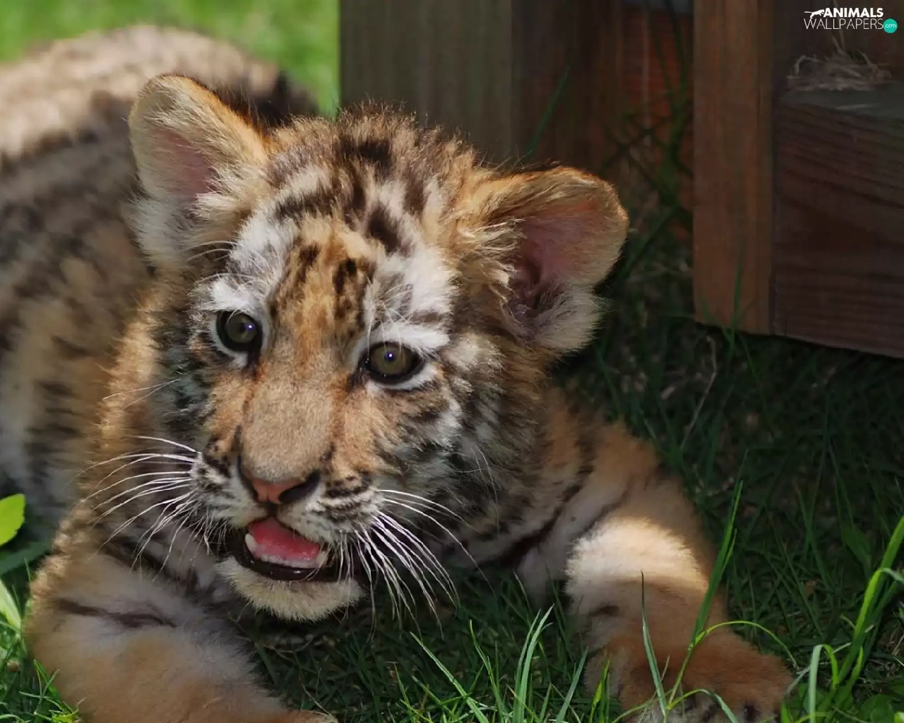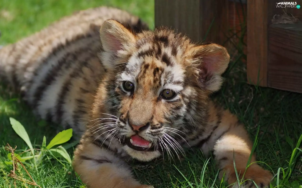 The look, grass, tiger, Teeth, lying