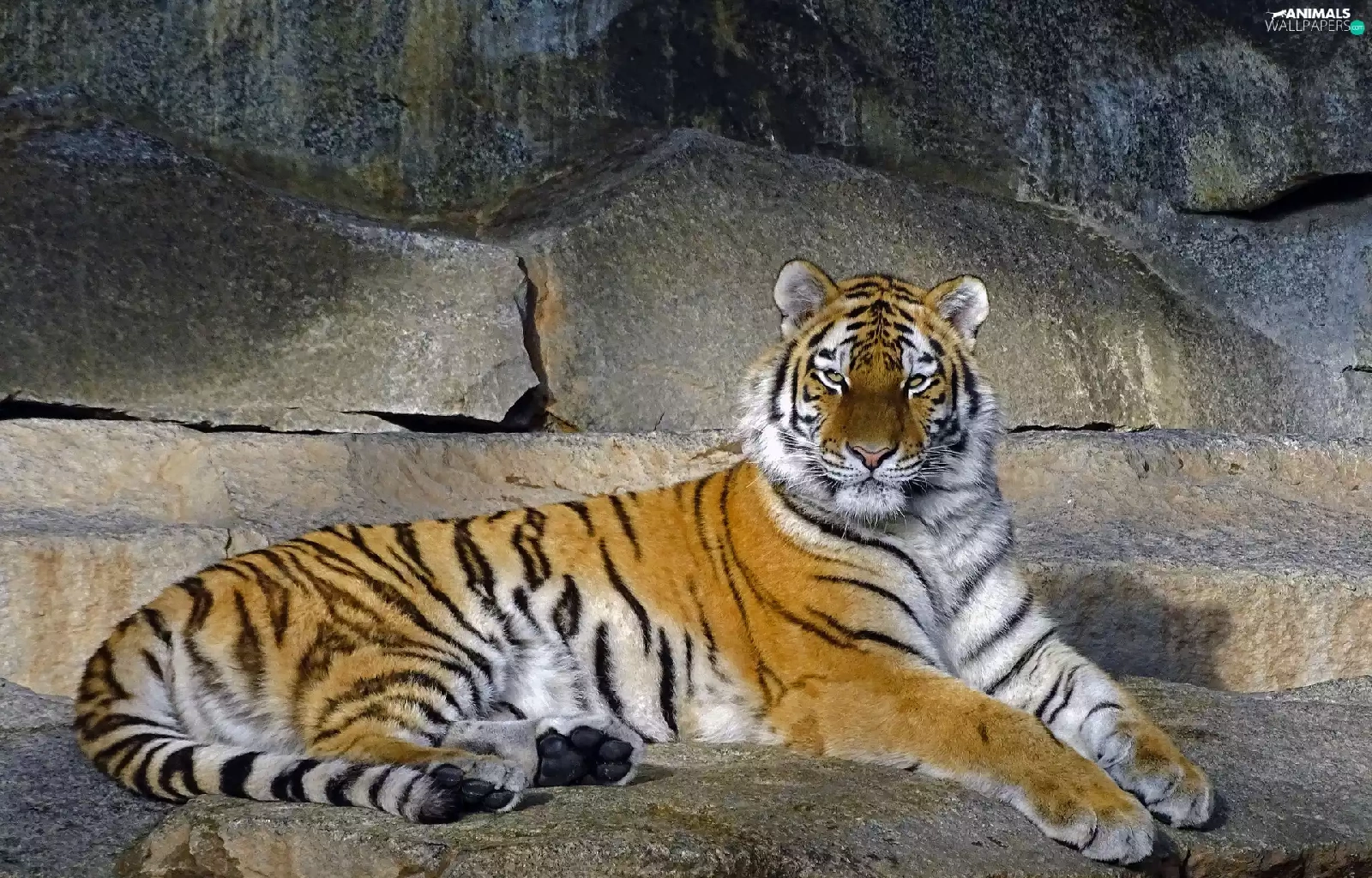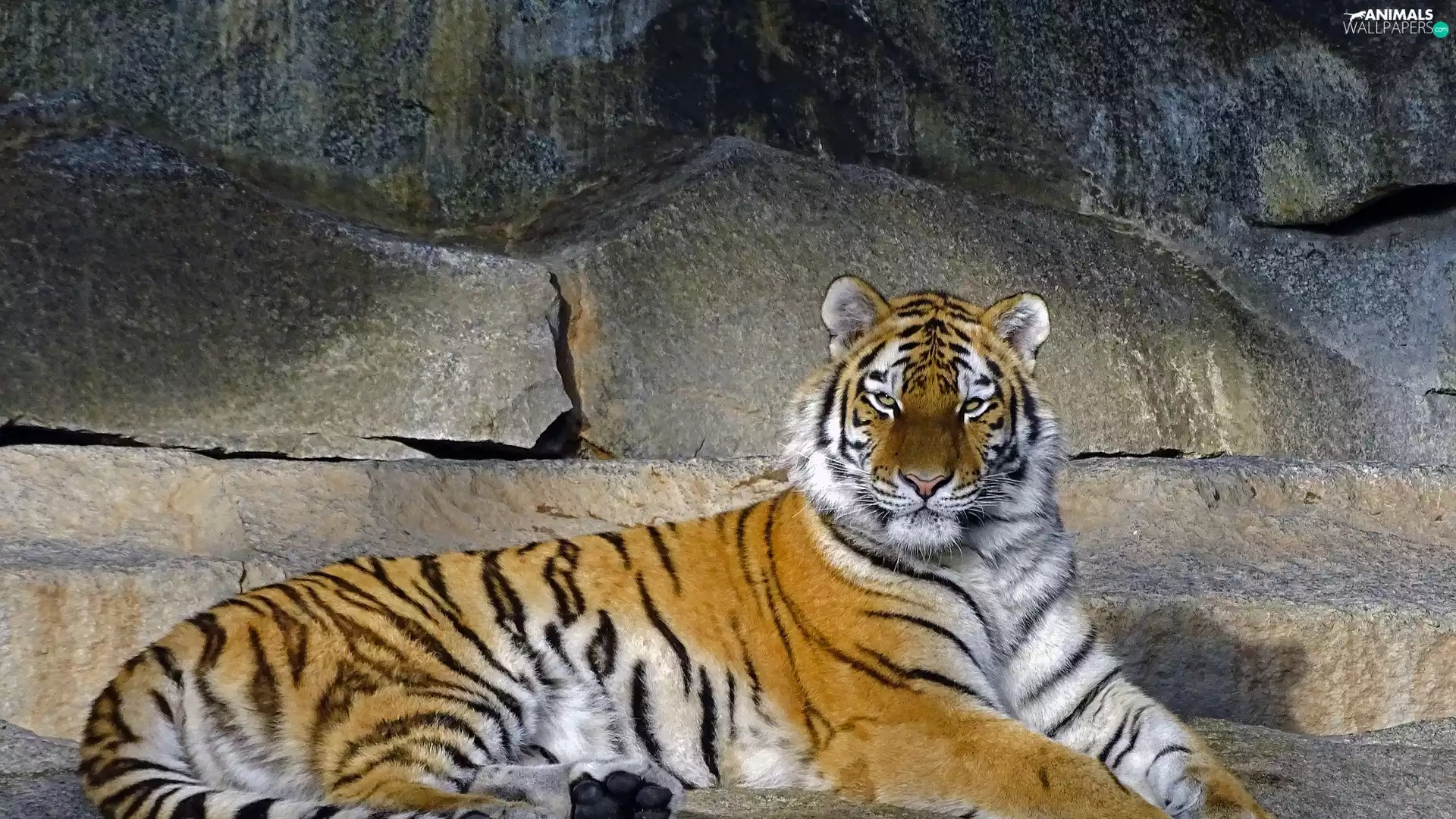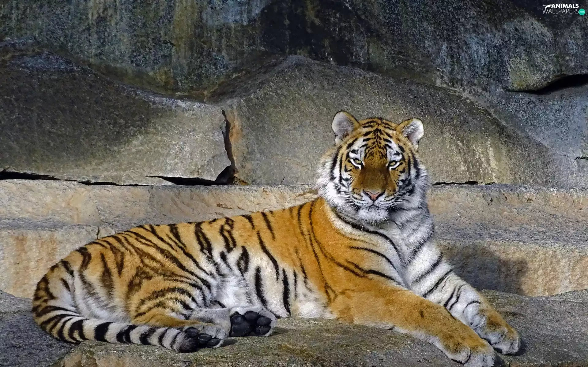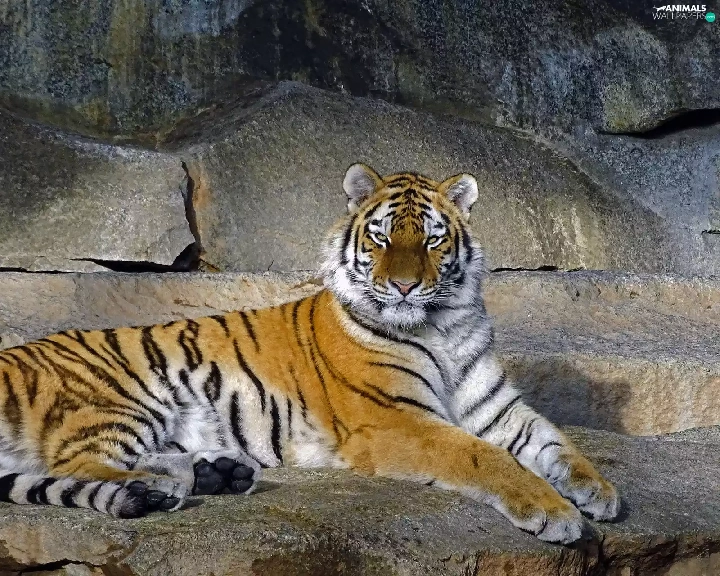 tiger, rocks, lying
