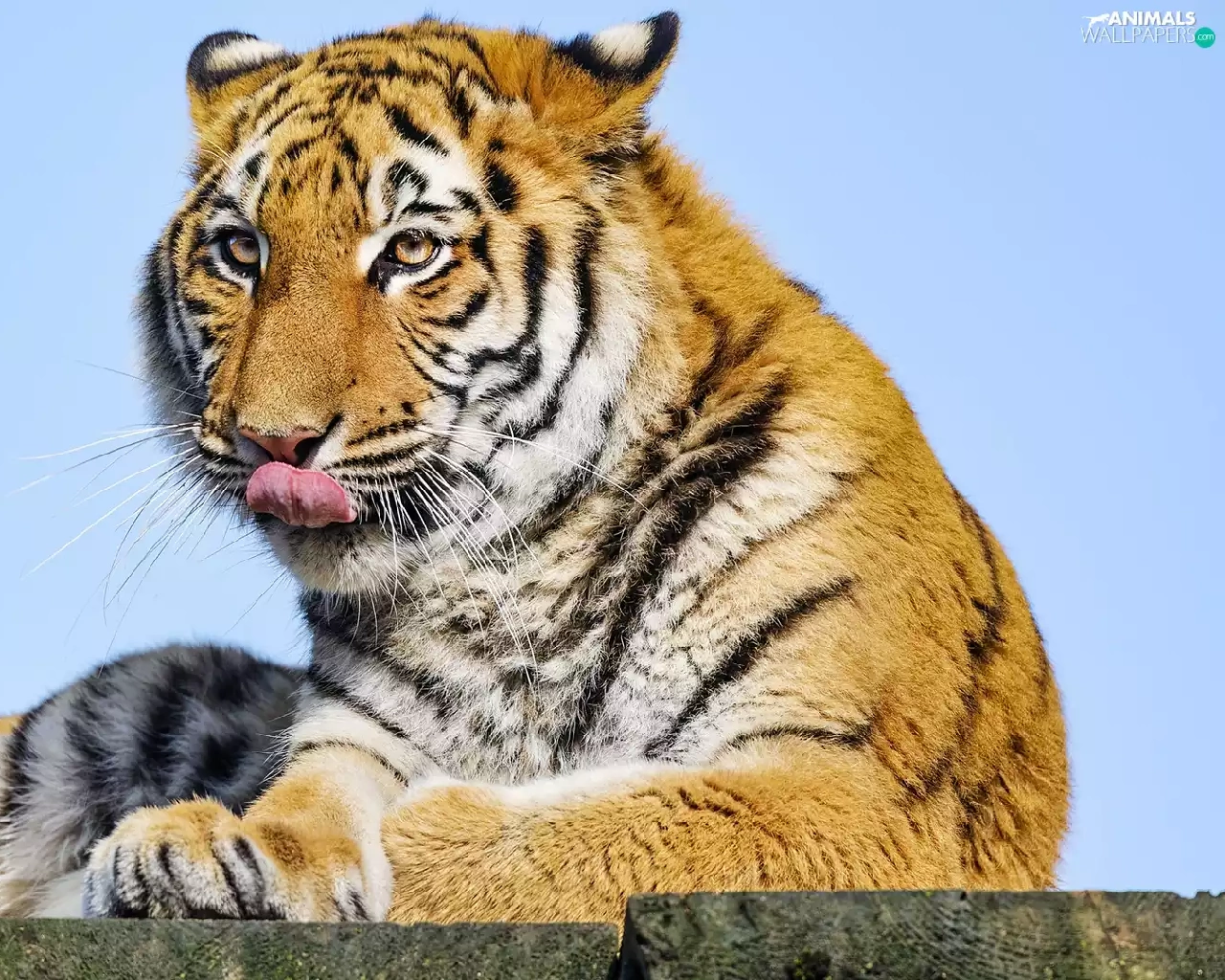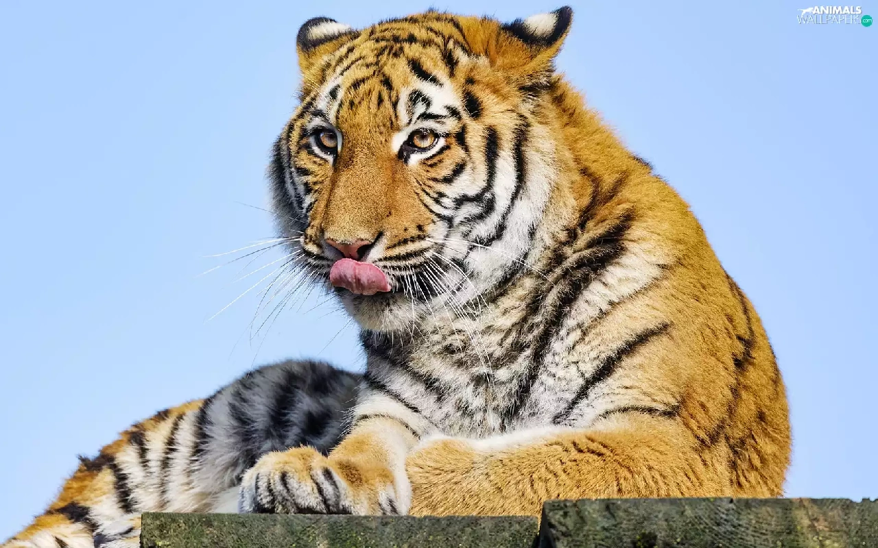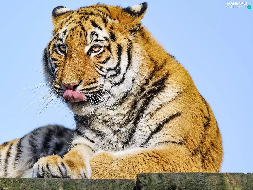 lying, Tounge, Sky, tiger