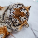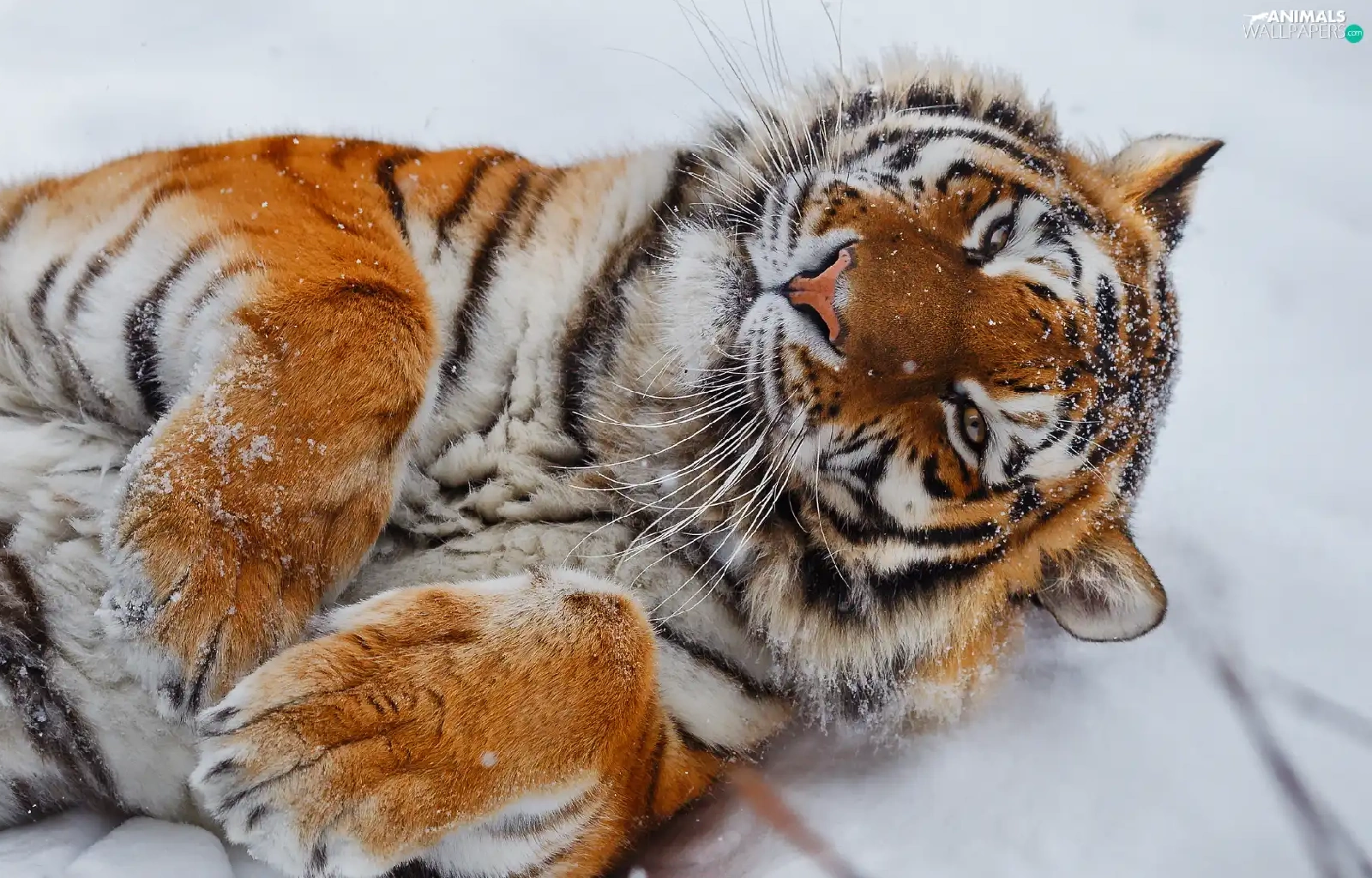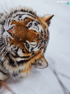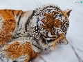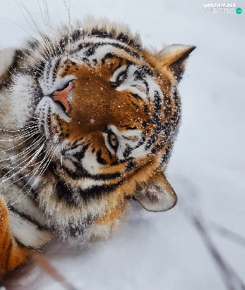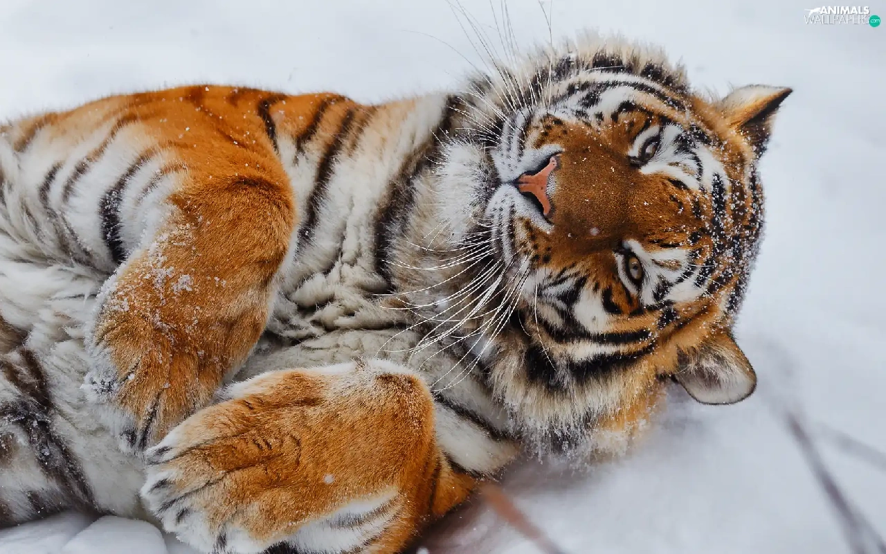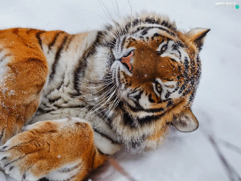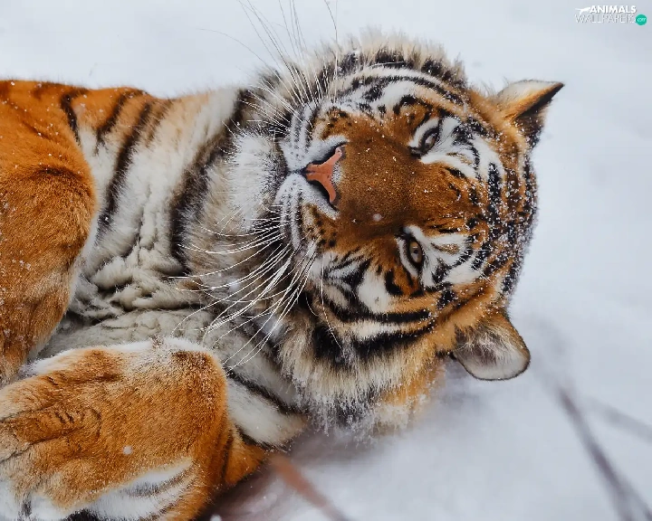 lying, paws, snow, tiger