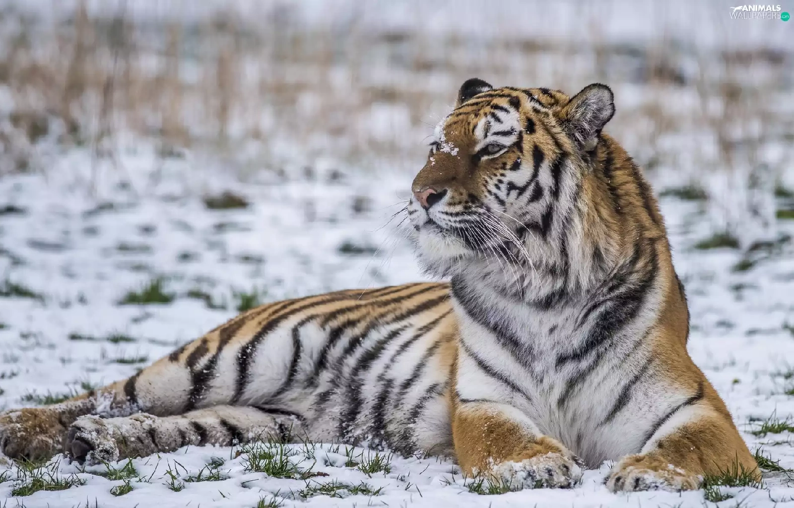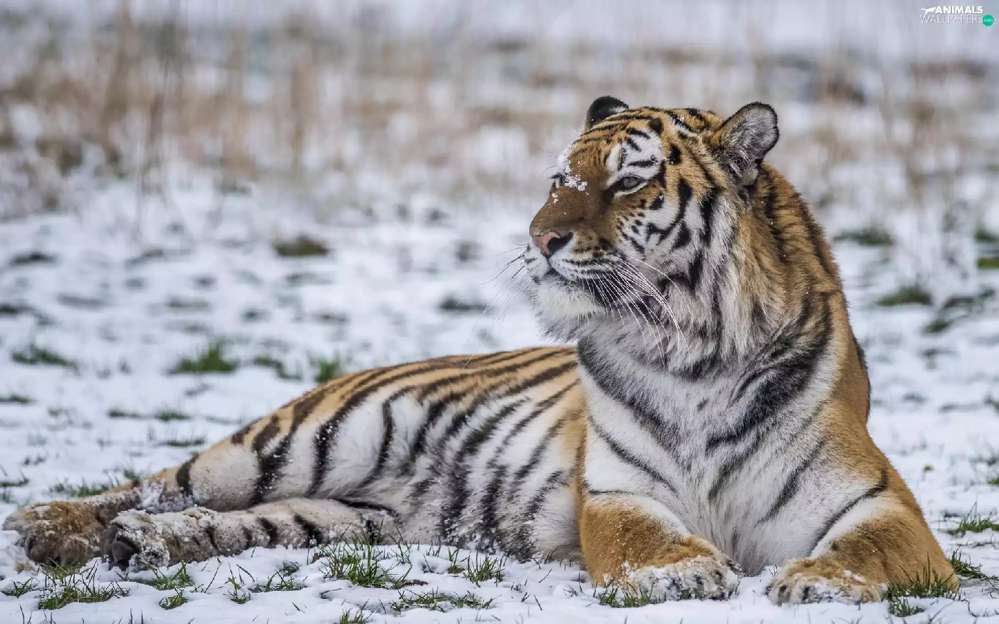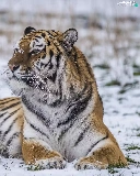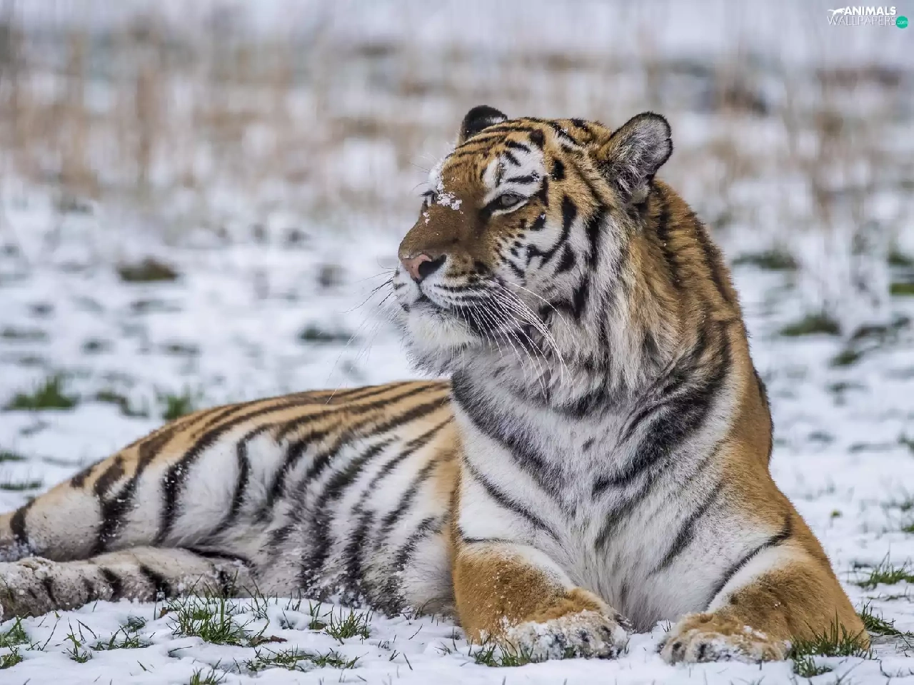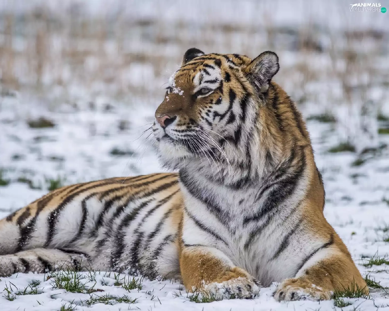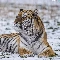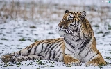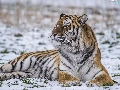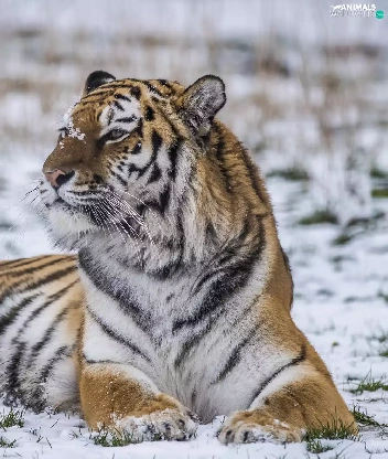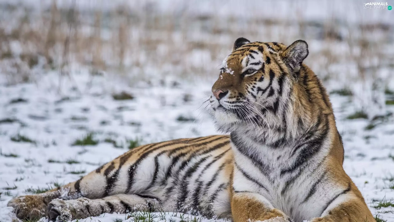lying, snow, winter, tiger