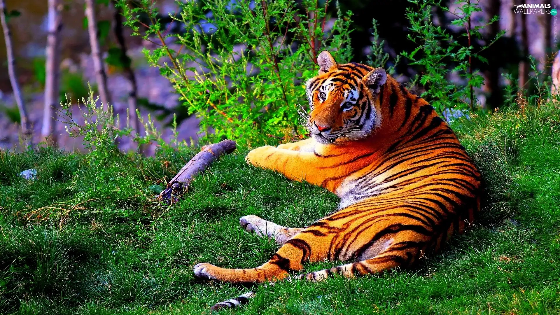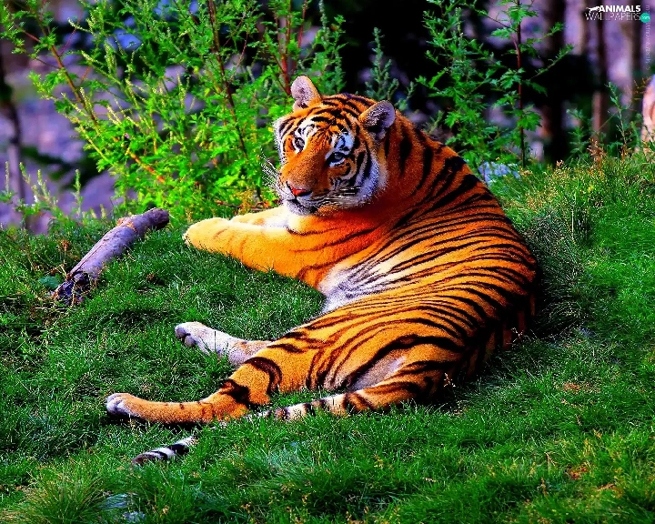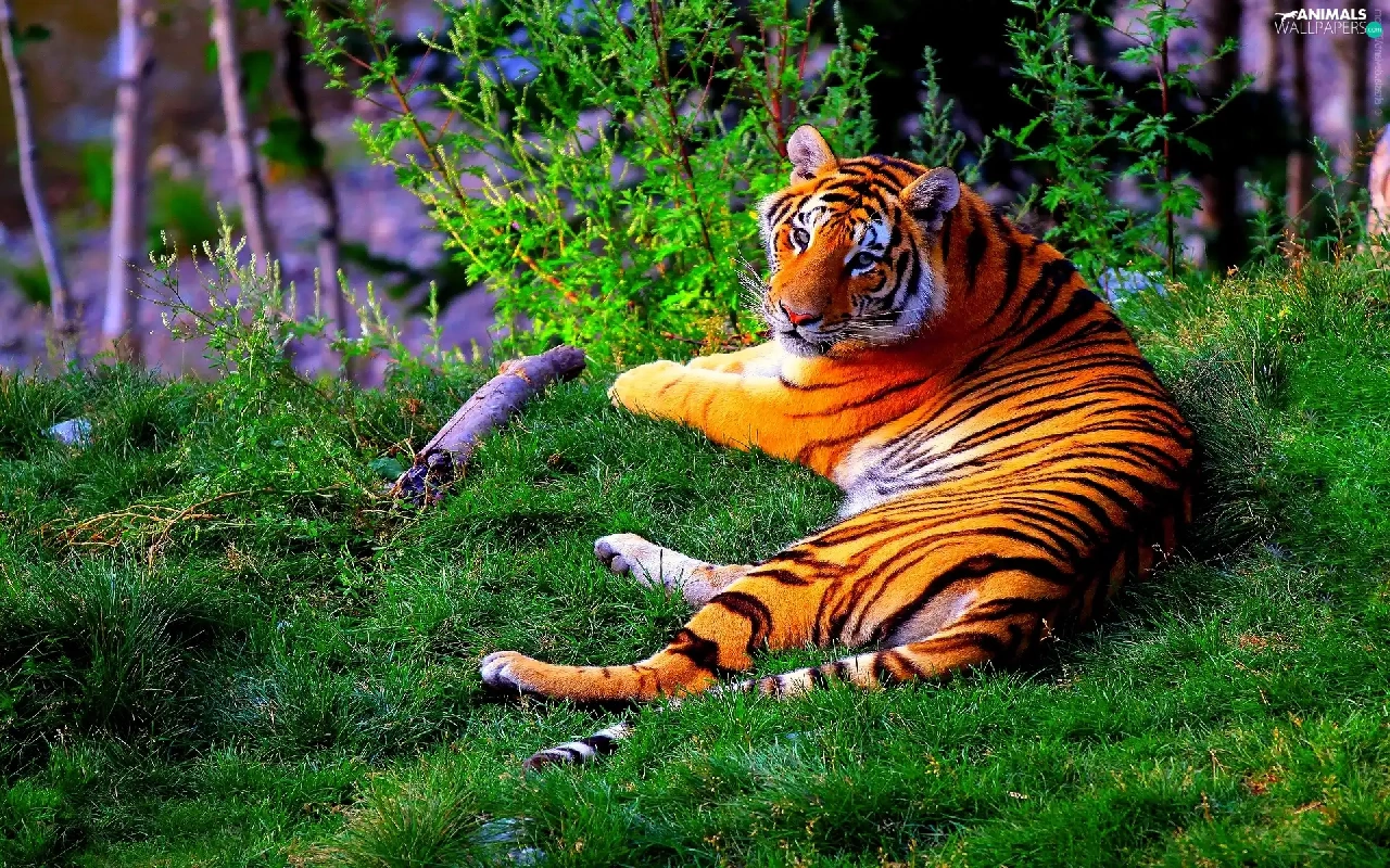 trees, lying, tiger, viewes