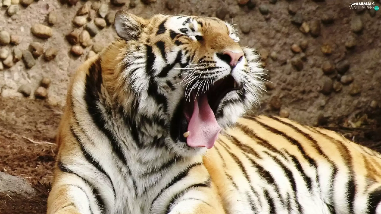 yawning, canines, Tounge, tiger