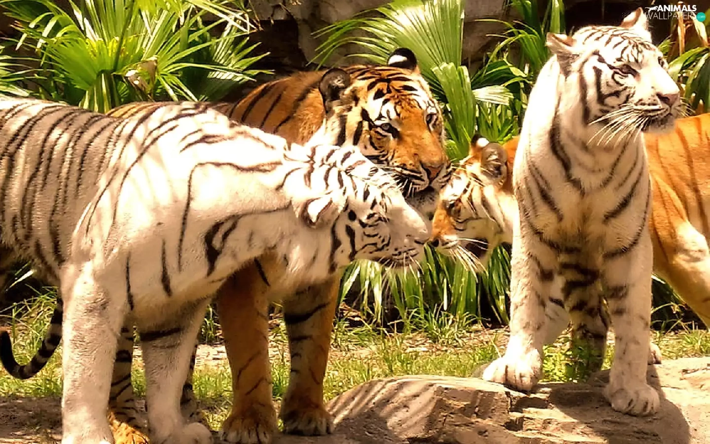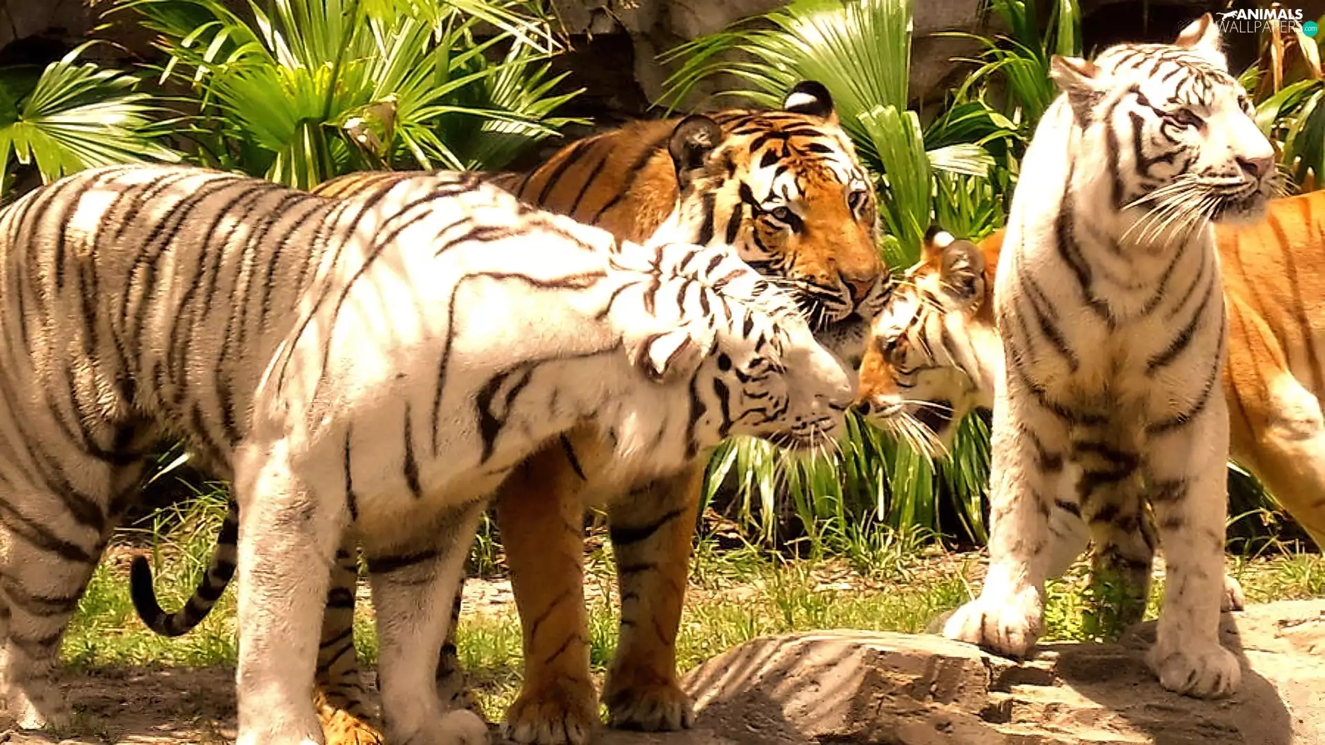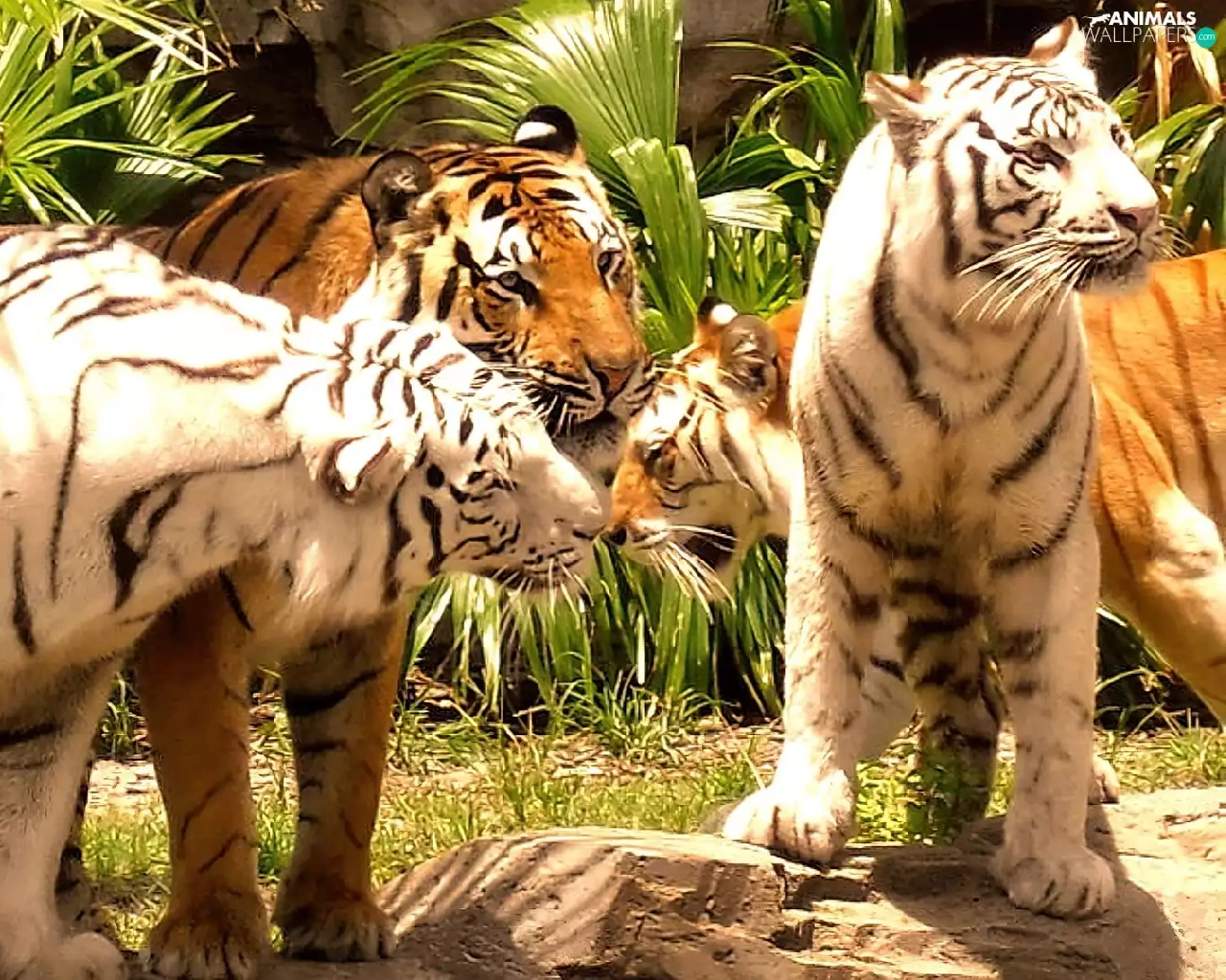 tigers, herd, Adults