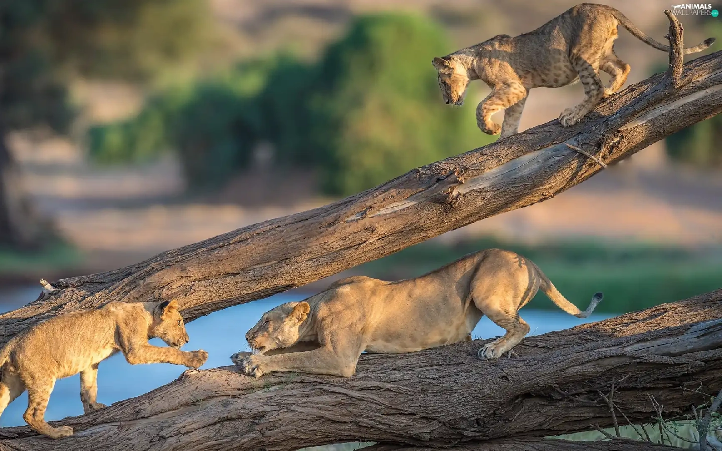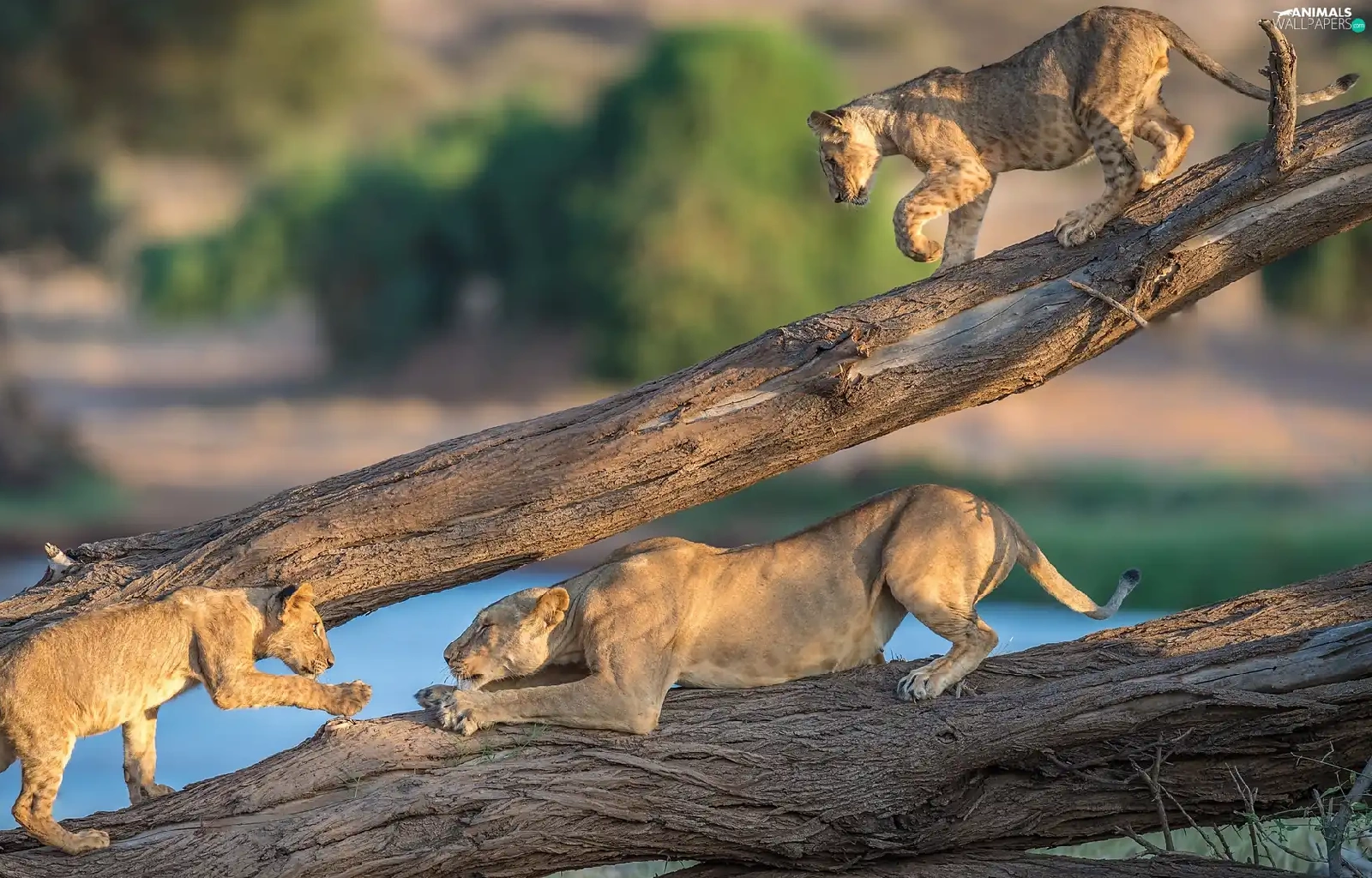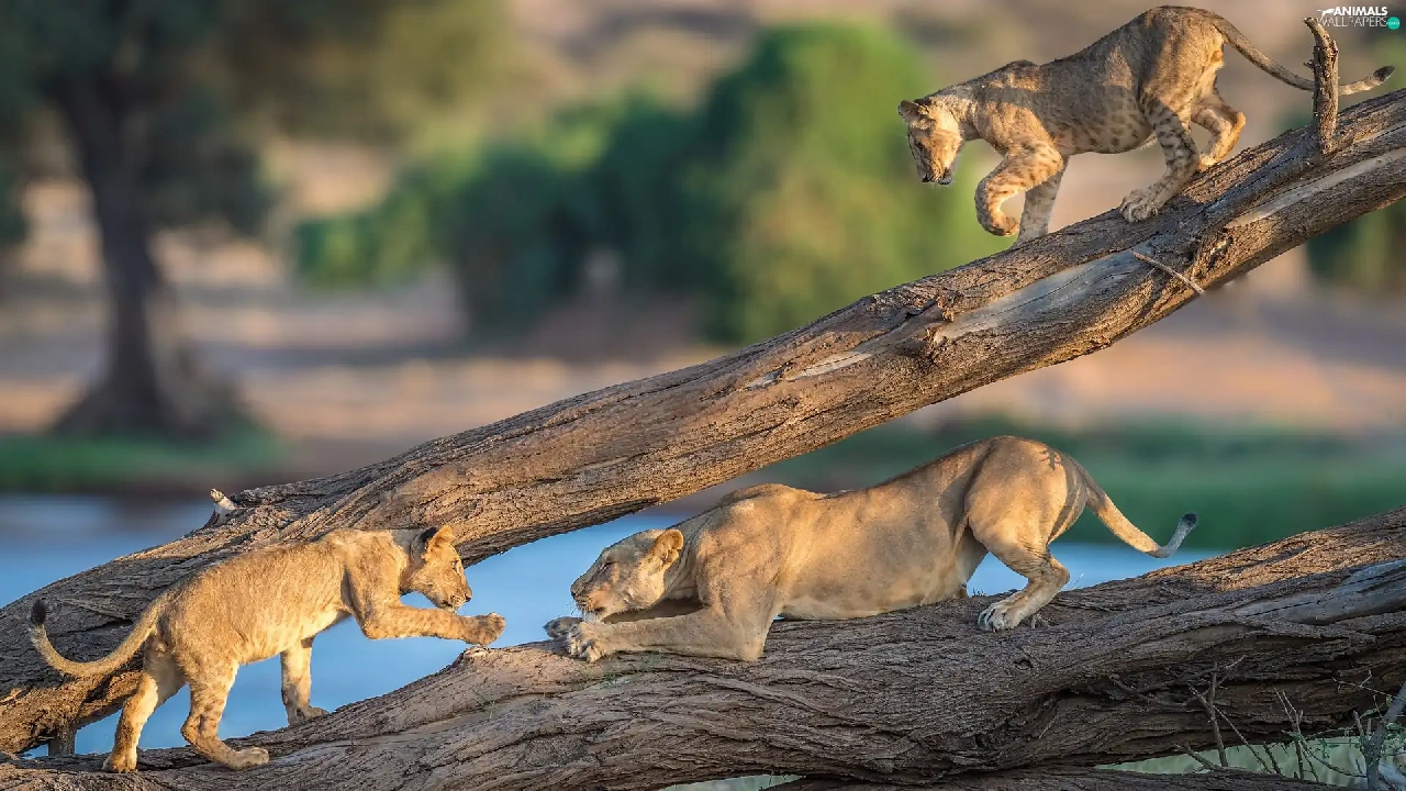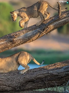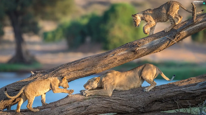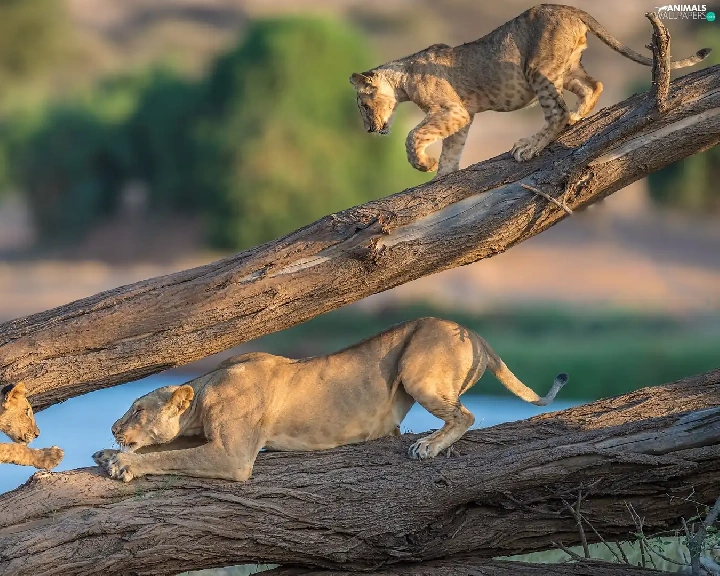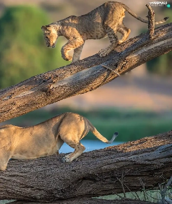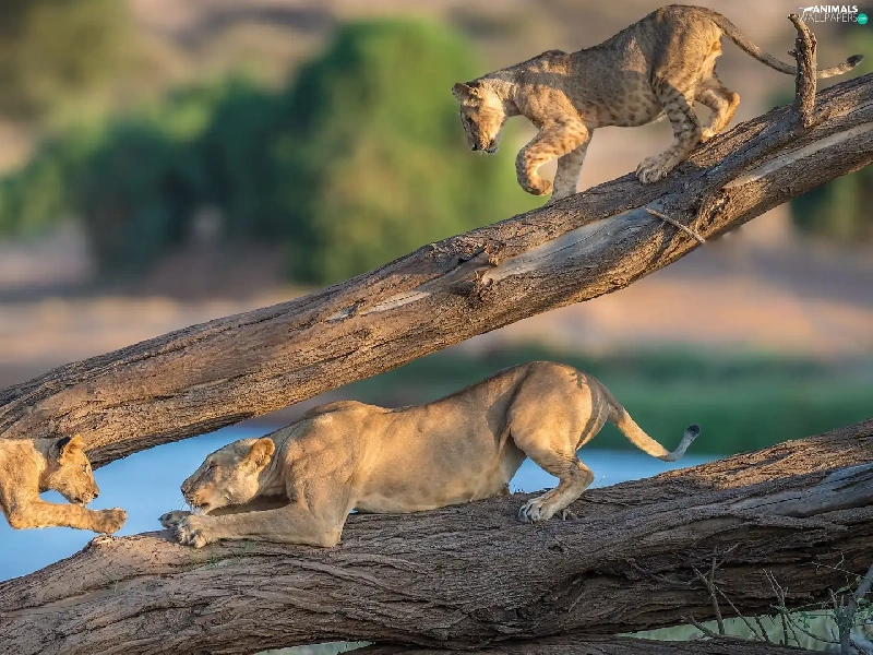 tigers, branches, cats, Lioness, wild