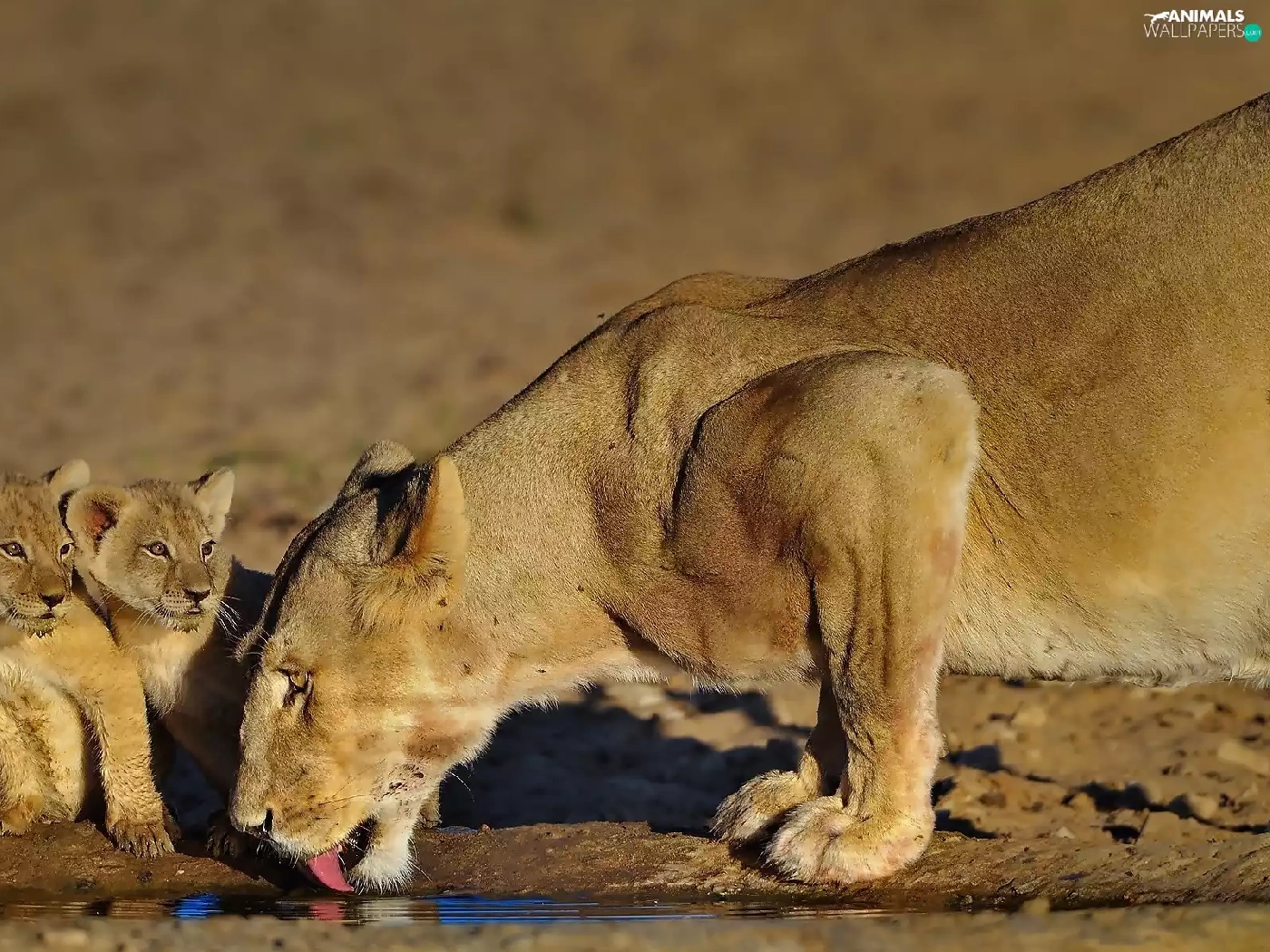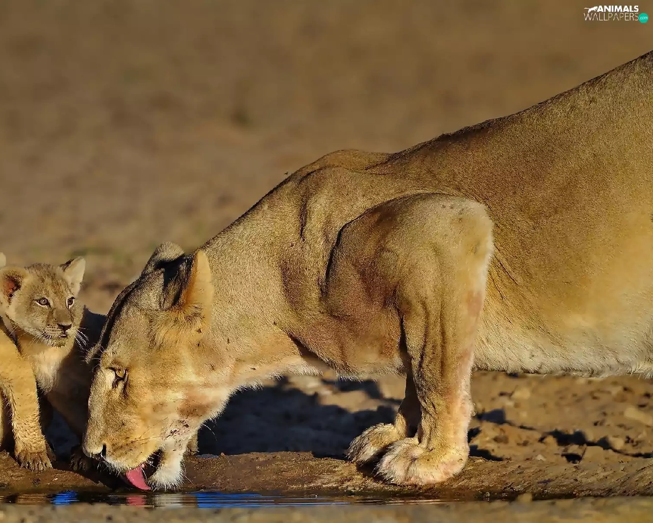 watering place, Lioness, tigers