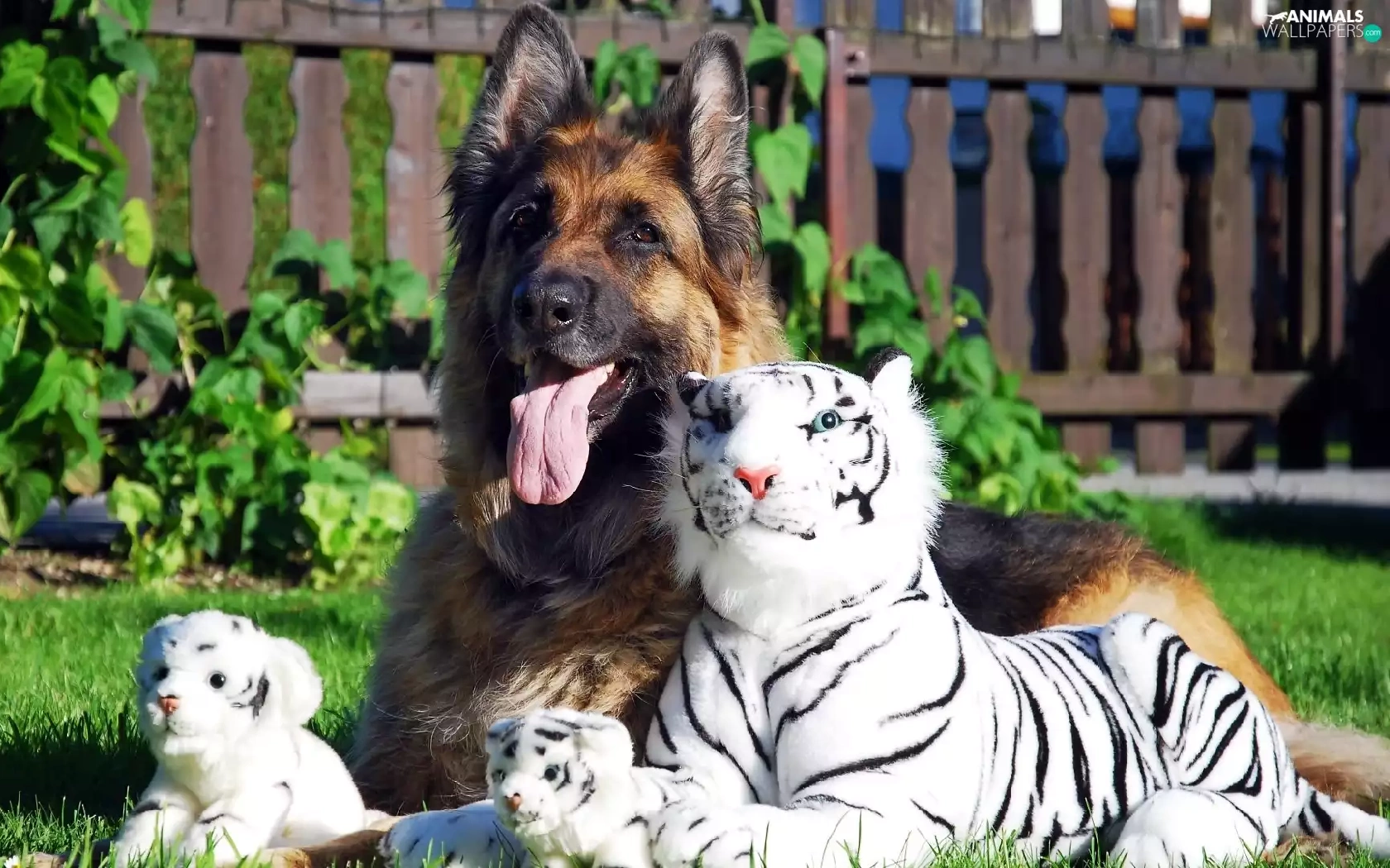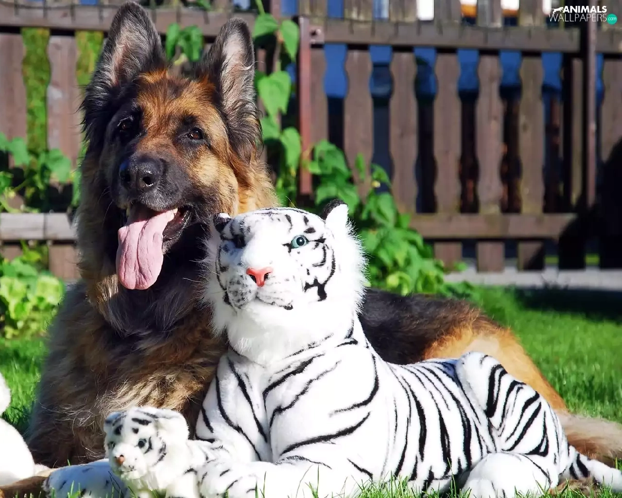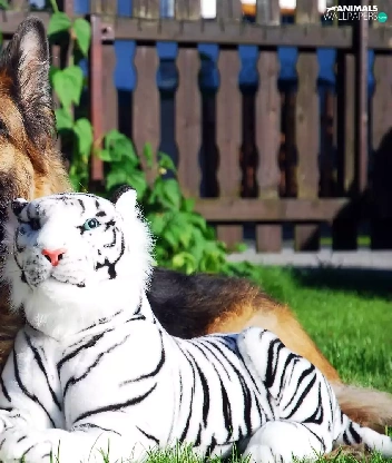 german, dog, White, tigress, toys, sheep-dog