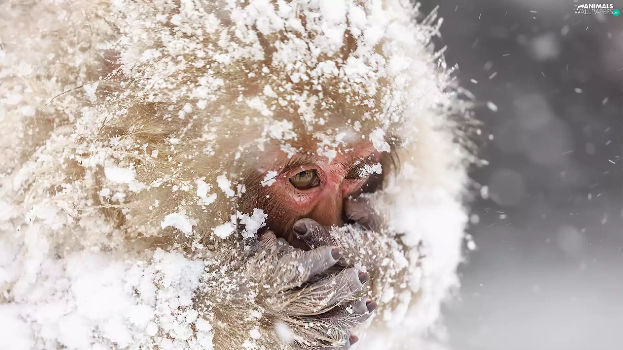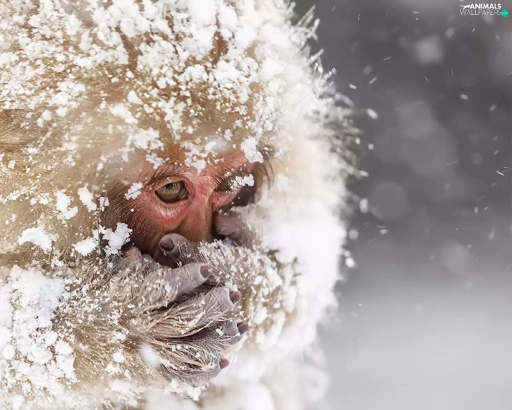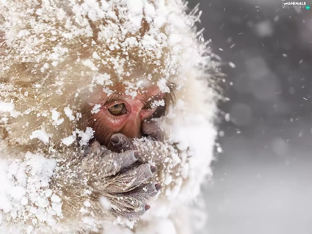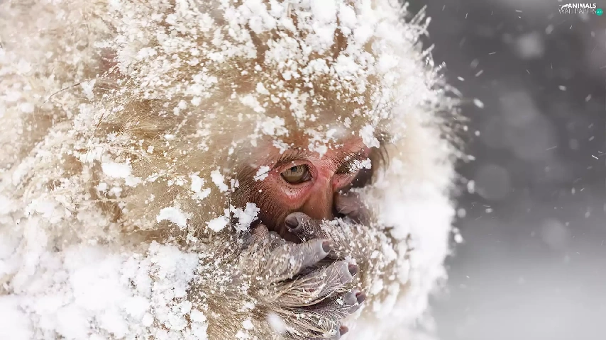 Monkey, winter, snow, toque
