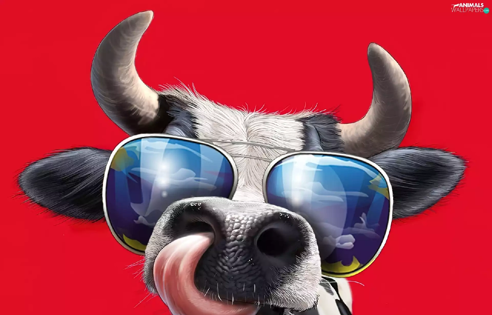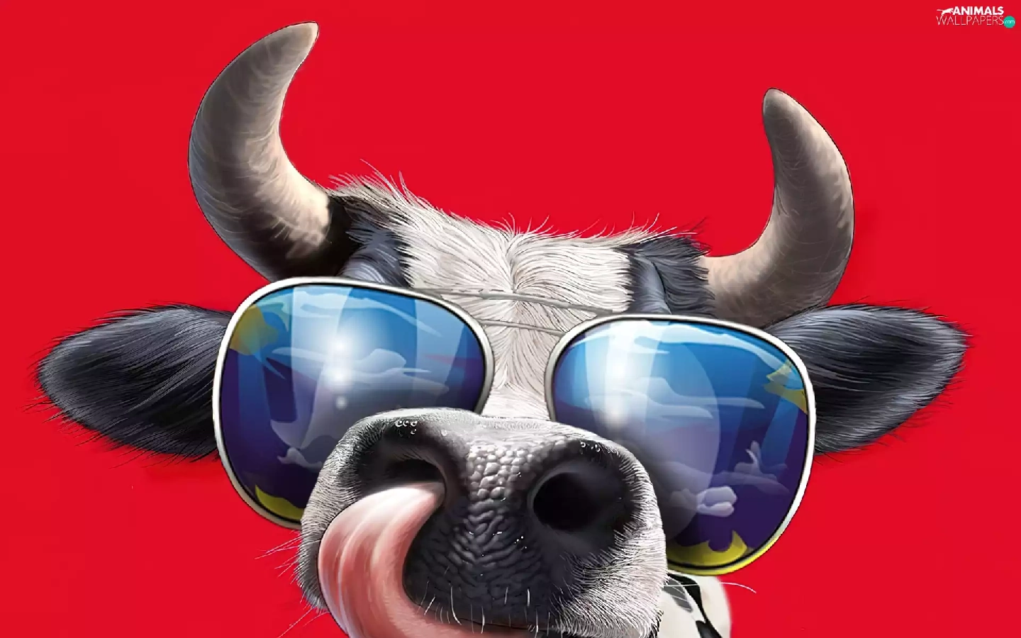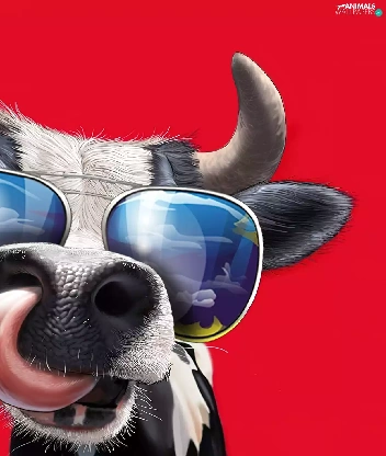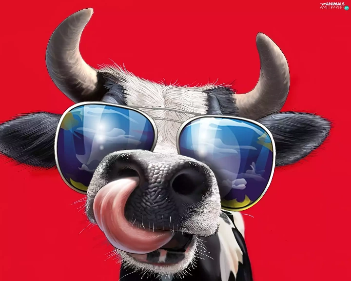 Cow, Glasses, horns, Tounge