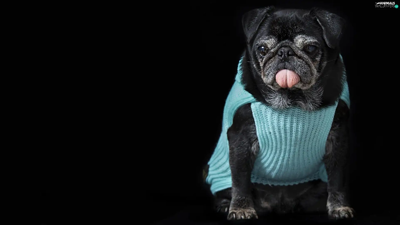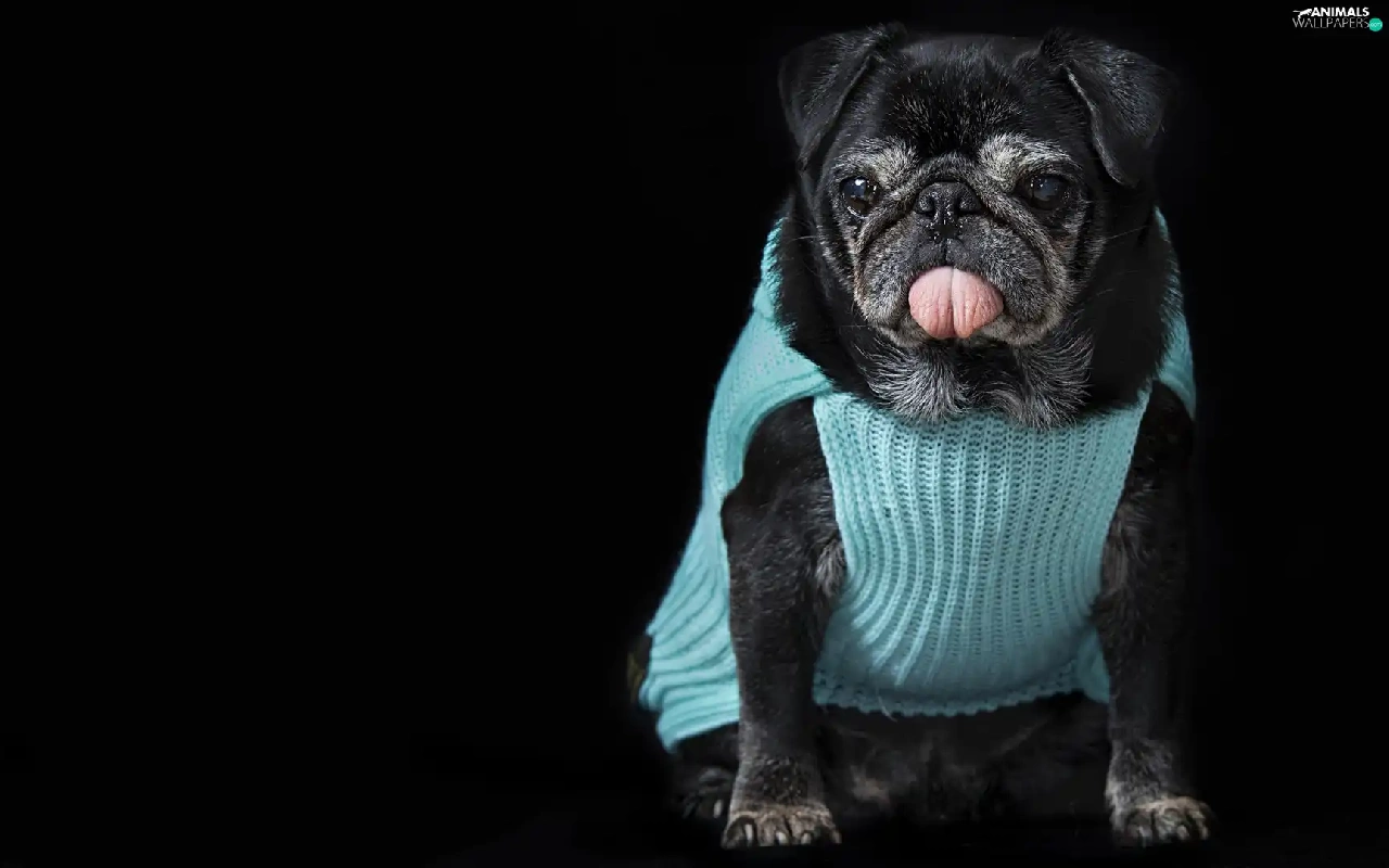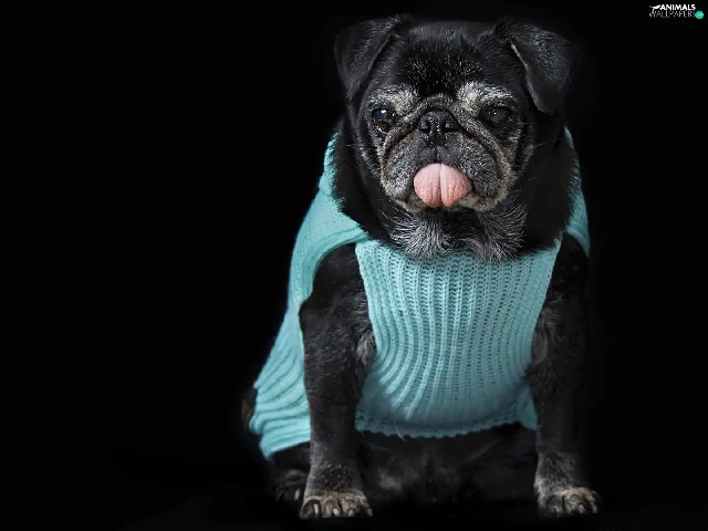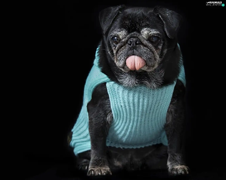 dog, clothes, Tounge, pug