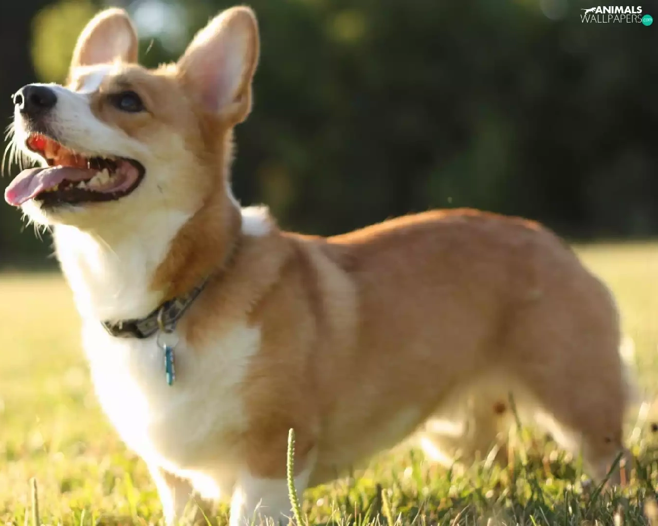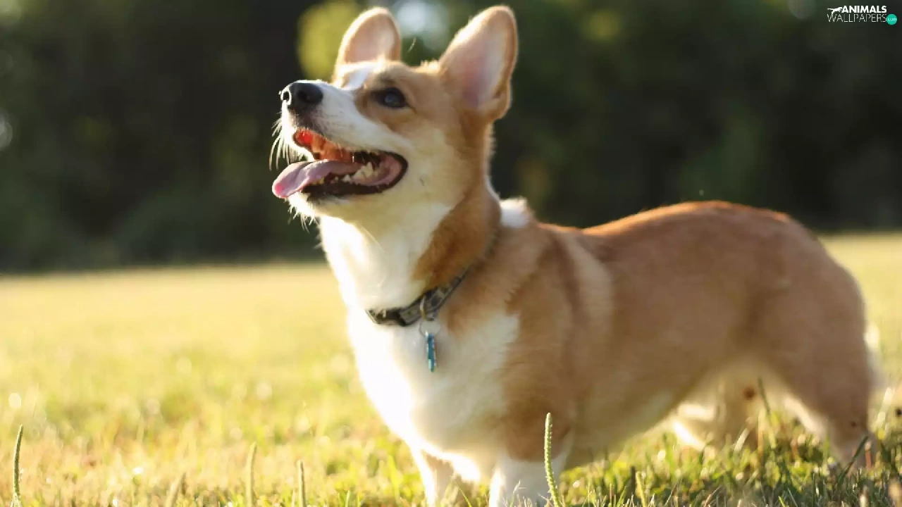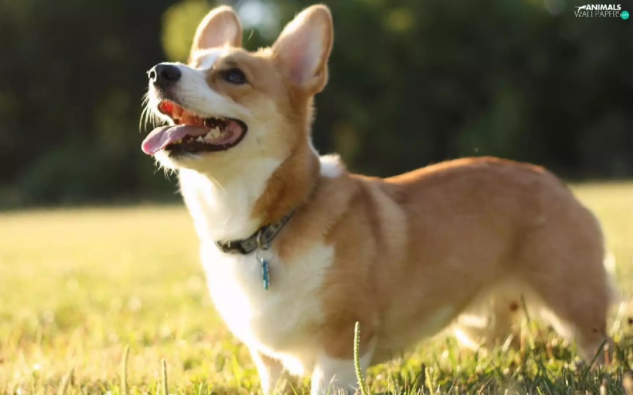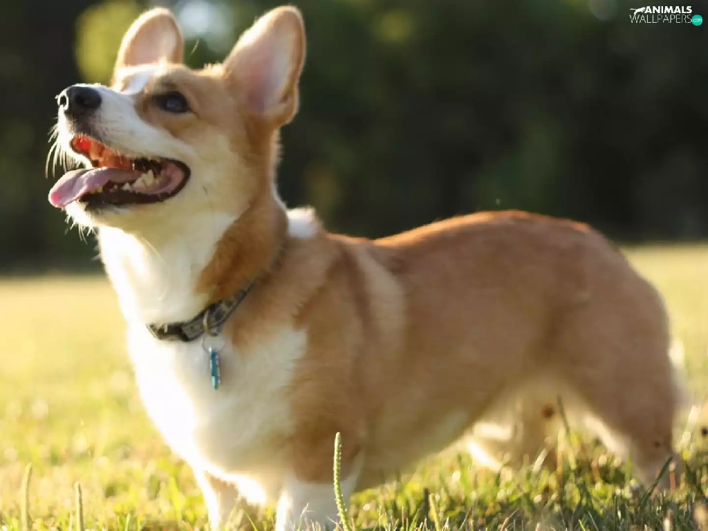 doggy, grass, Corgi, Tounge