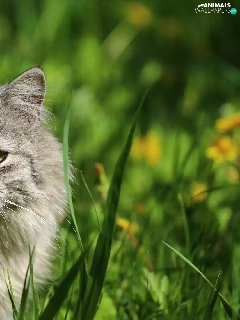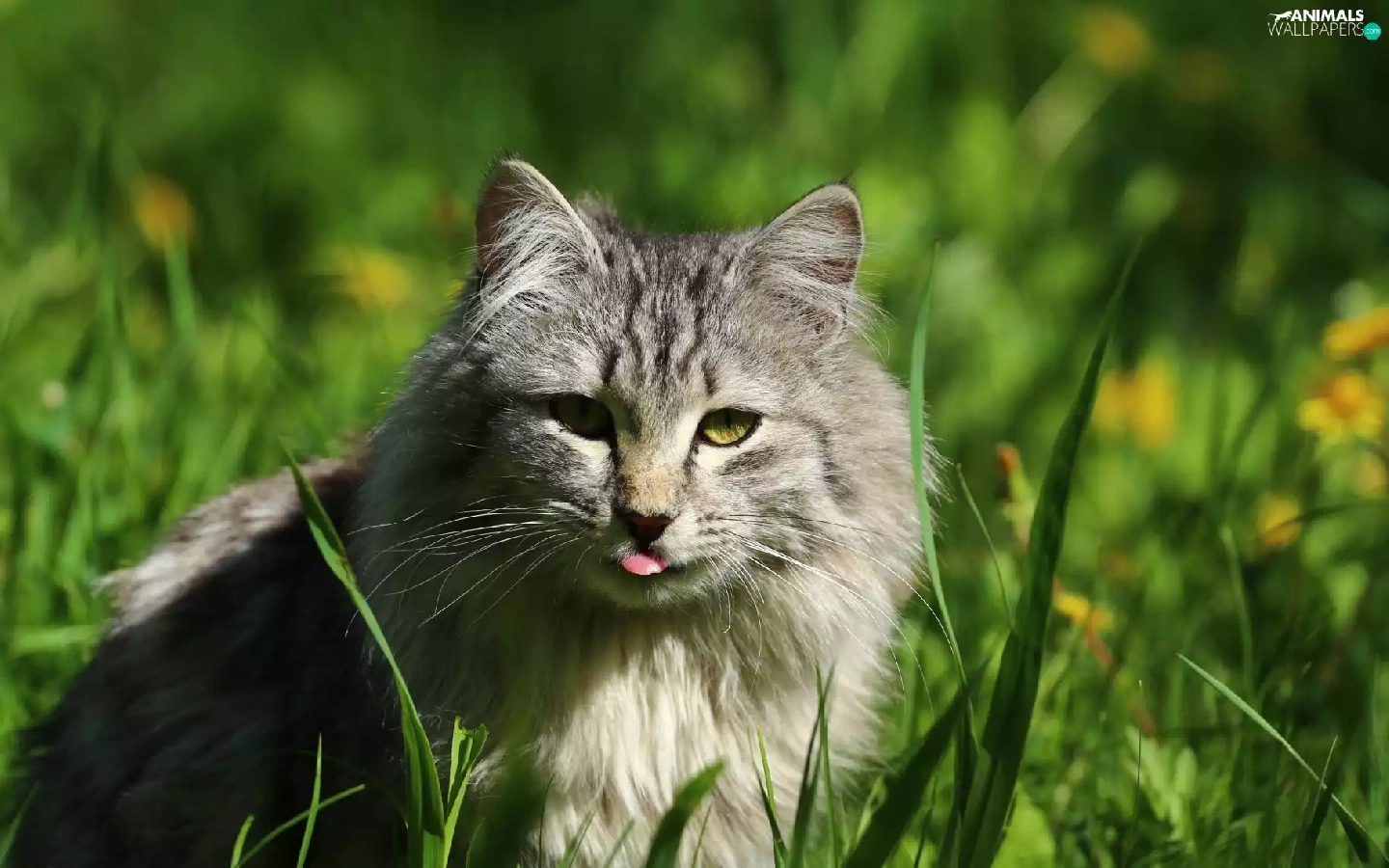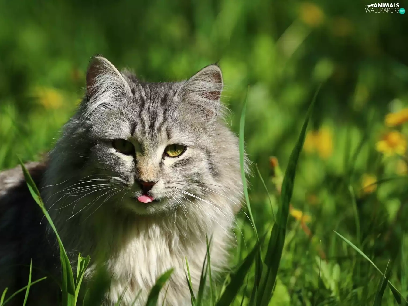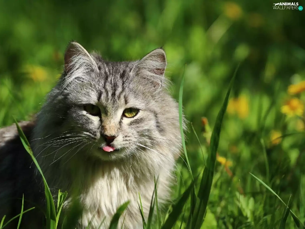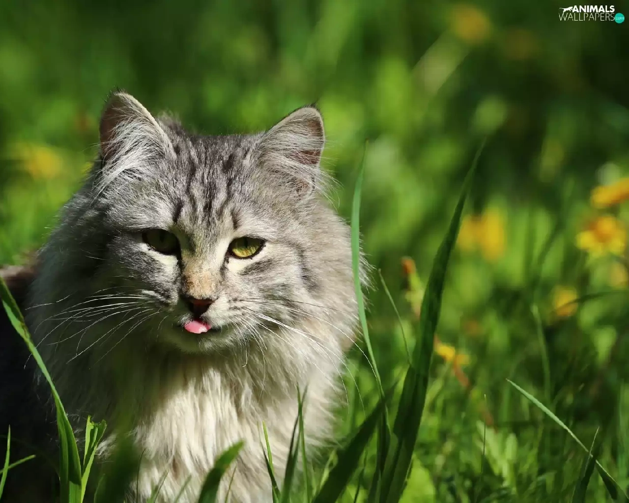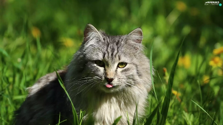 Tounge, cat, grass