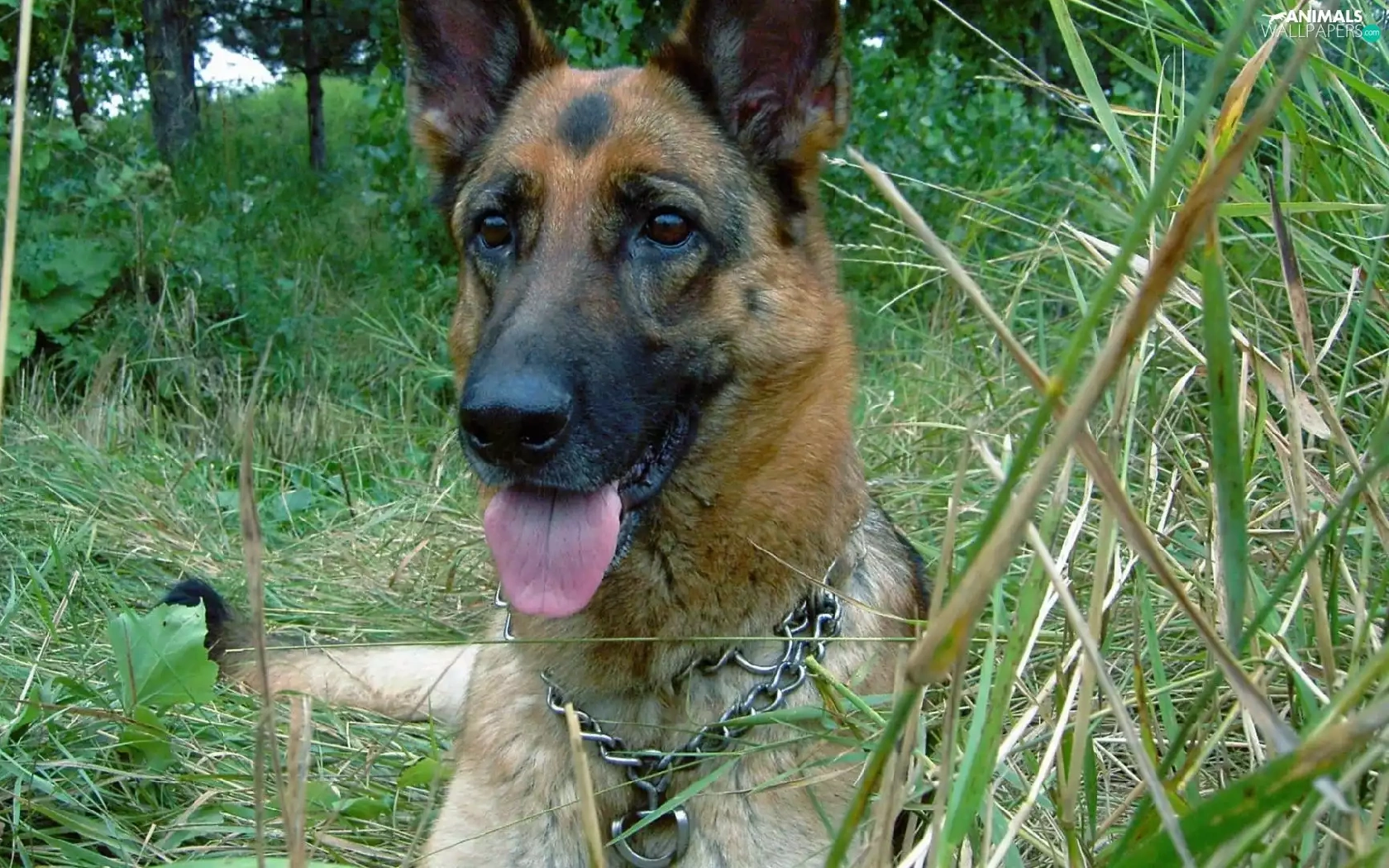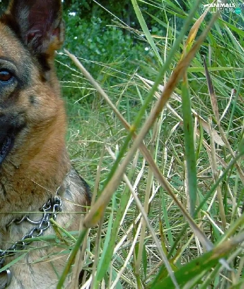 dog, Tounge, grass, German Shepherd