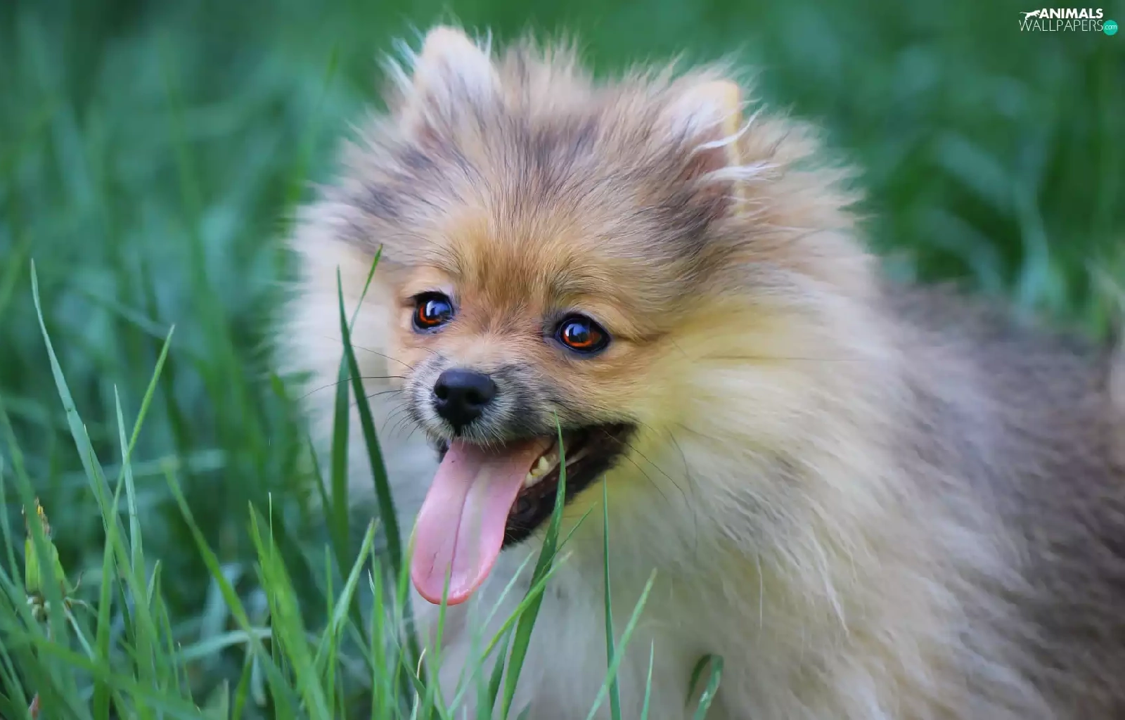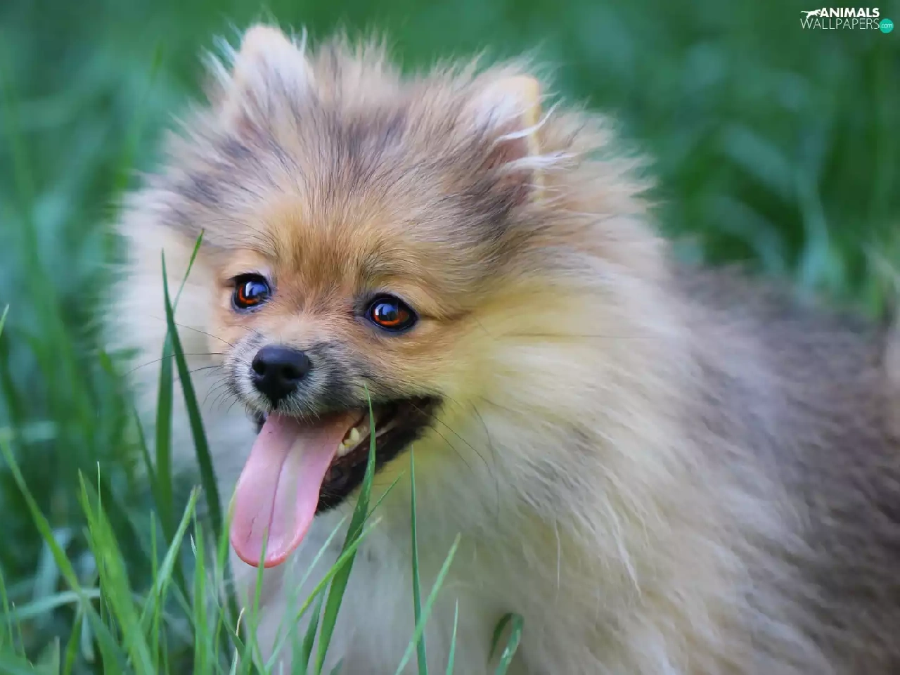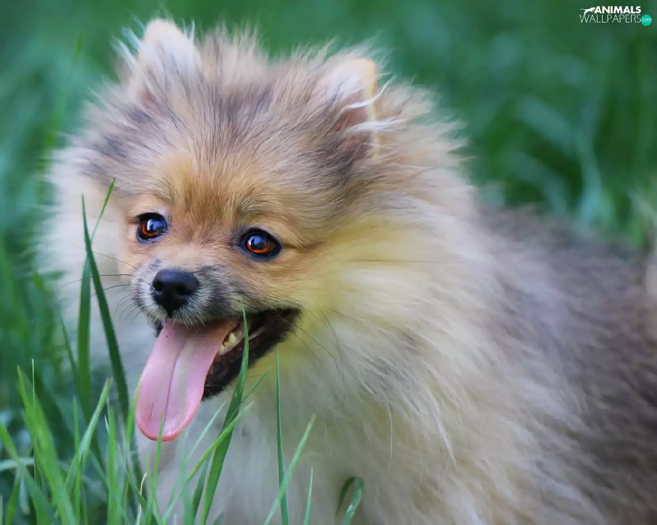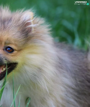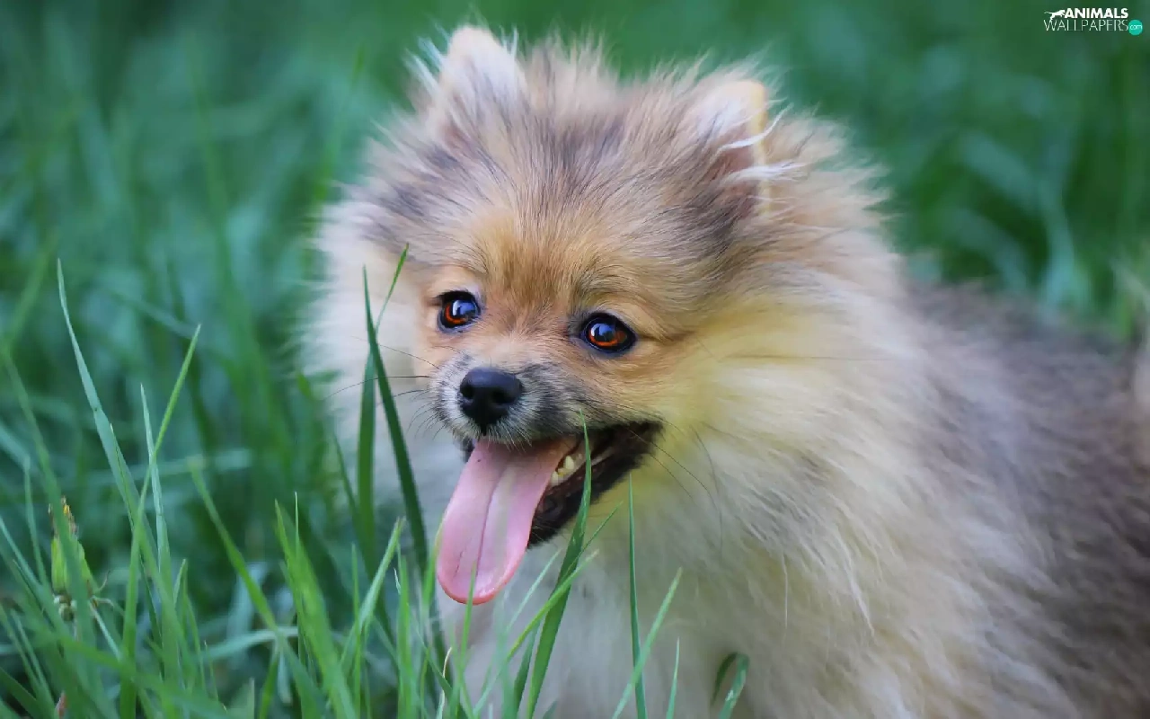 dog, Tounge, grass, German Spitz