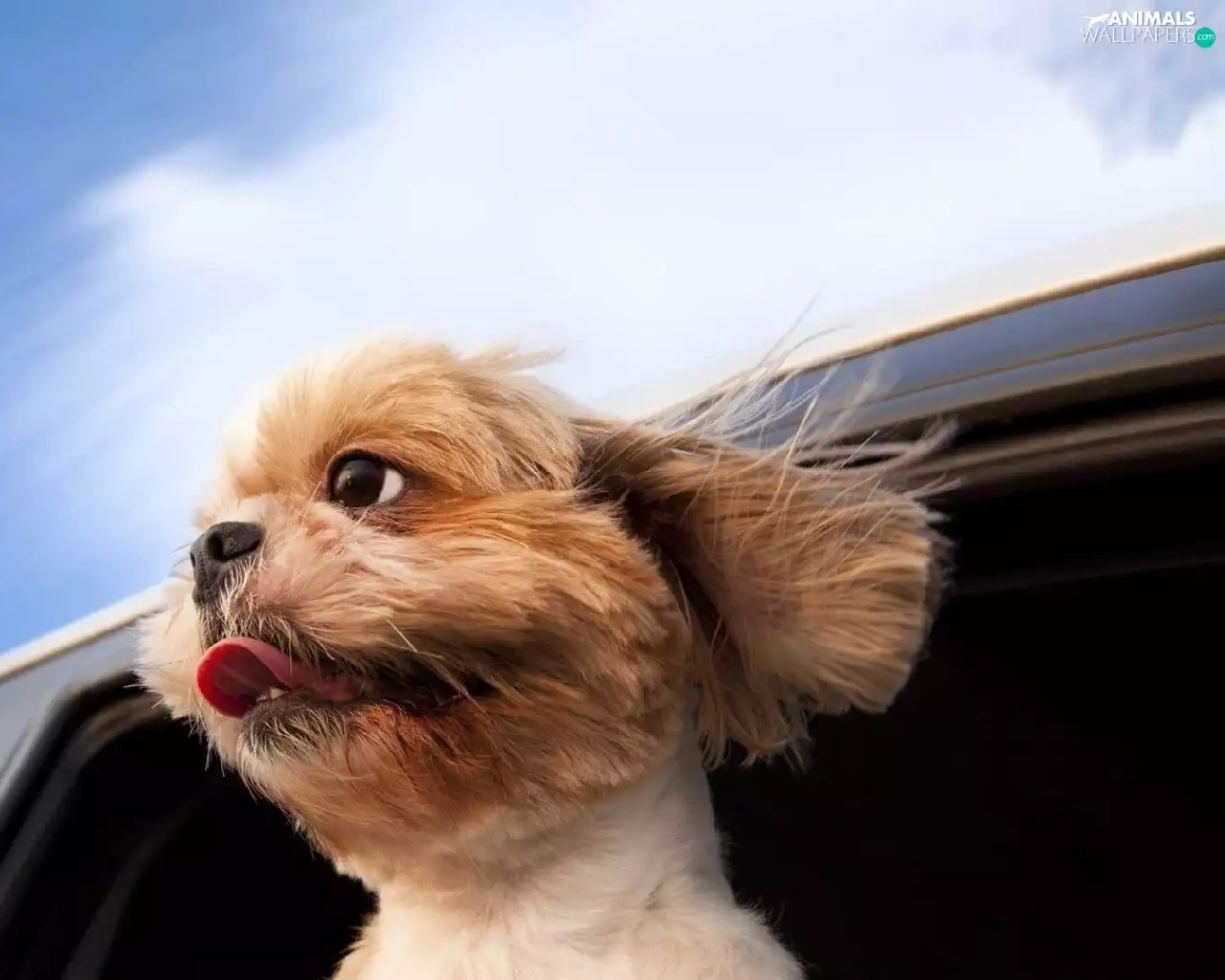 Window, dog, mouth, Tounge, car, Open