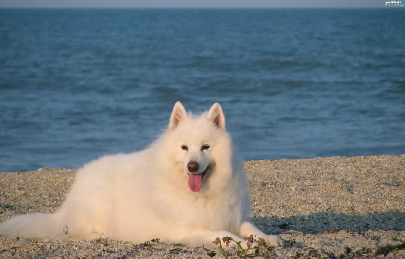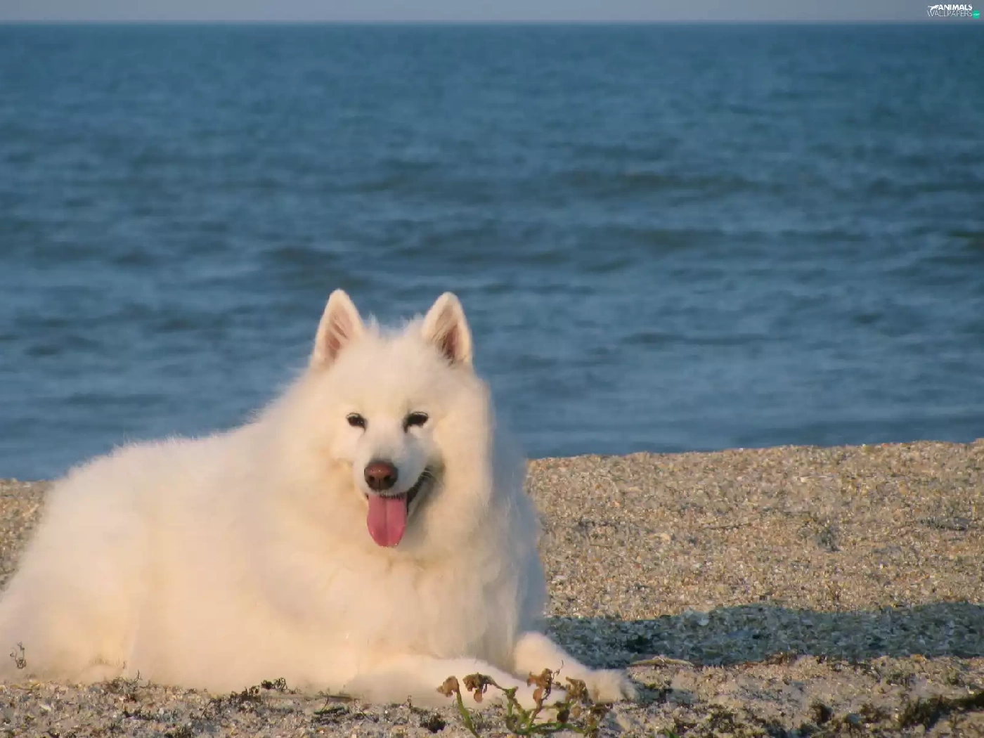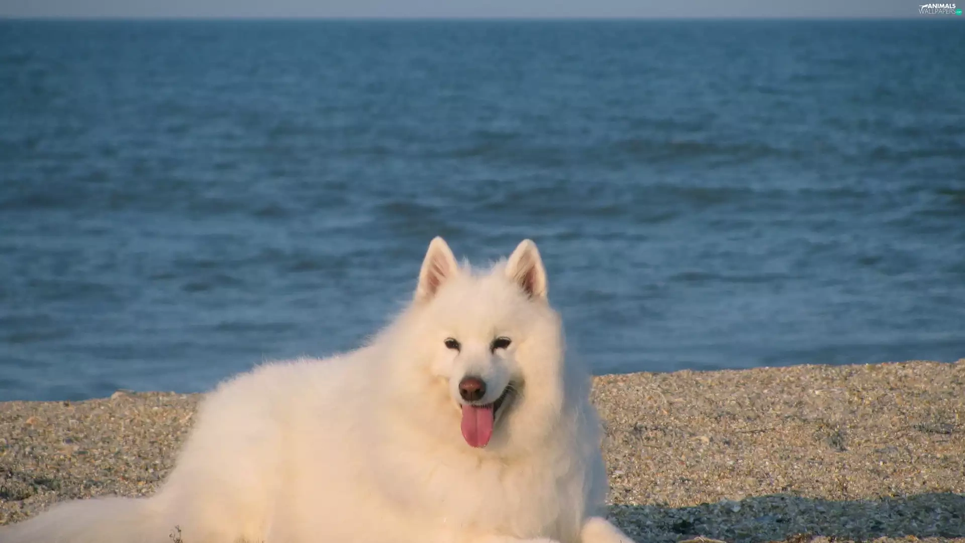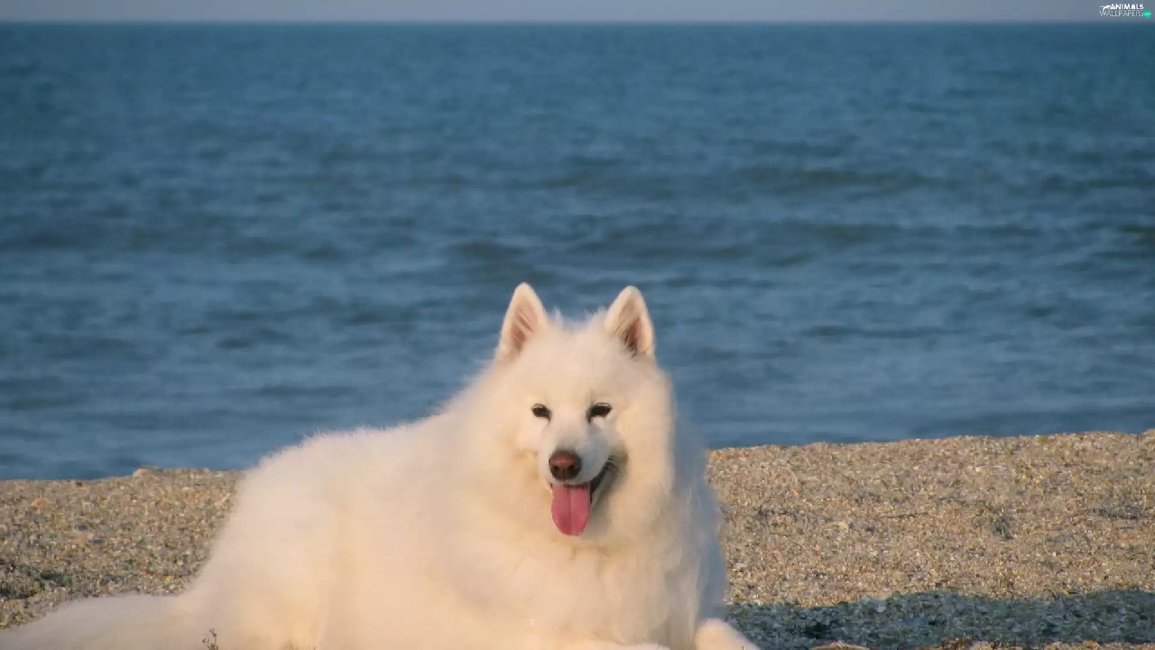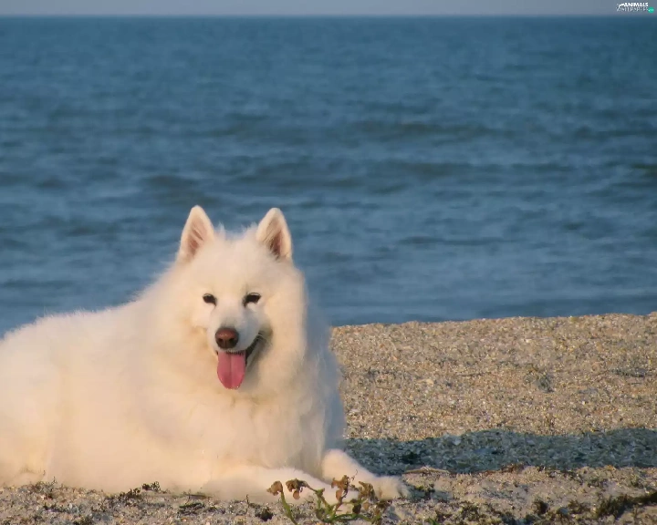 Samojed, Blue, water, Tounge