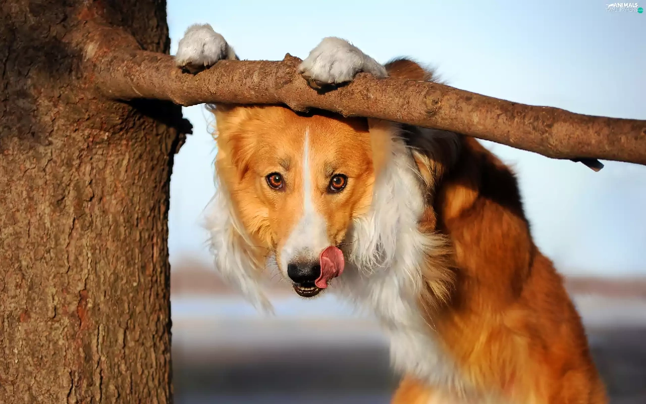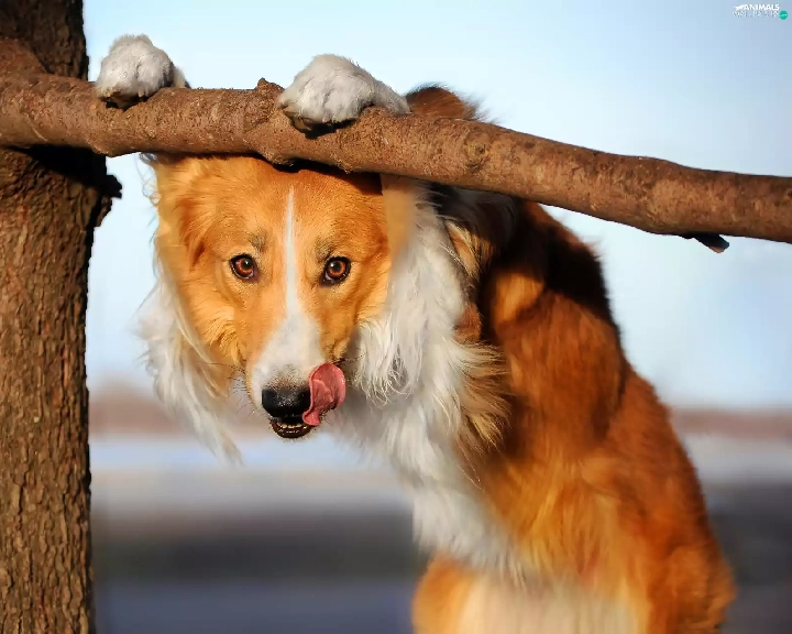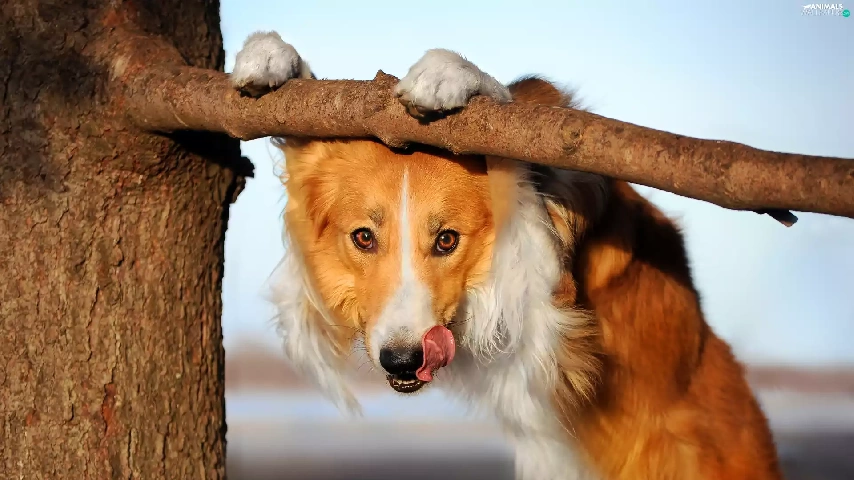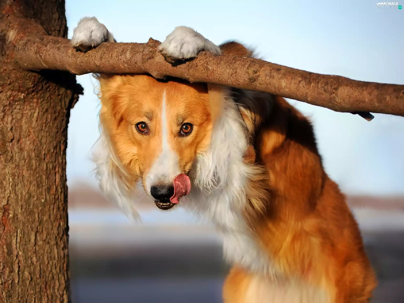 dog, Tounge, trees, Border Collie