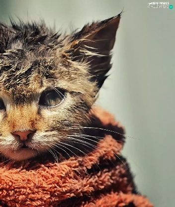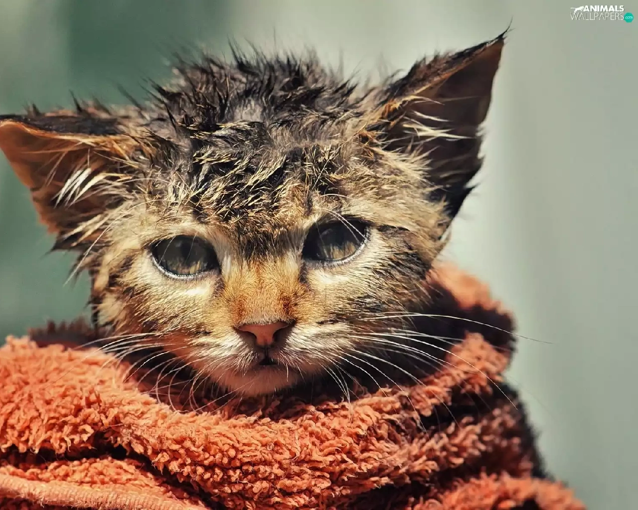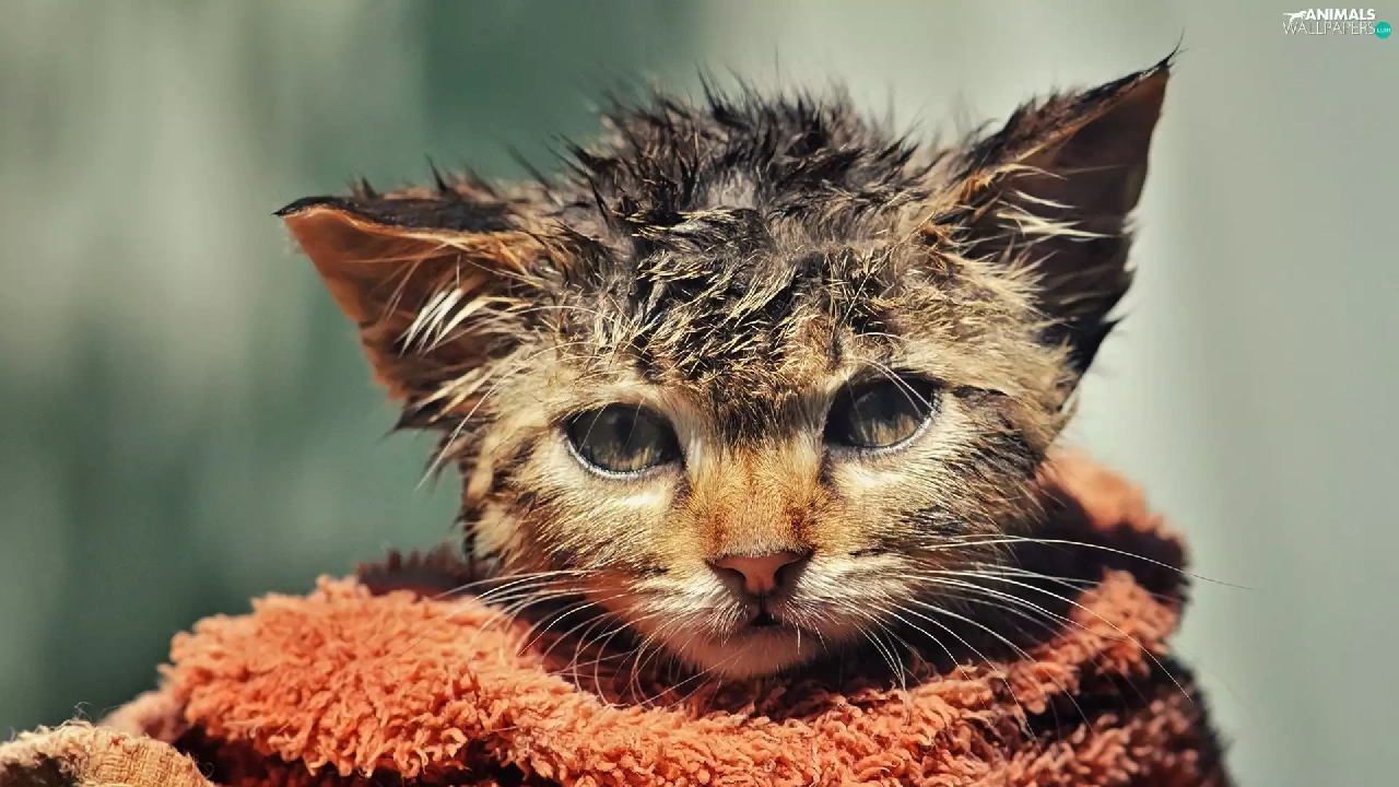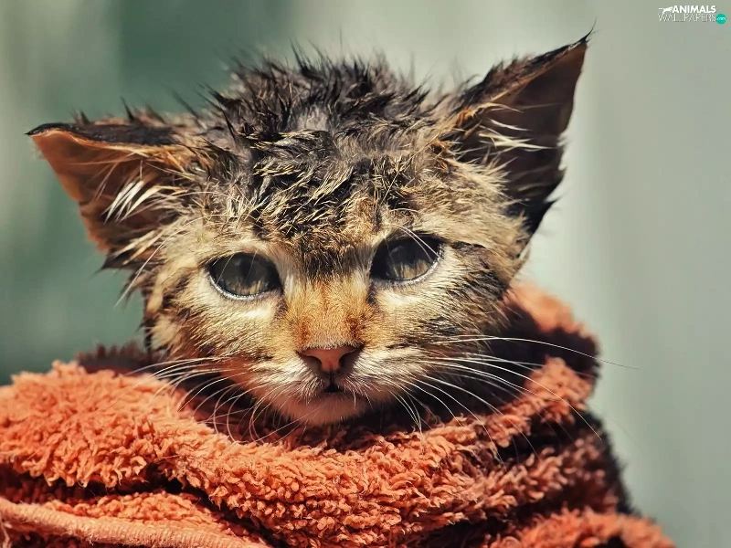 Towel, wet, kitten