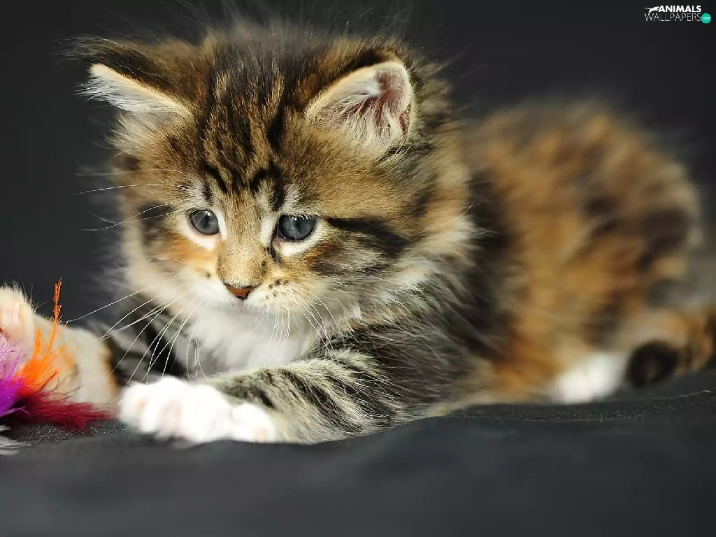 Maine Coon, kitten, toy