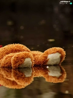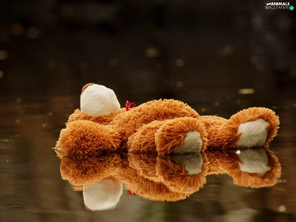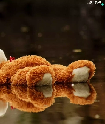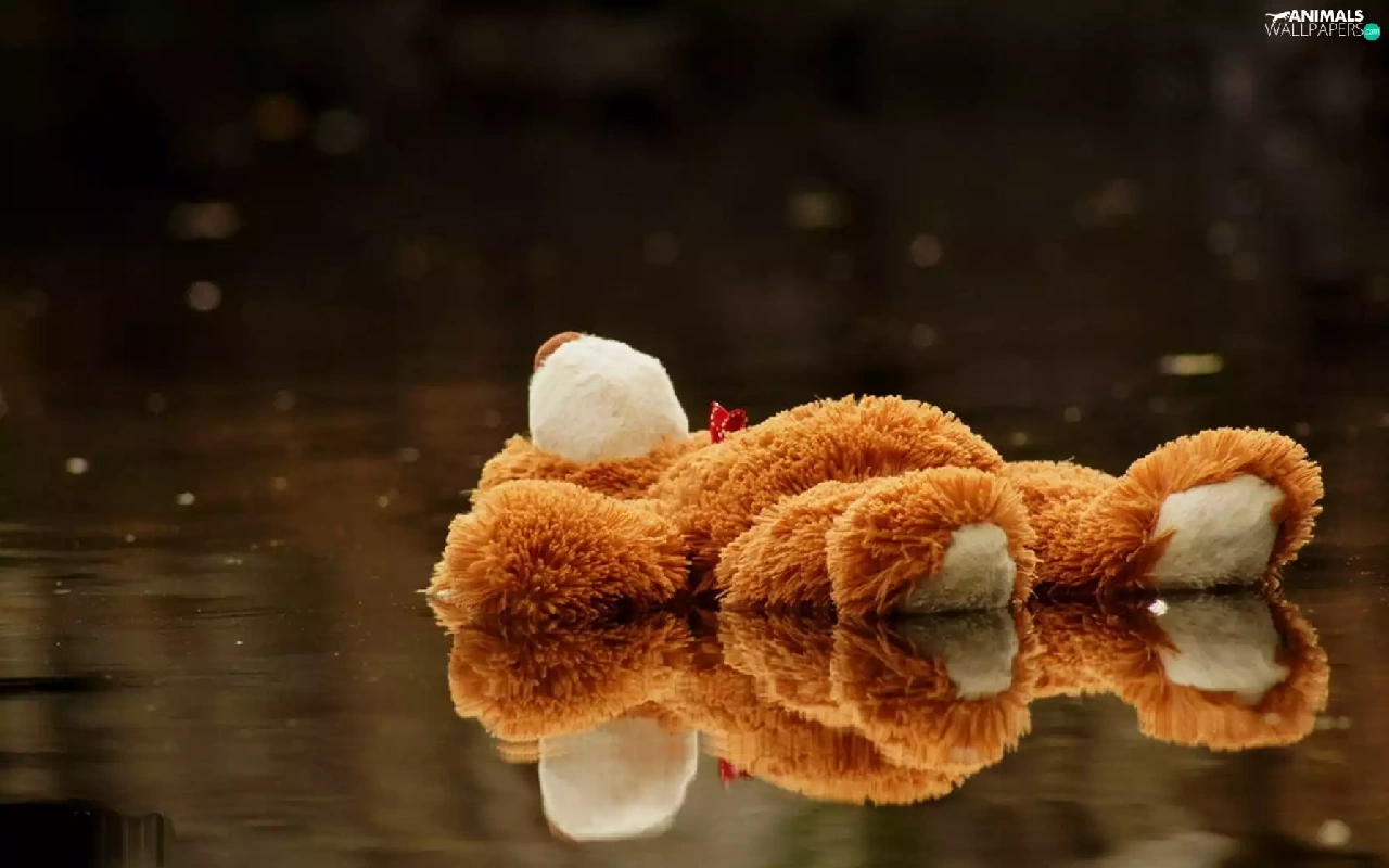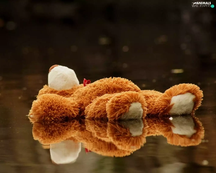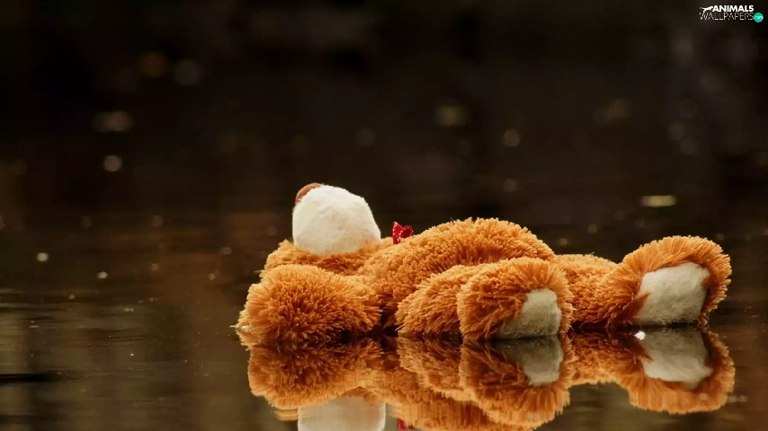 Plush, toy, puddle, teddy bear