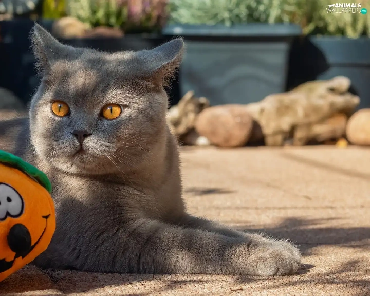 toy, cat, pumpkin