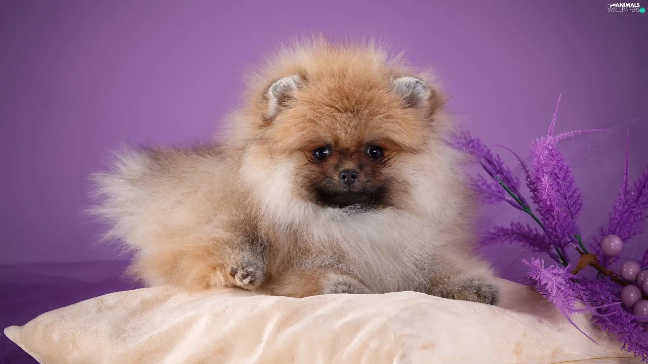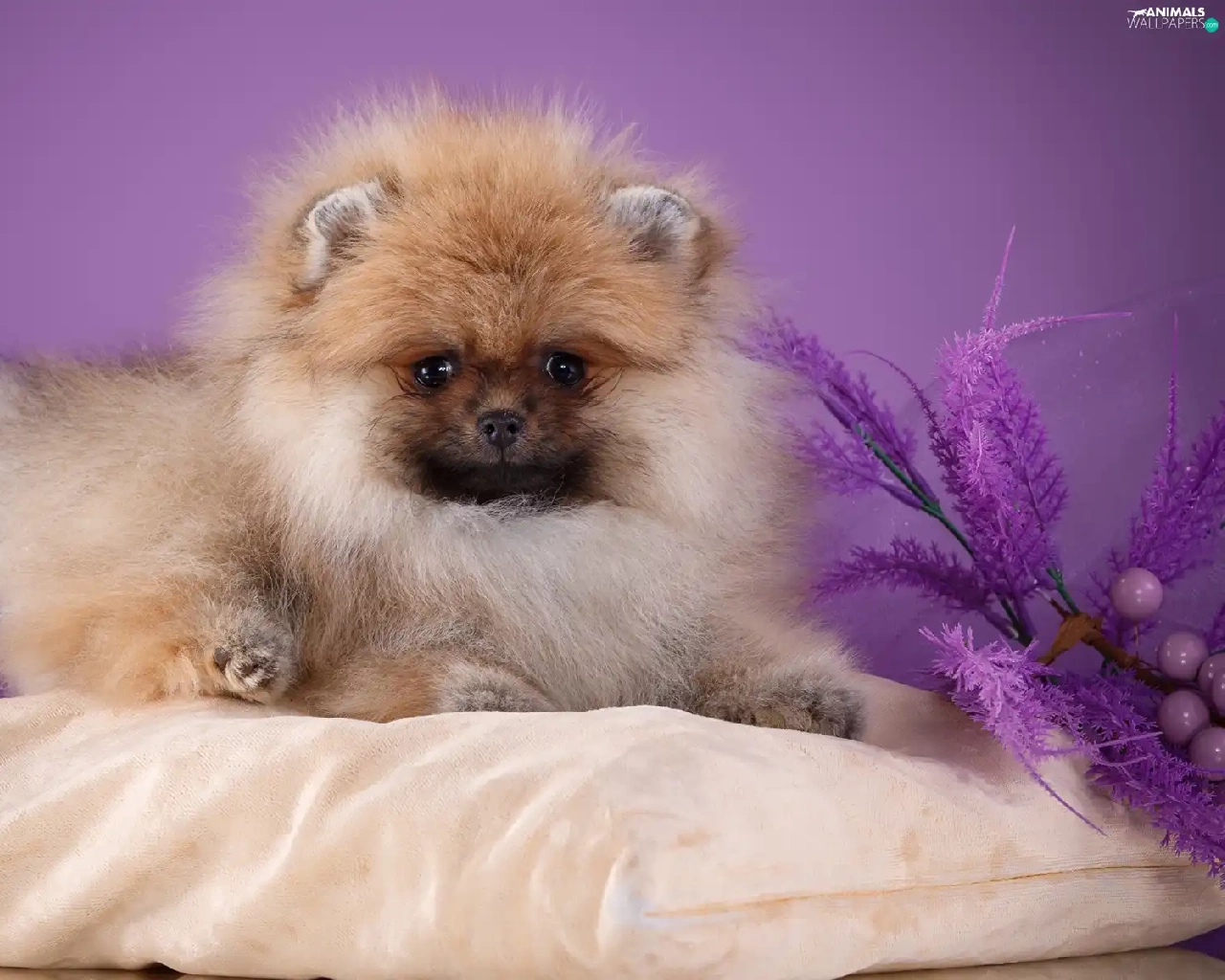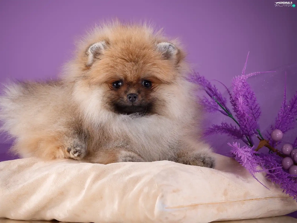 dog, Toy Spitz, Pillow, fluffy