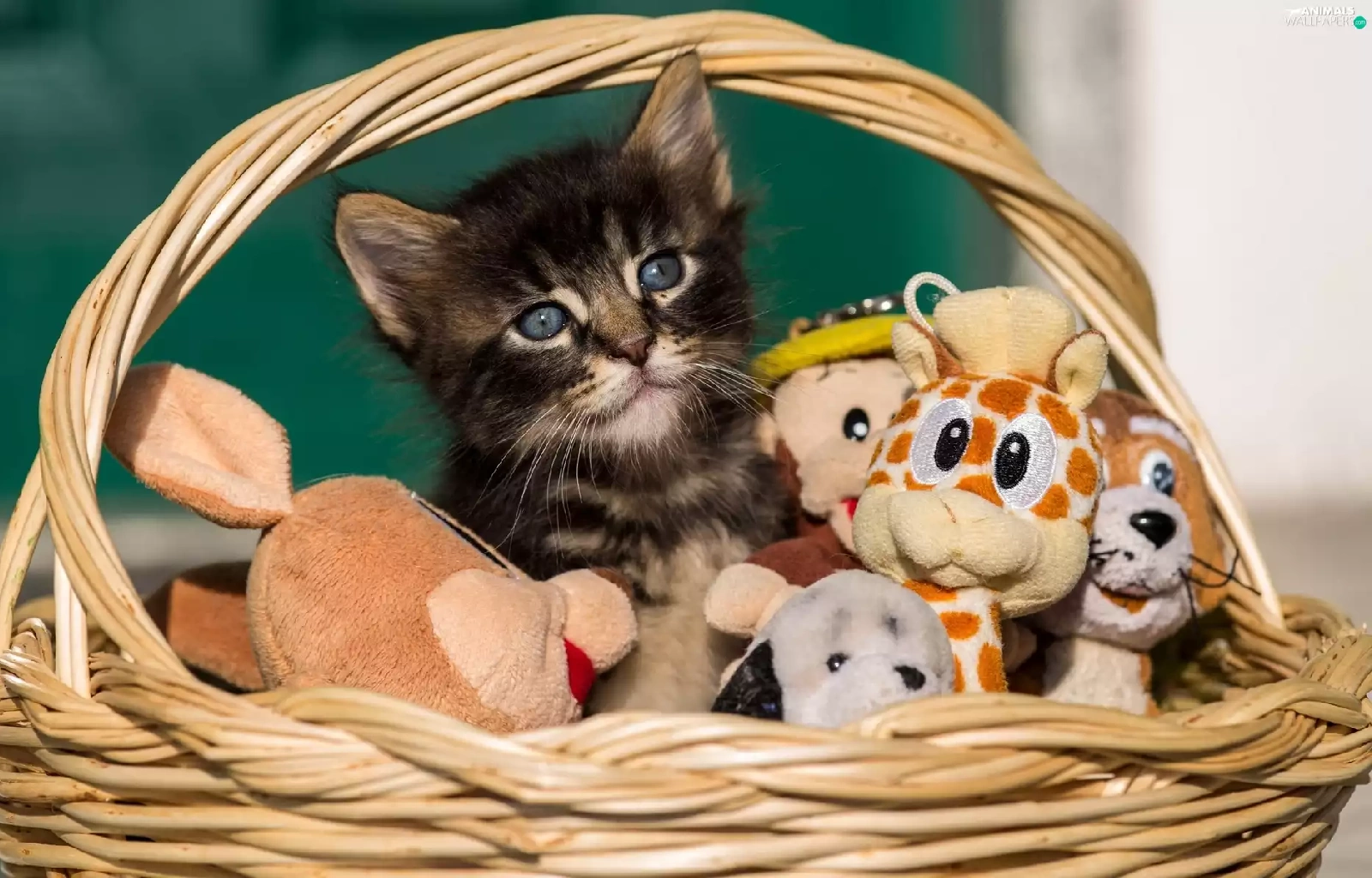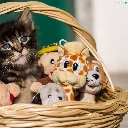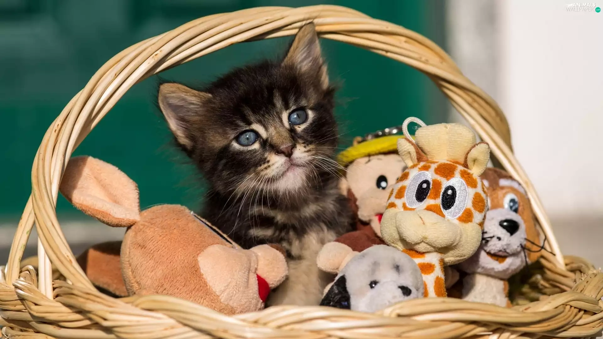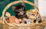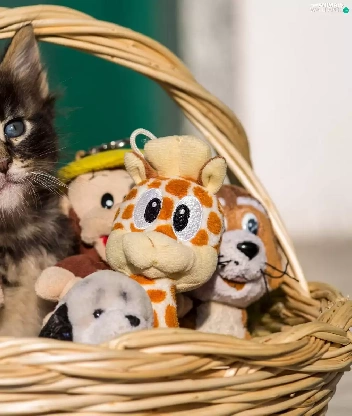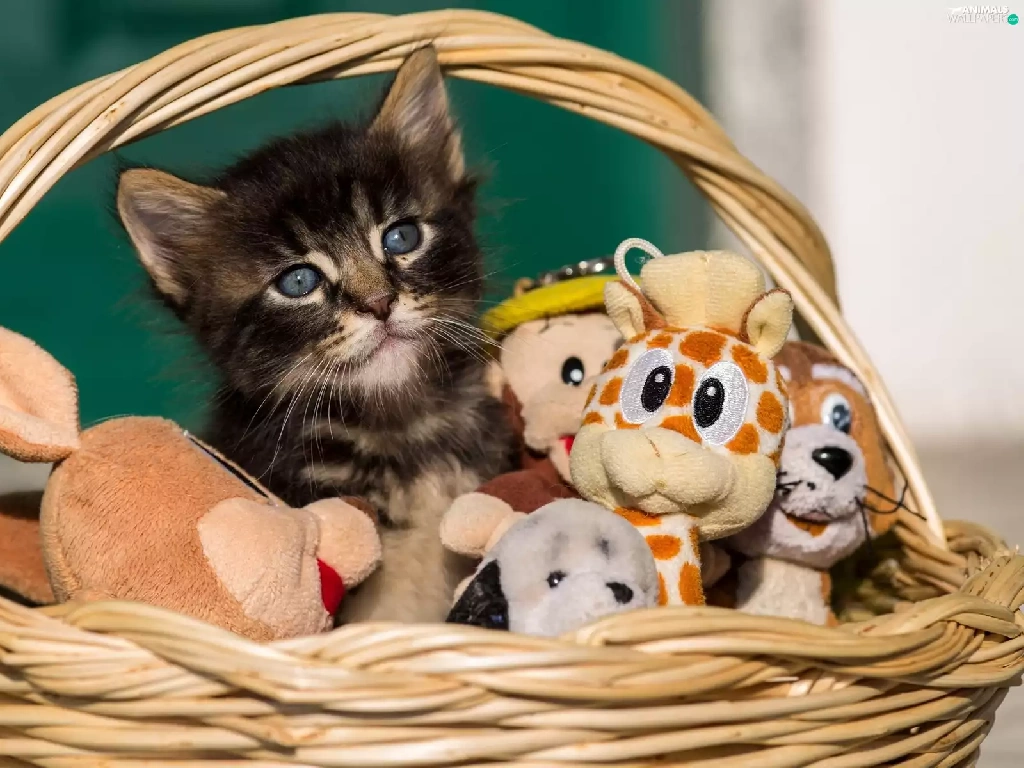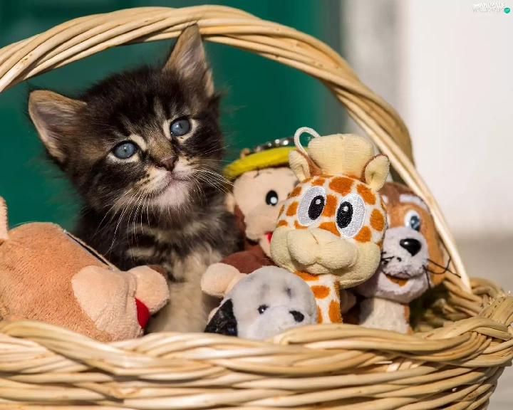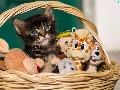 basket, toys, honeyed, kitten, small