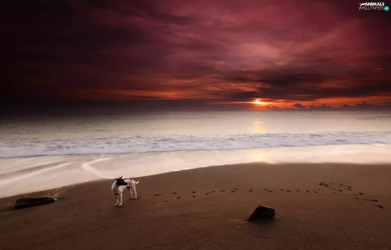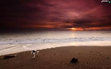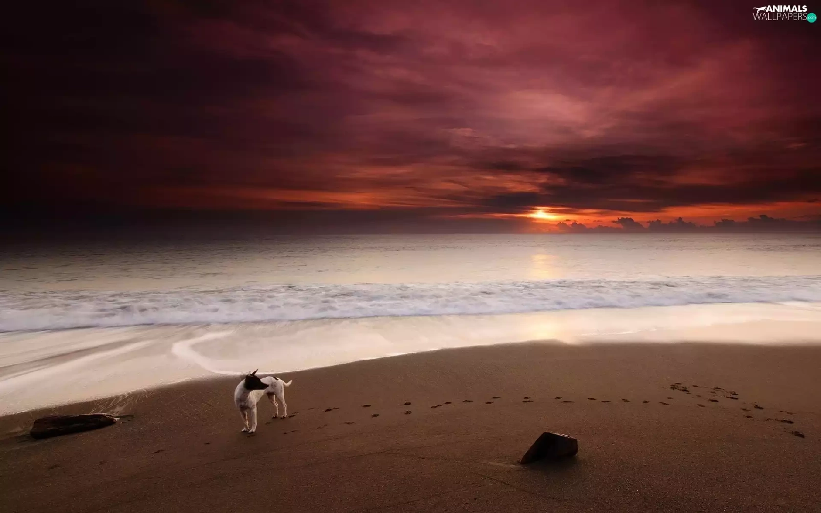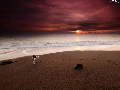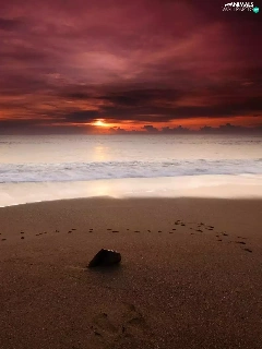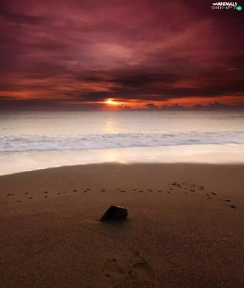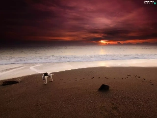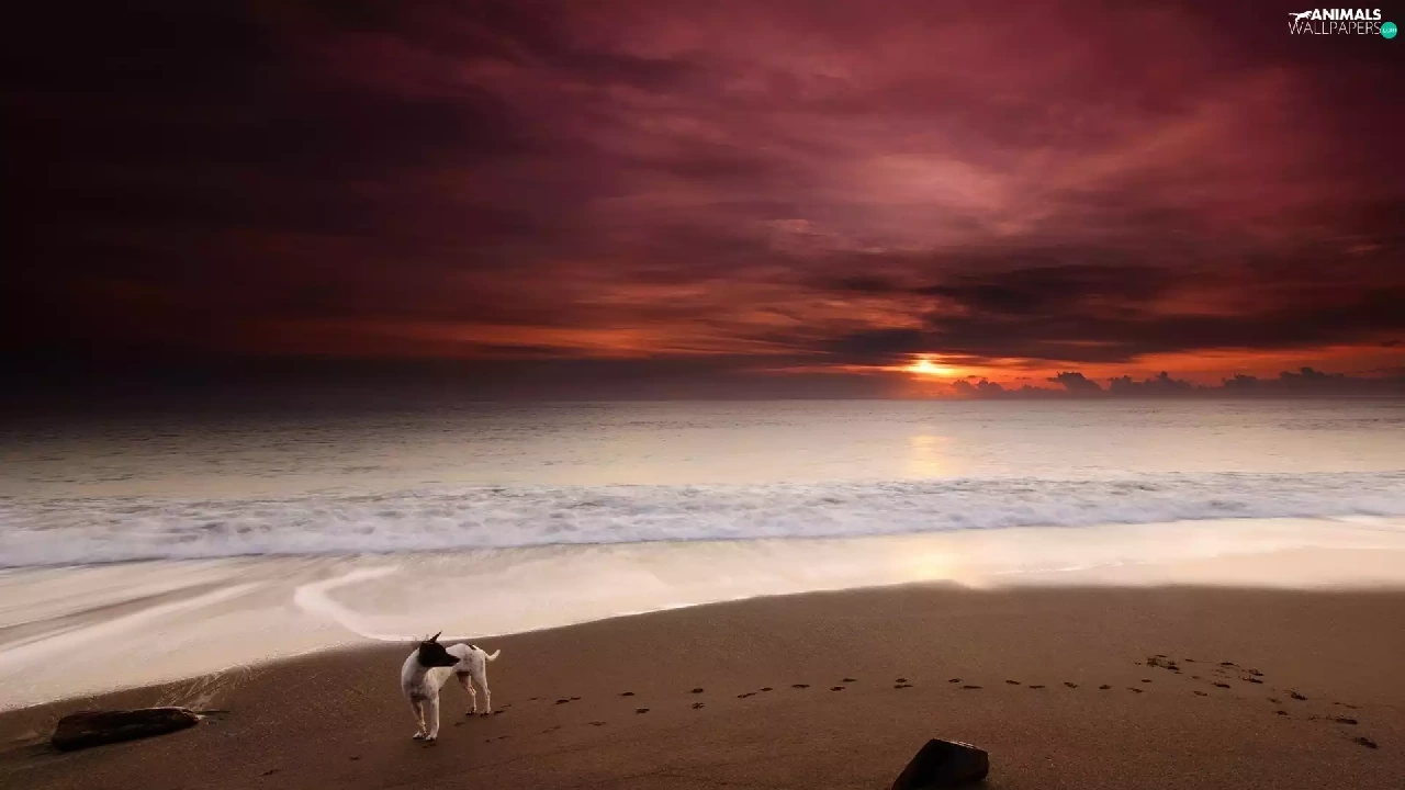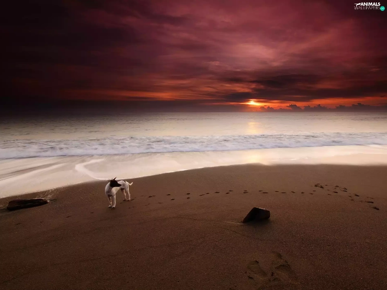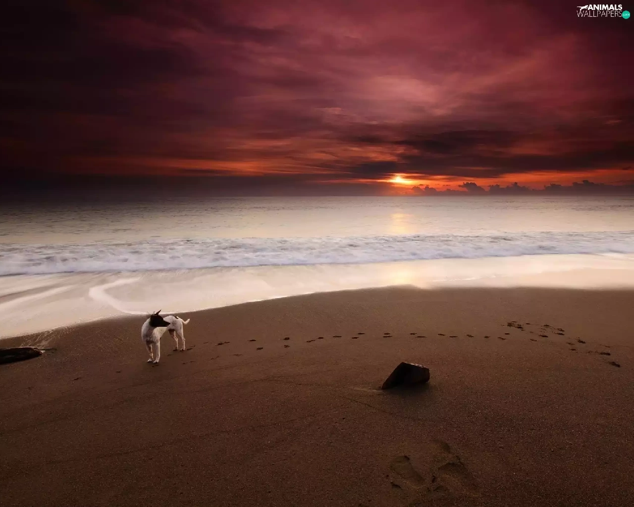 Sand, sea, doggy, traces, Great Sunsets, Beaches